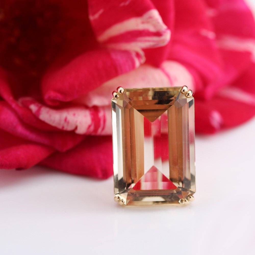18 Karat Yellow Gold Brooch Pendant with Emerald-Cut Citrine, 1960s