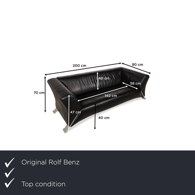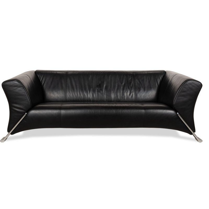 322 3-Seater Sofa in Black Leather from Rolf Benz