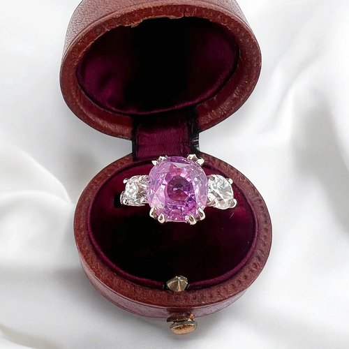 5 Carat Pink Ceylon Sapphire and Diamond Gold Trilogy Ring