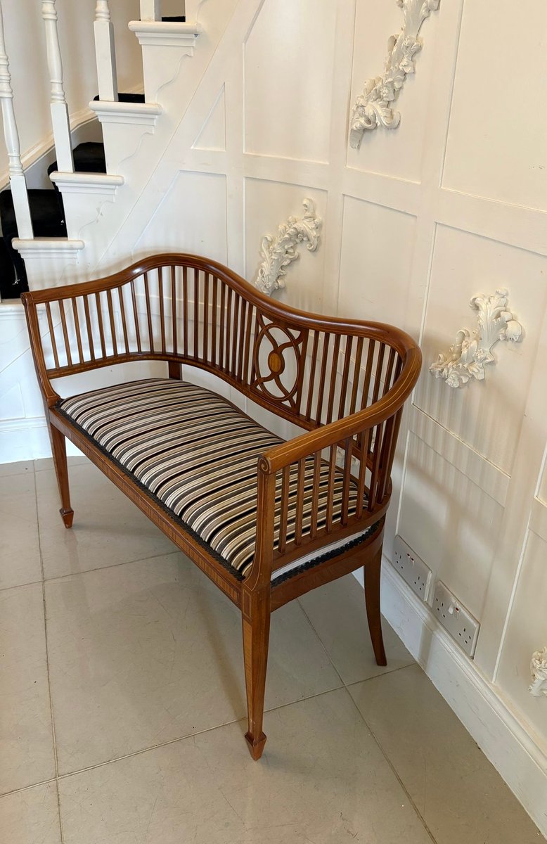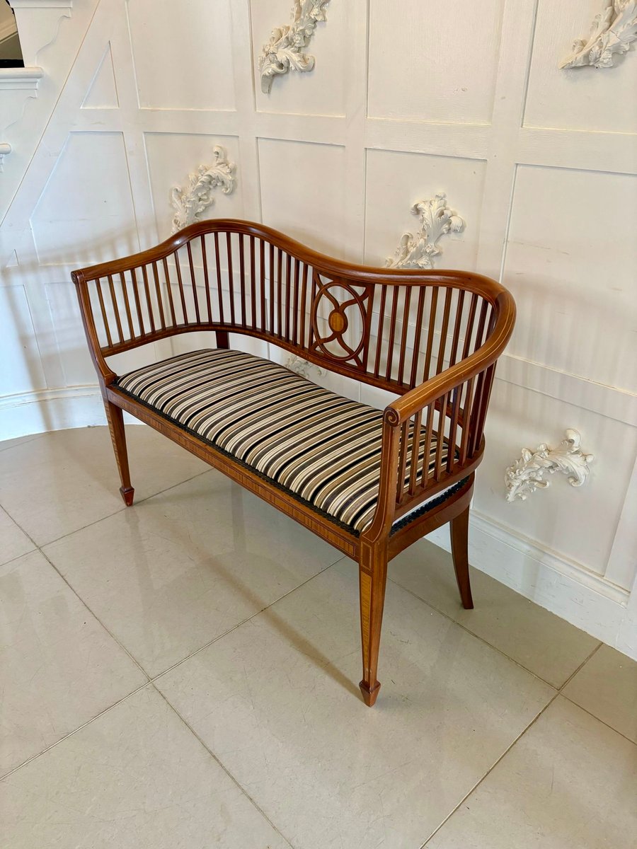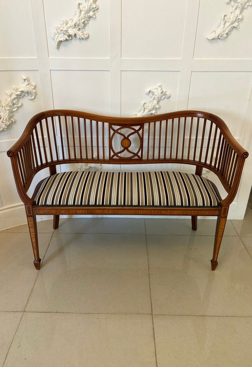 Antique Edwardian Mahogany Inlaid Bench, 1900s