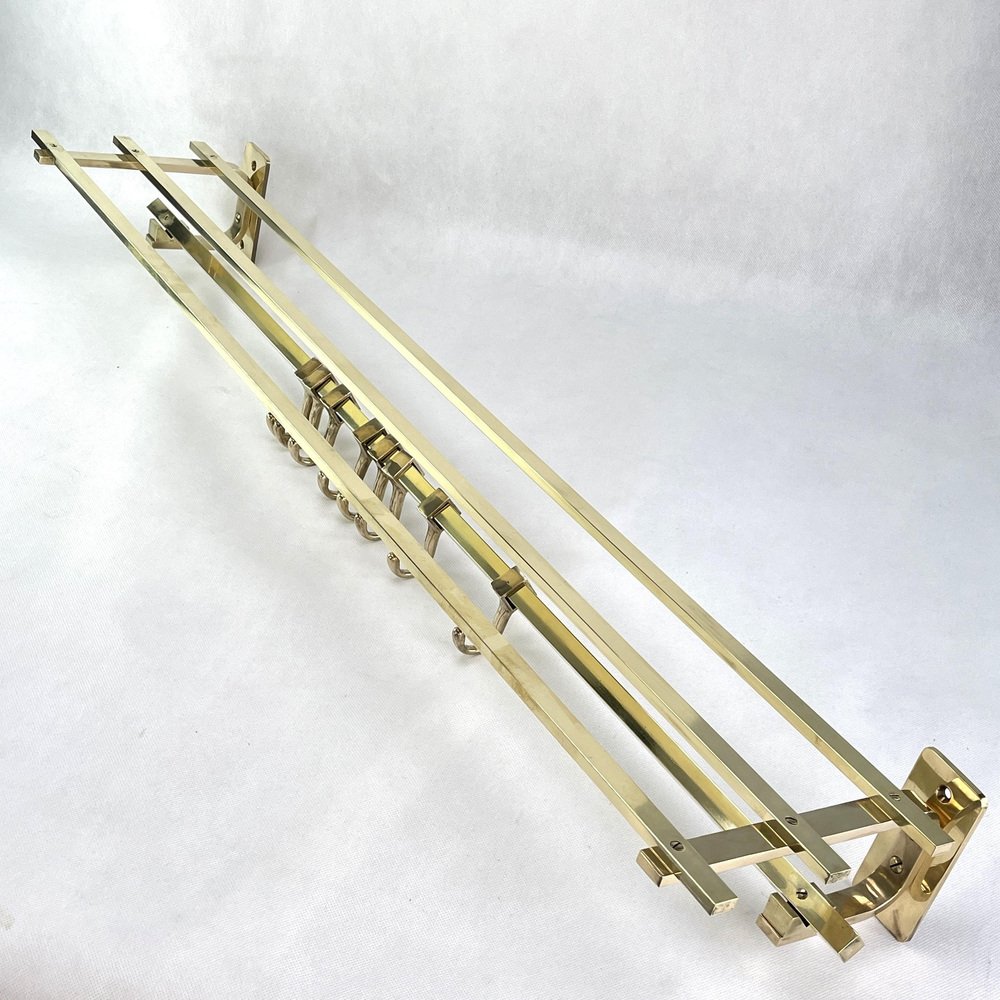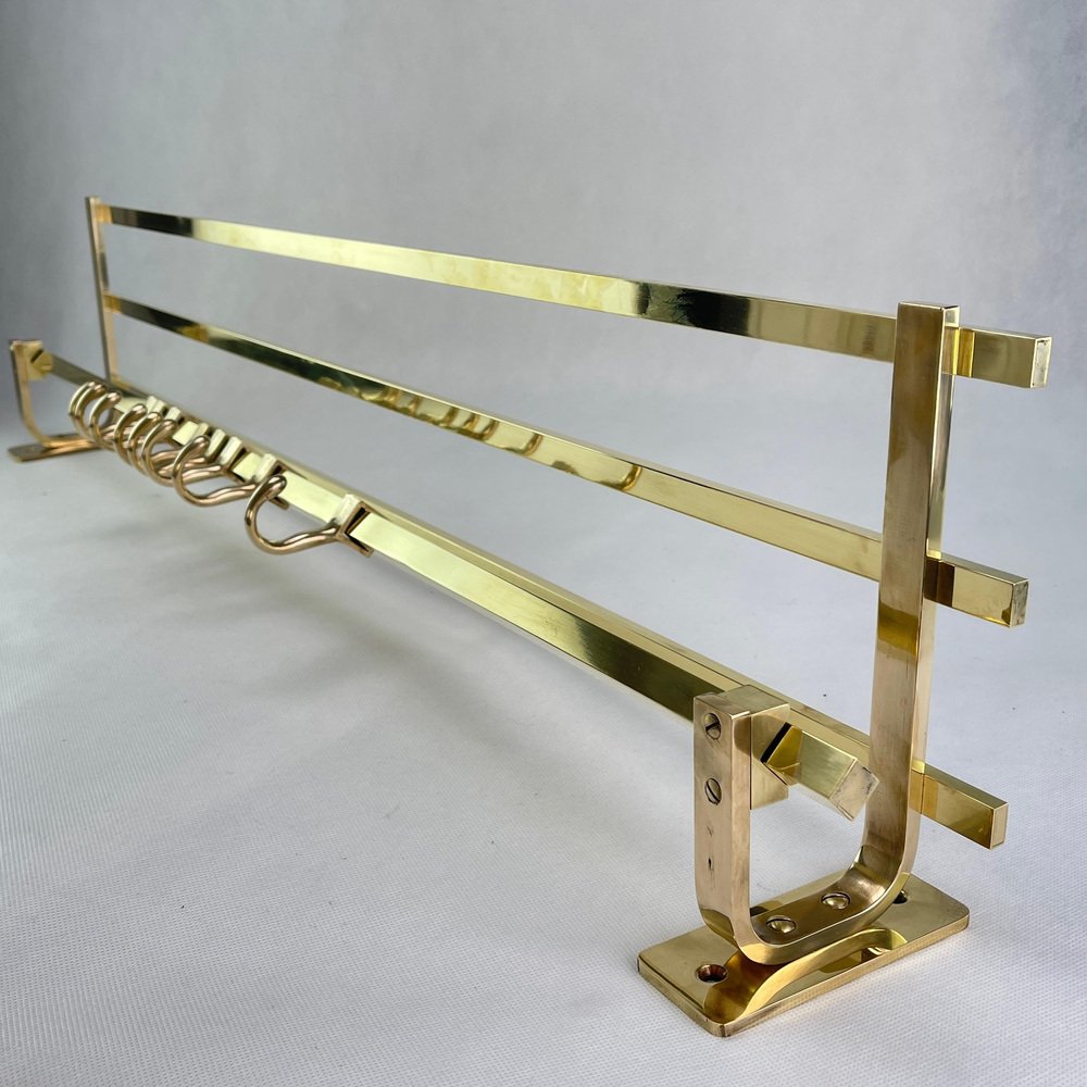 Art Deco Wall Coat Rack in Gold Brass, 1930s