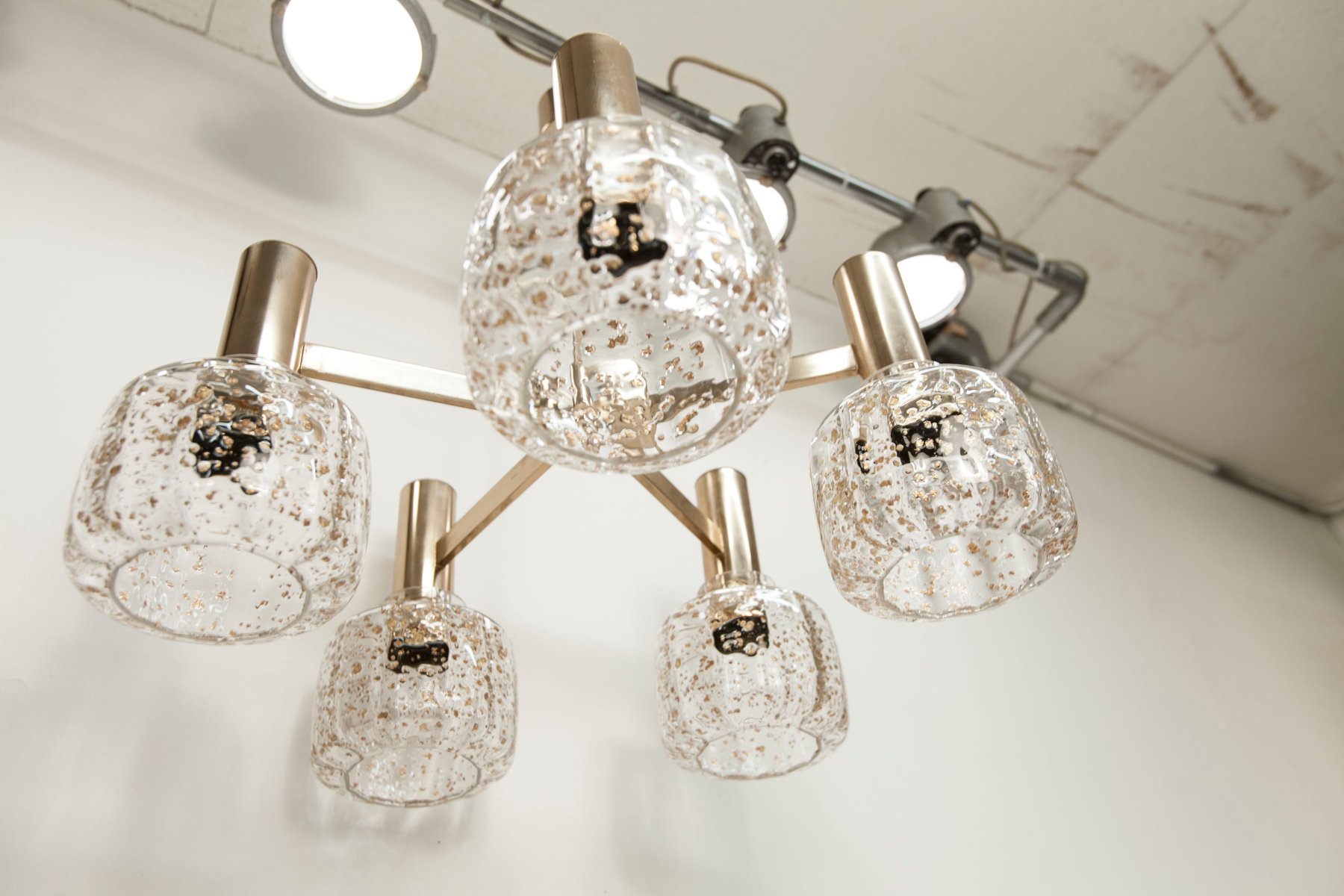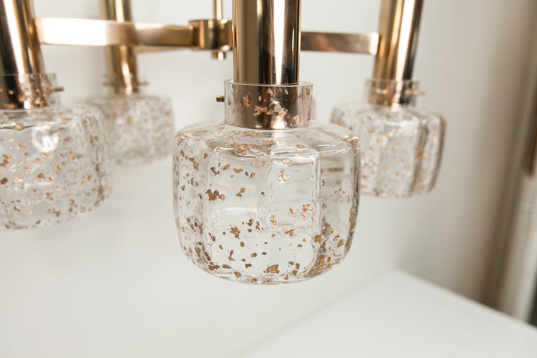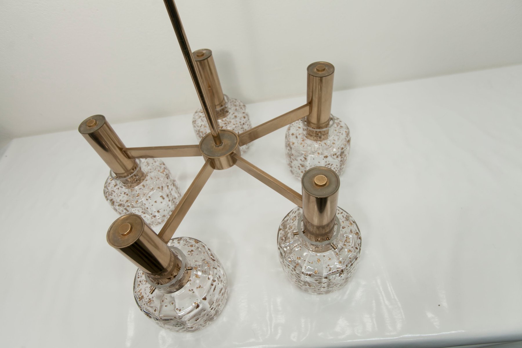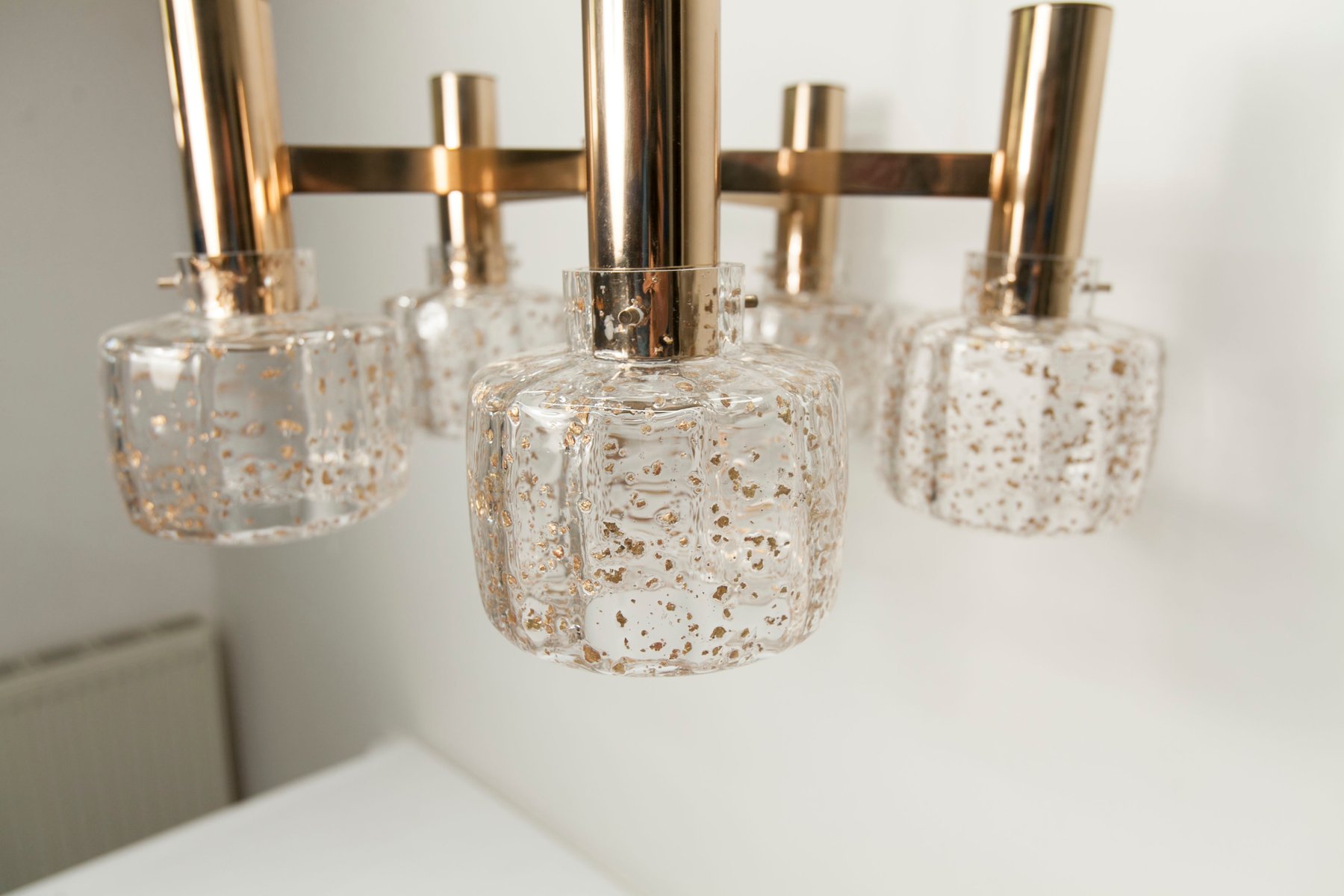 Blown Glass 5-Branched Chandelier with Golden Glitter, 1960s