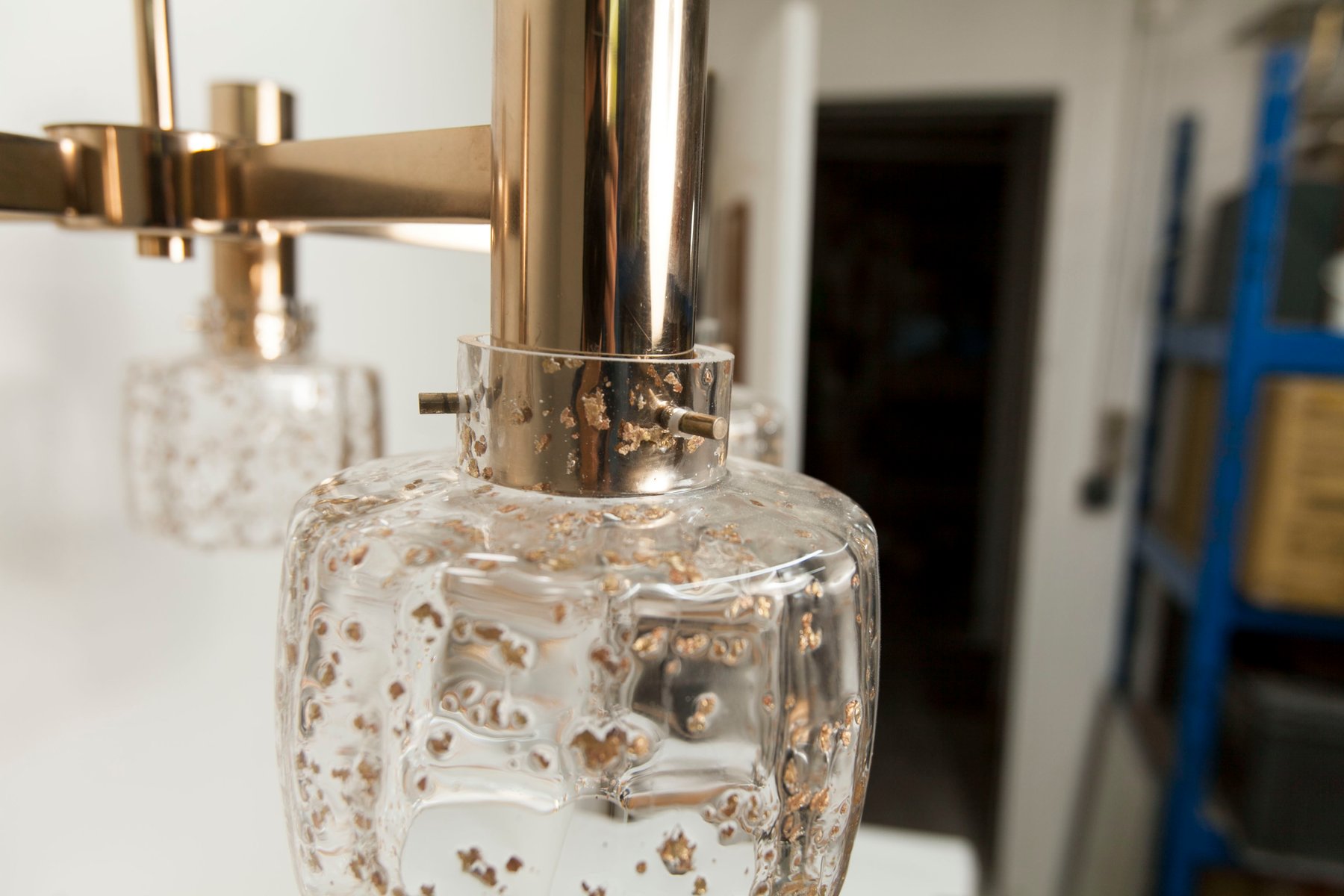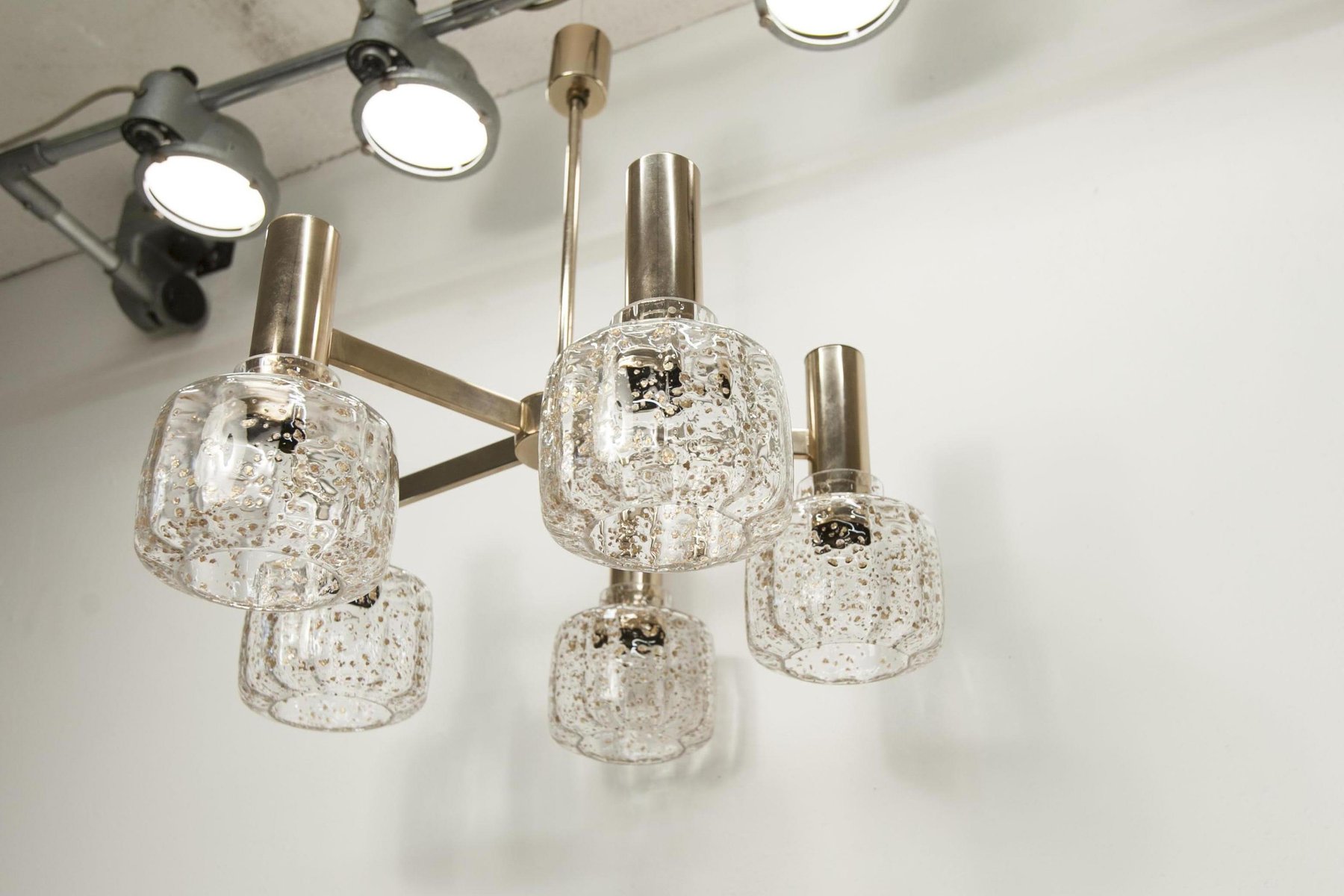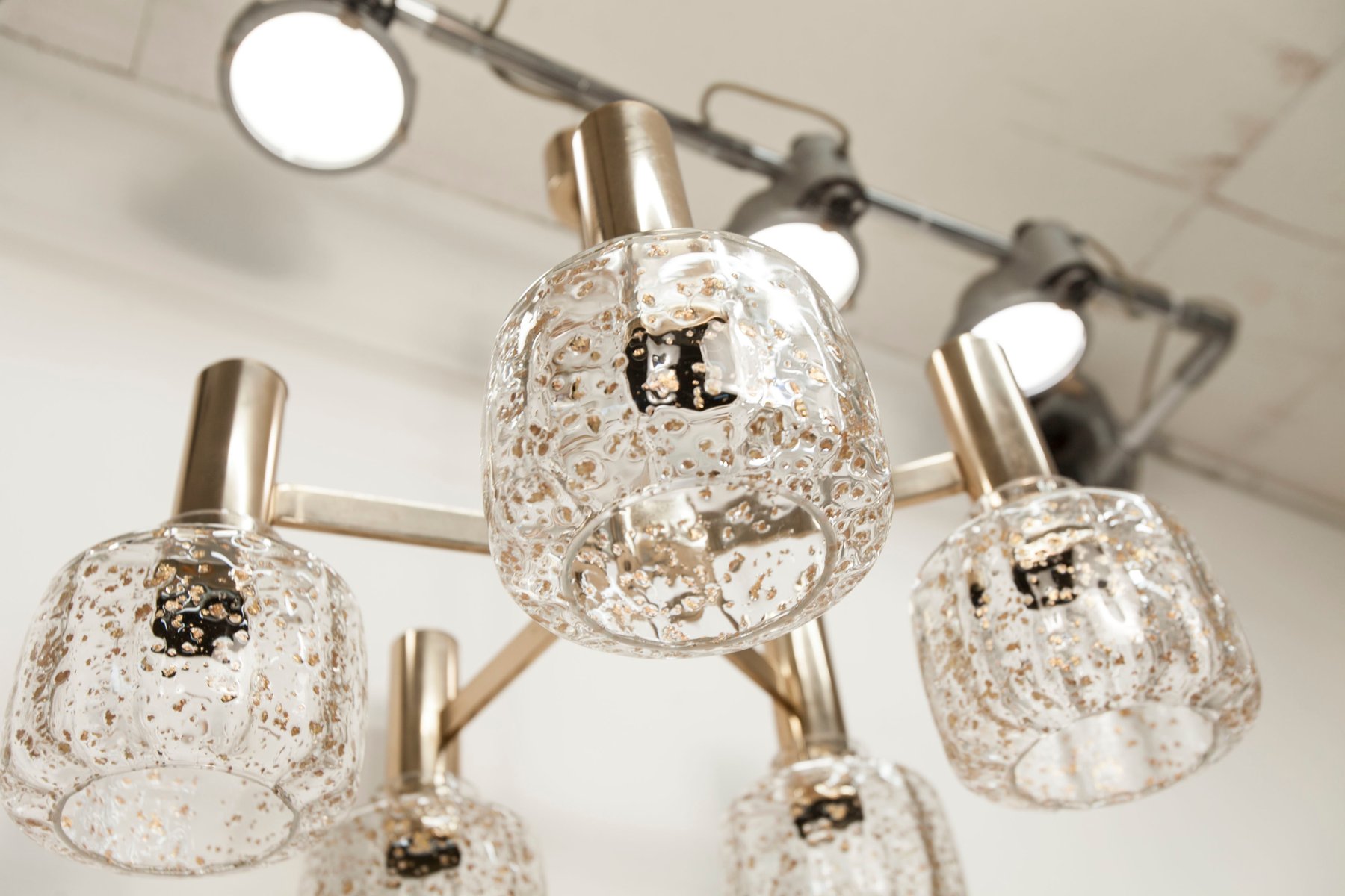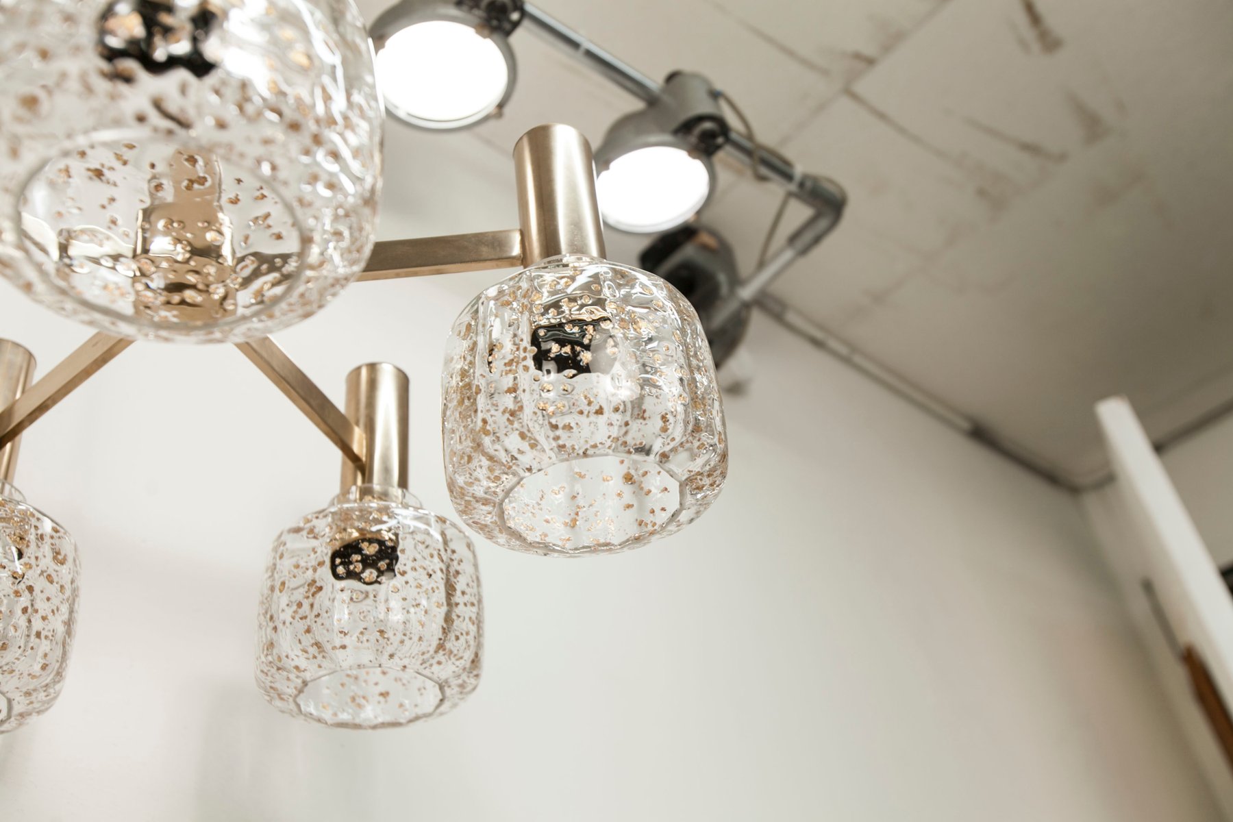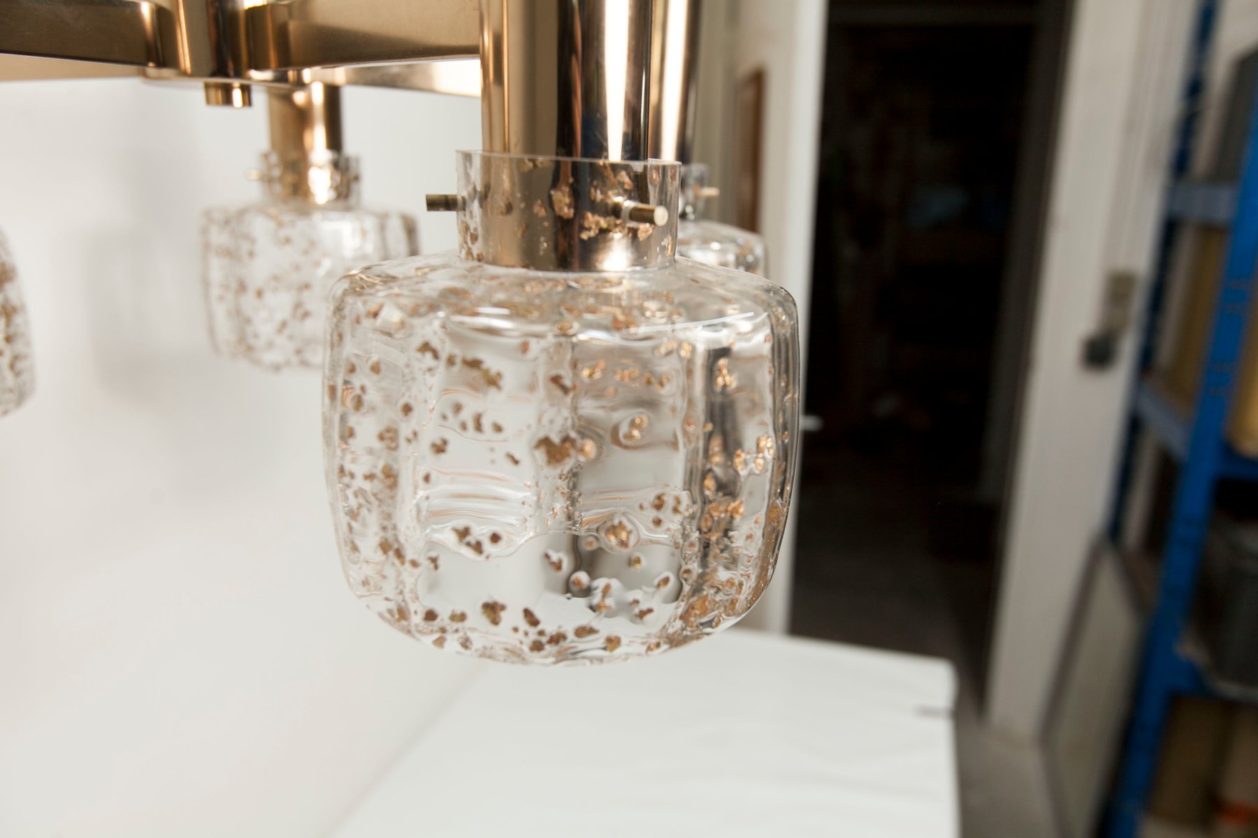 Blown Glass 5-Branched Chandelier with Golden Glitter, 1960s