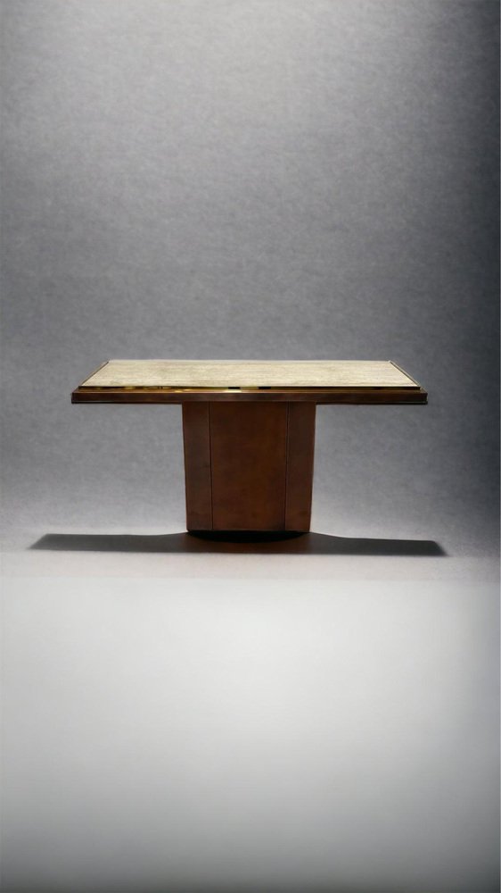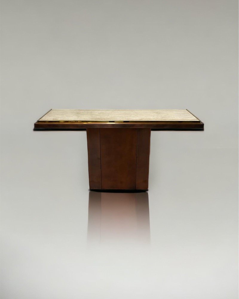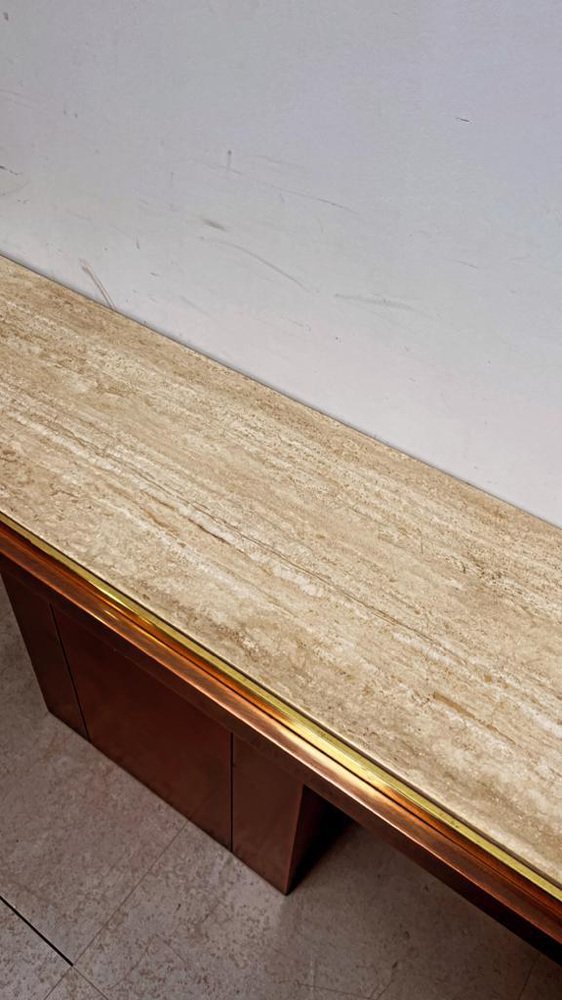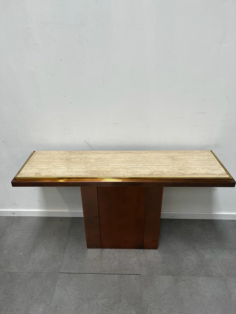 Brass and Travertine Console Table from Belgochrom