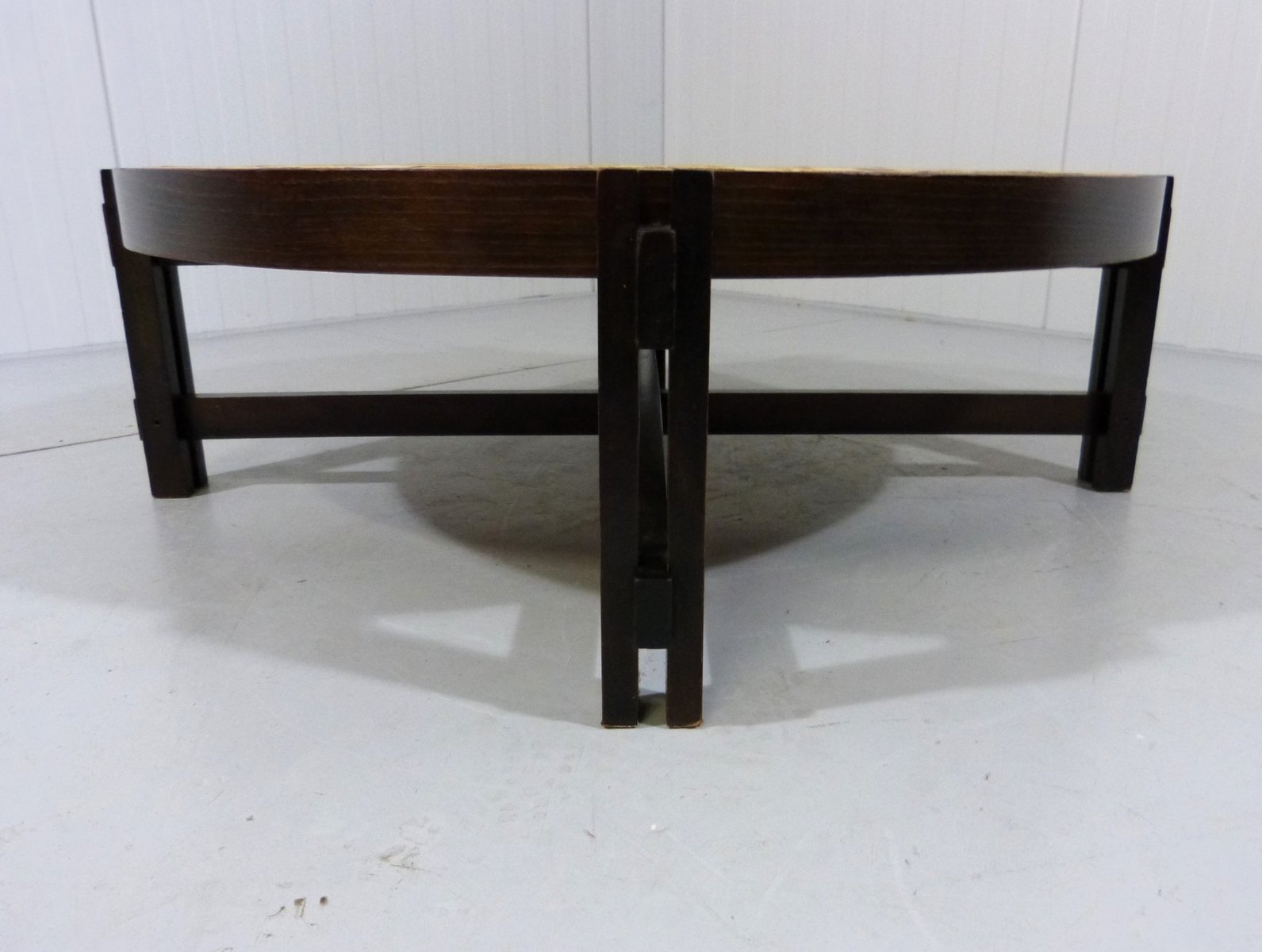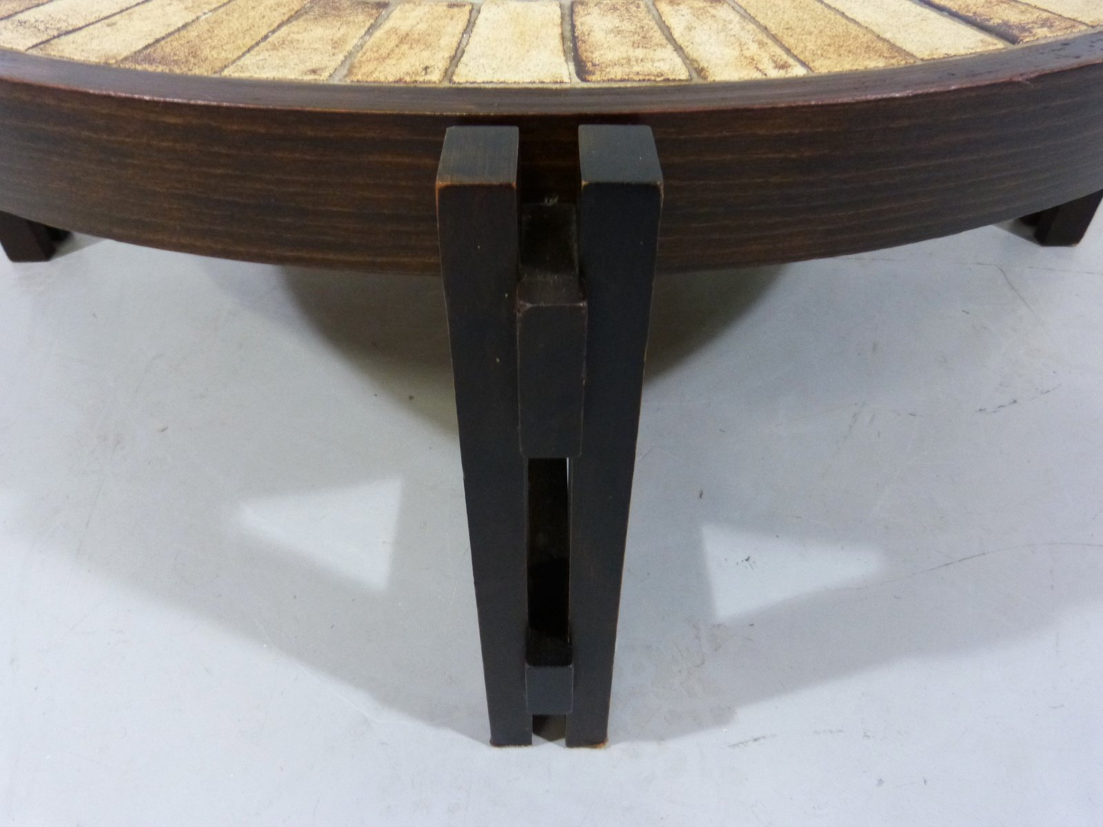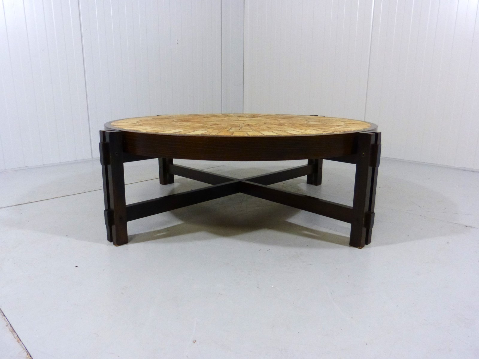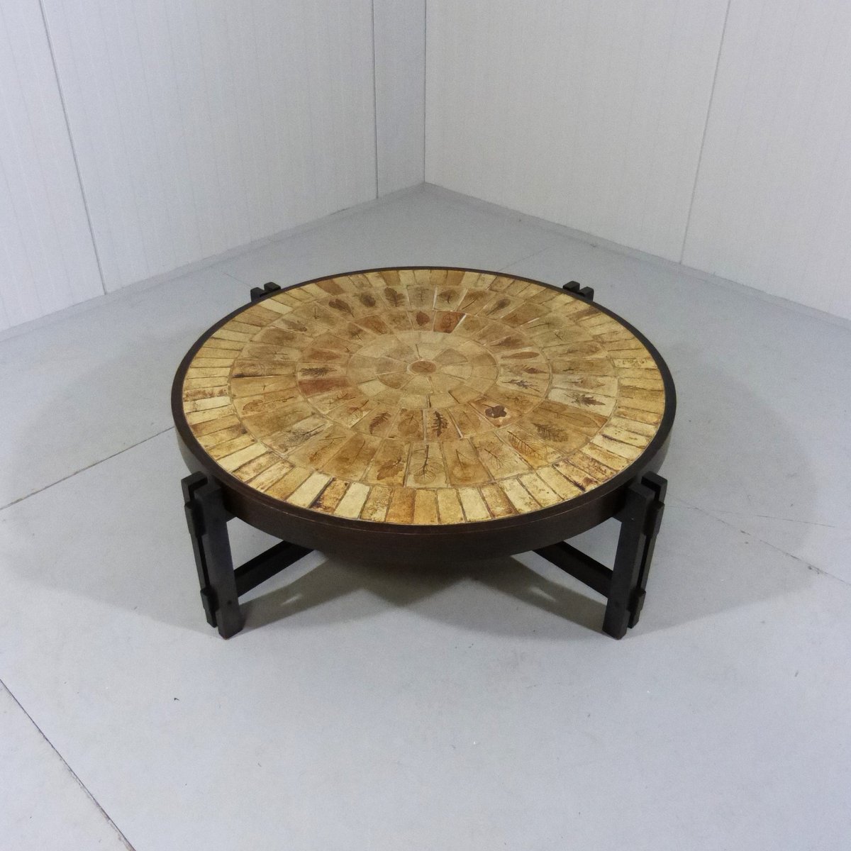 Brutalist Japandi Low Round Coffee Table, France, 1960s