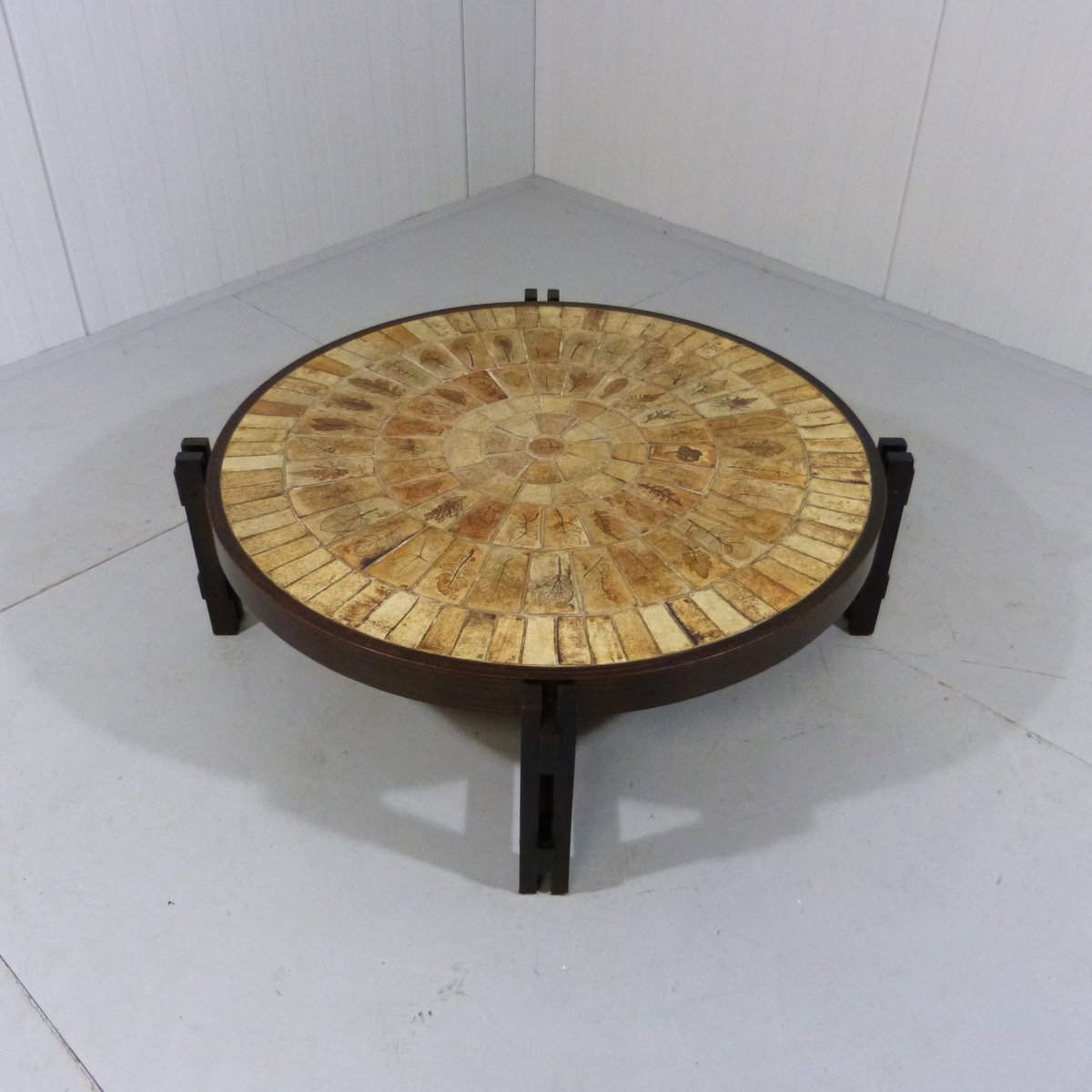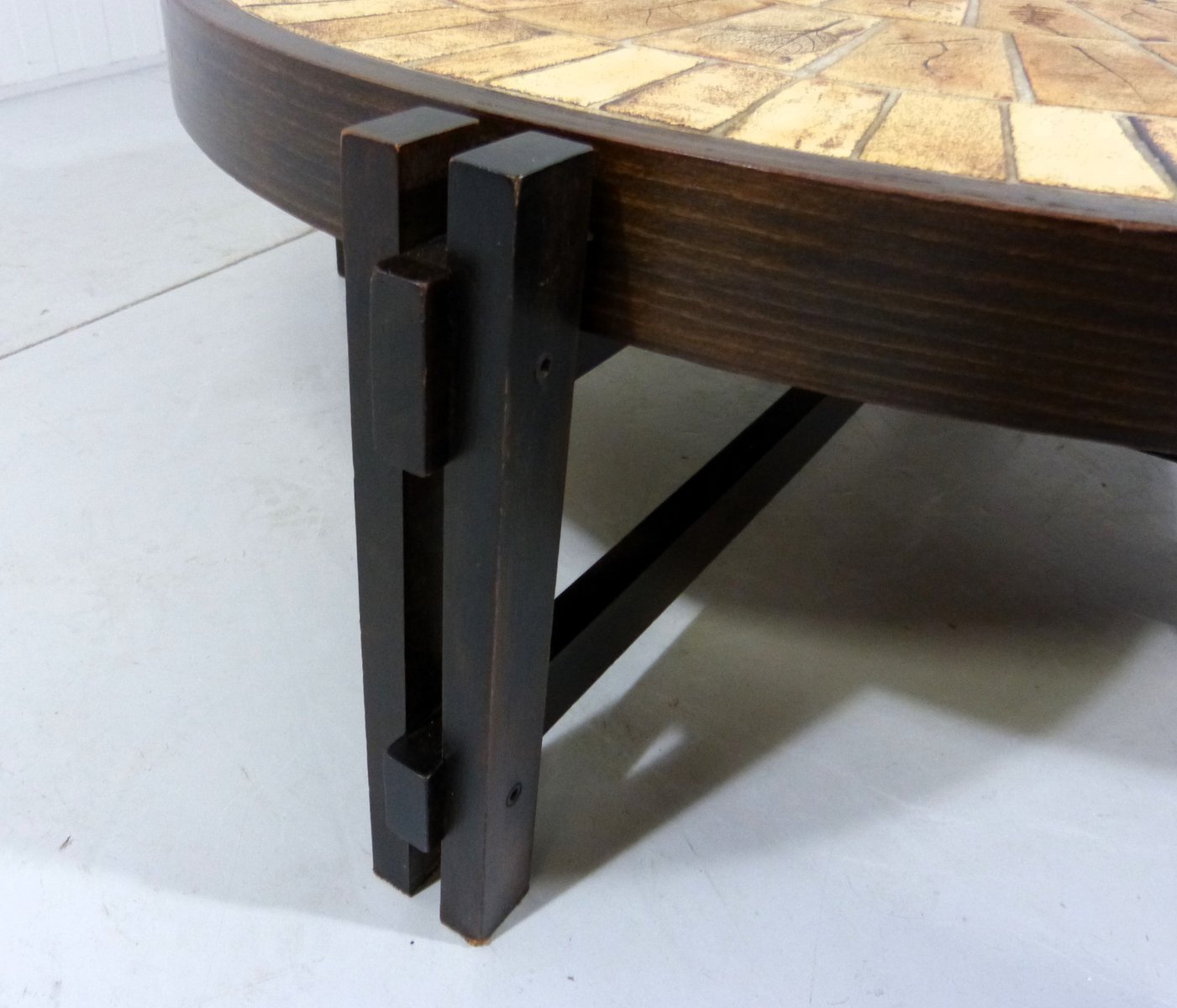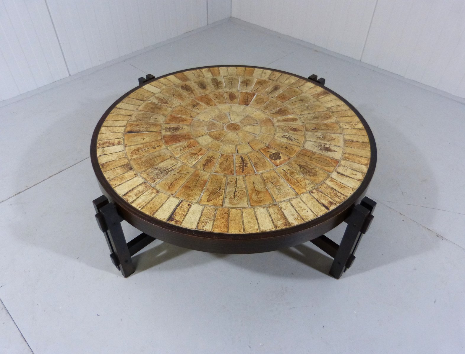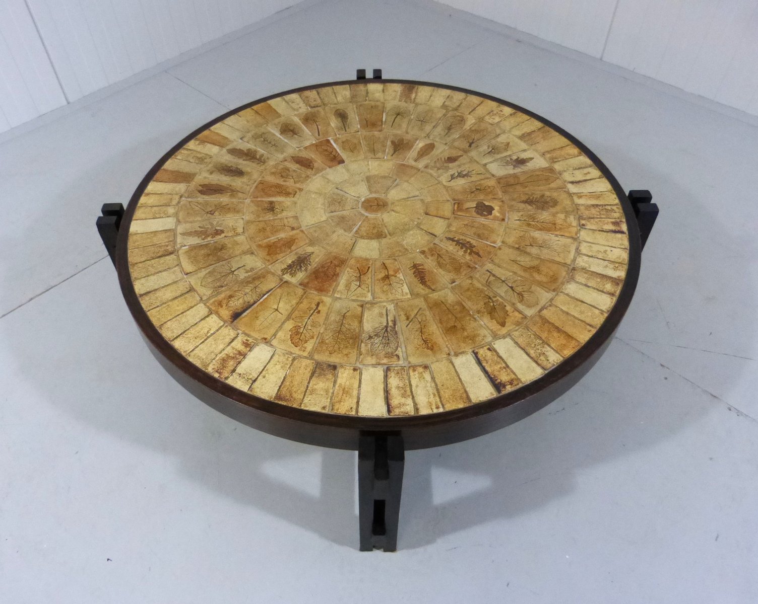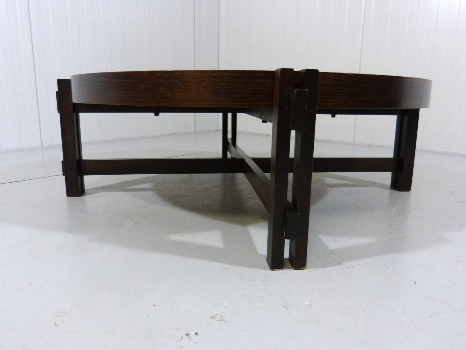Brutalist Japandi Low Round Coffee Table, France, 1960s