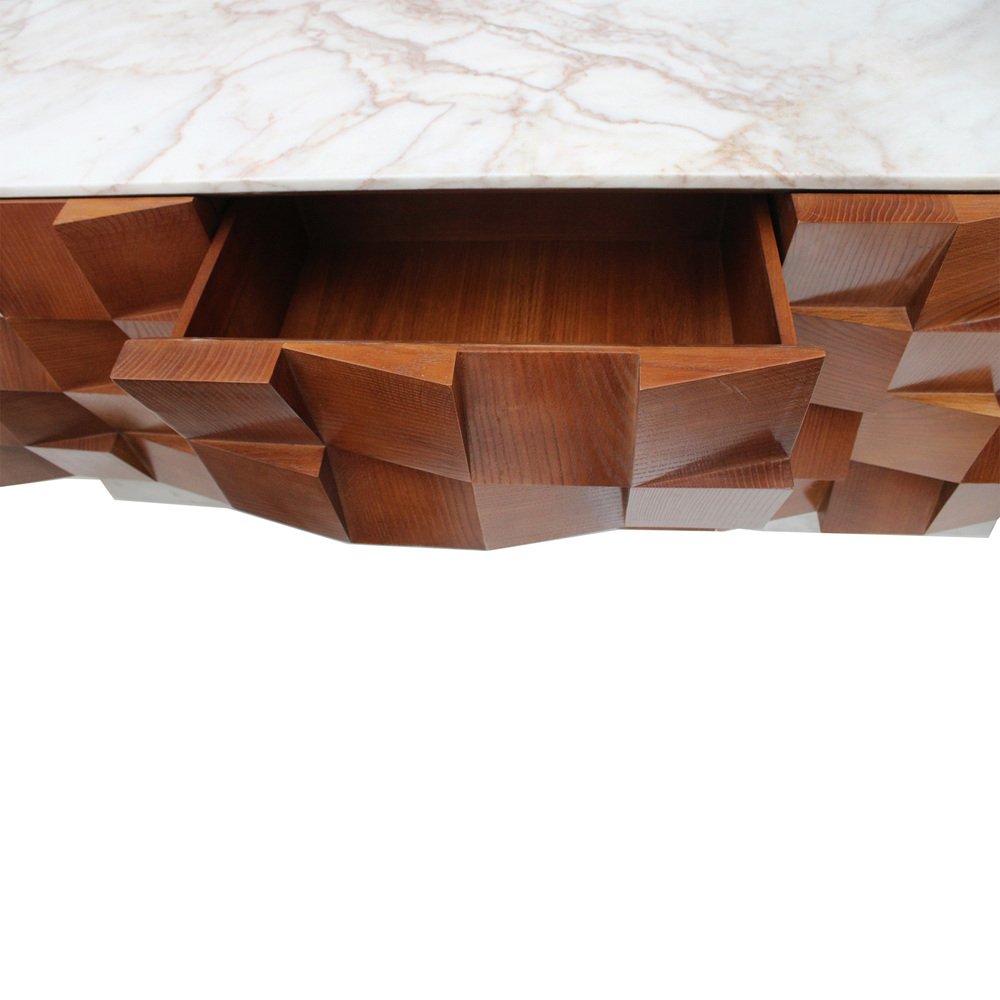 Brutalist Sideboard in Wood and Siena Marble