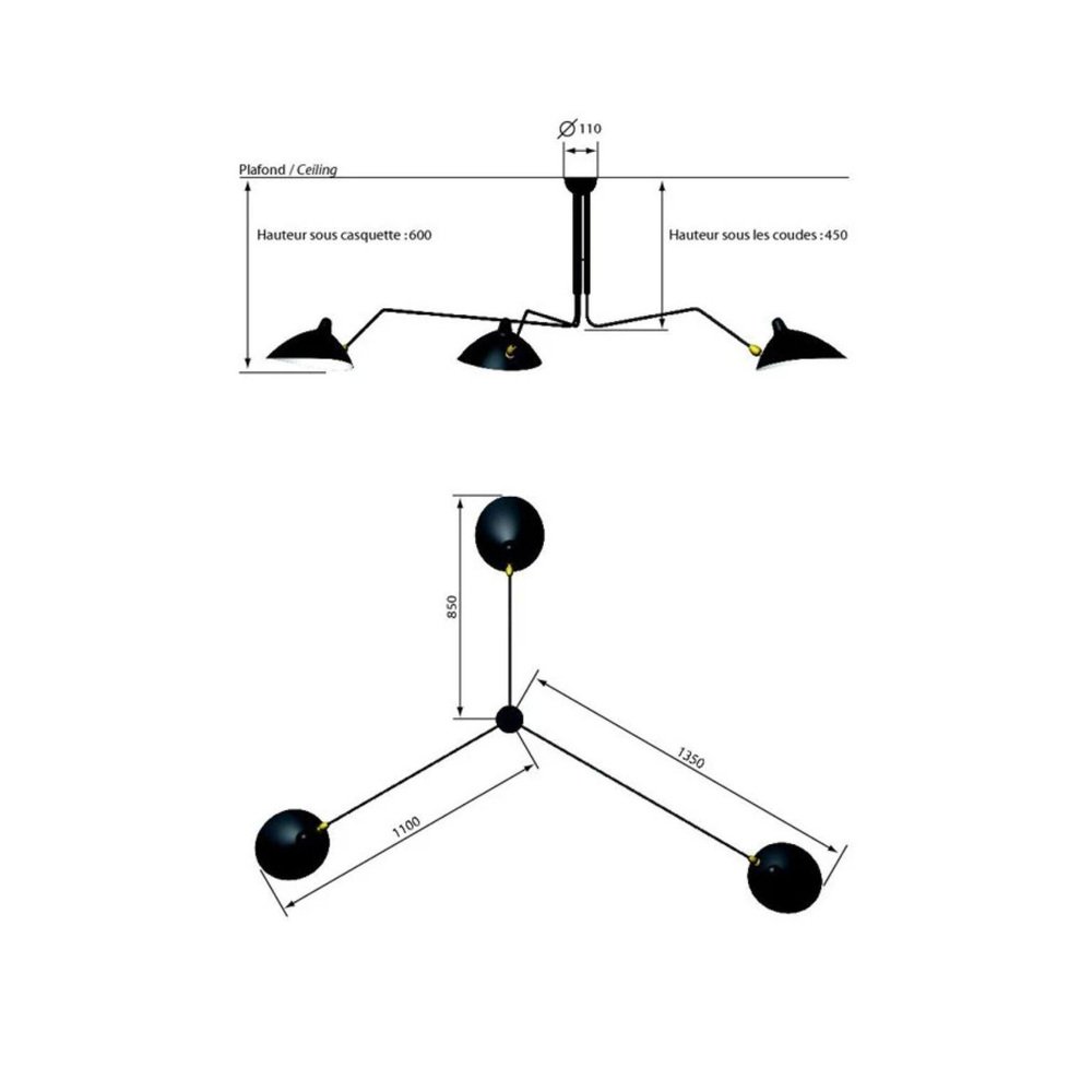 Ceiling Lamp with Three Rotating Arms by Serge Mouille