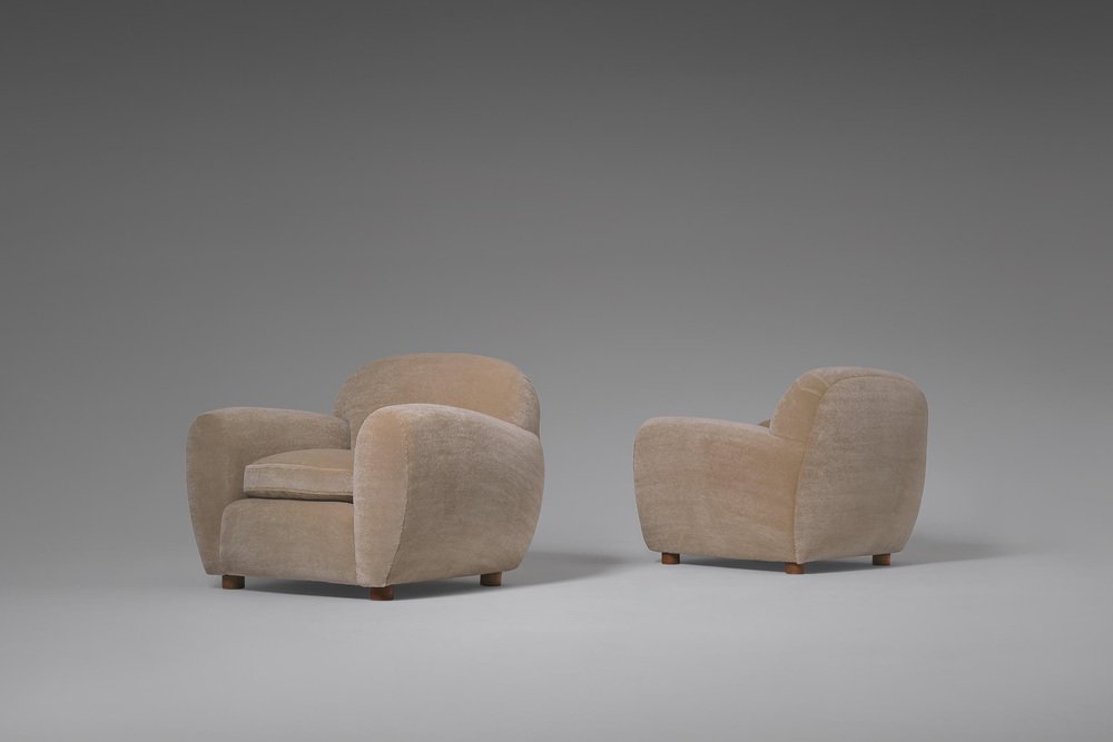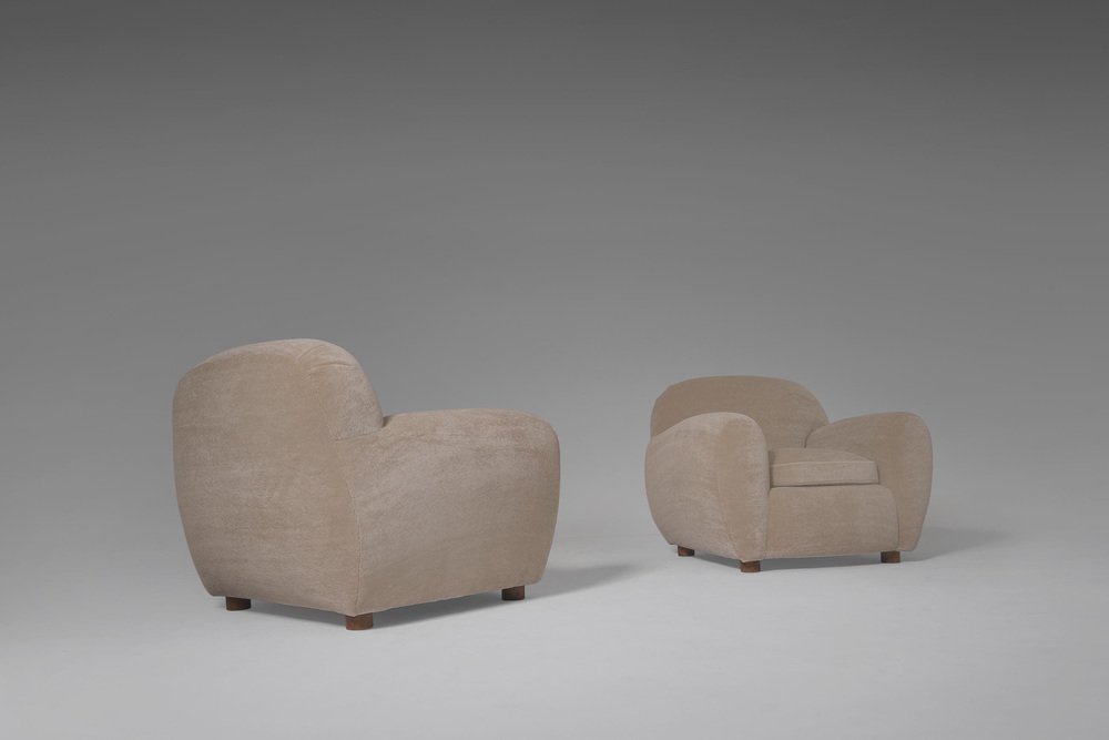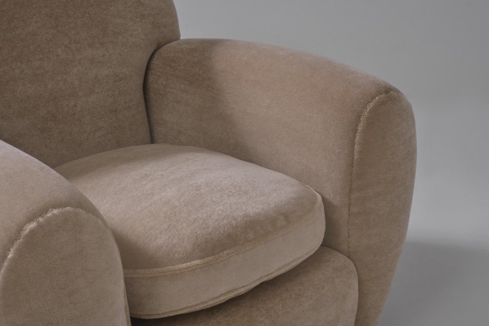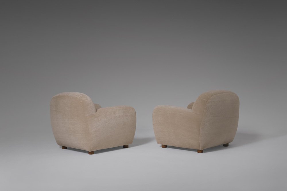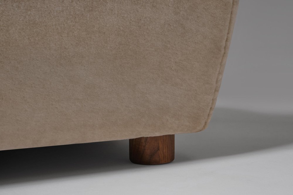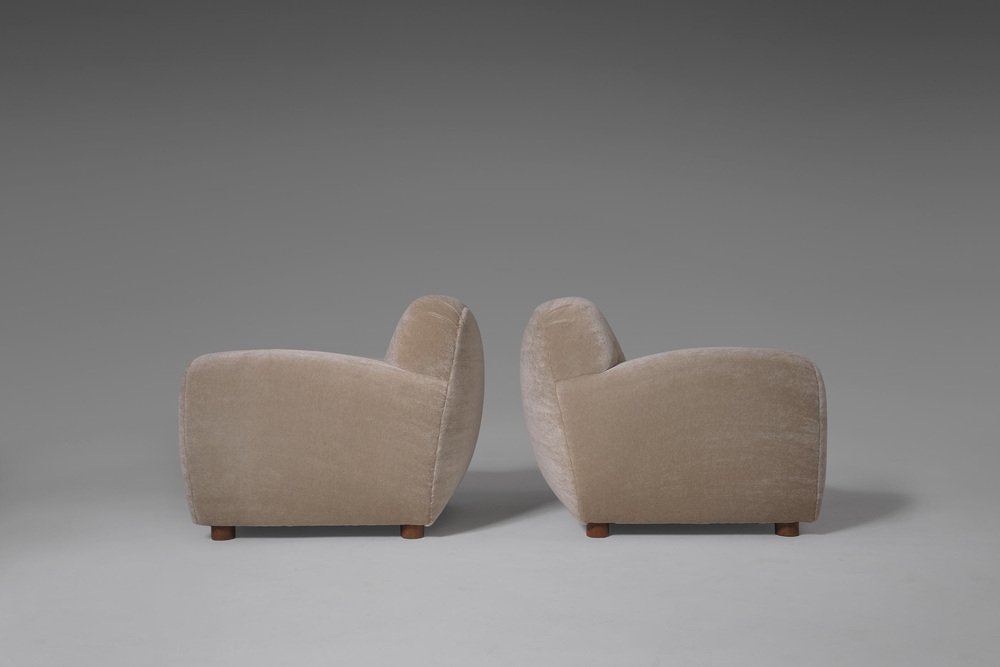Curved Lounge Chairs in Oak & Mohair, 1950s