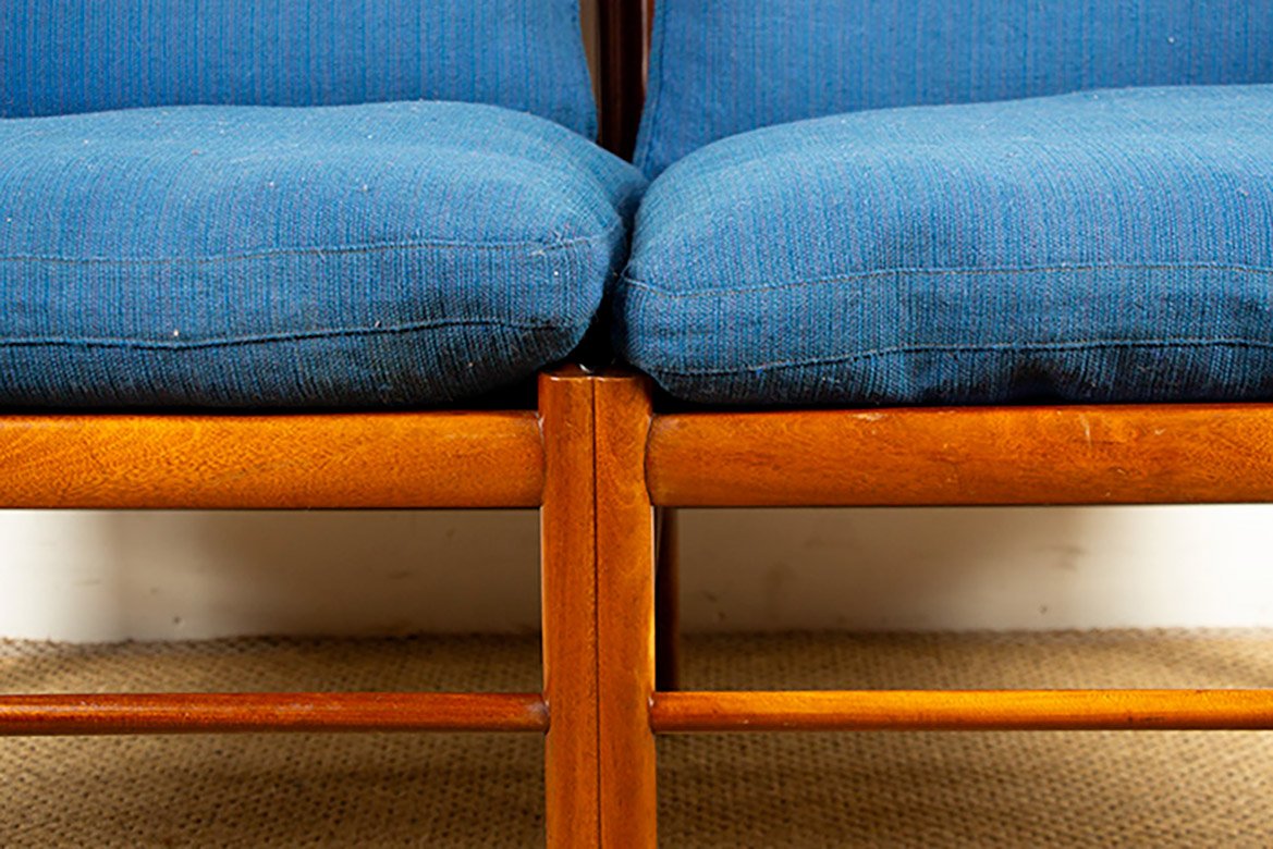 Between the 1940s and 1960s, Wanscher enjoyed fruitful collaborations with small-scale, artisanal cabinetmakers, like the masterful A. J. Iversen (1888-1979), as well as well as larger-scale Danish companies, such as France & Søn, Fritz Hansen, Poul Jeppesen, and Rud Rasmussen. With Iversen, he created the iconic Ladies Desk (1954) and Egyptian Stool (1957). Other standout Wanscher designs include the PJ-149 Colonial Chair (1949), Rungstedlund Dining Chair (ca. 1950), and PJ-112 Sofa (1951) for Poul Jeppesen; as well as the 110 Rocking Chair (1951) and Senator Easy Chair (1951) for France & Søn .
