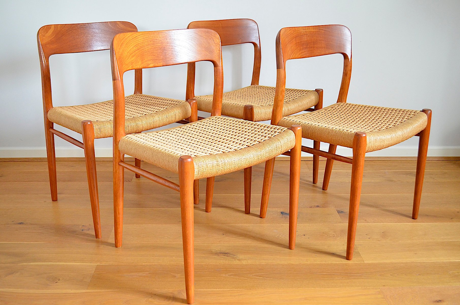 Danish Model 75 Teak Chairs by Niels O. Møller for Jl Moller, 1960s, Set of 4