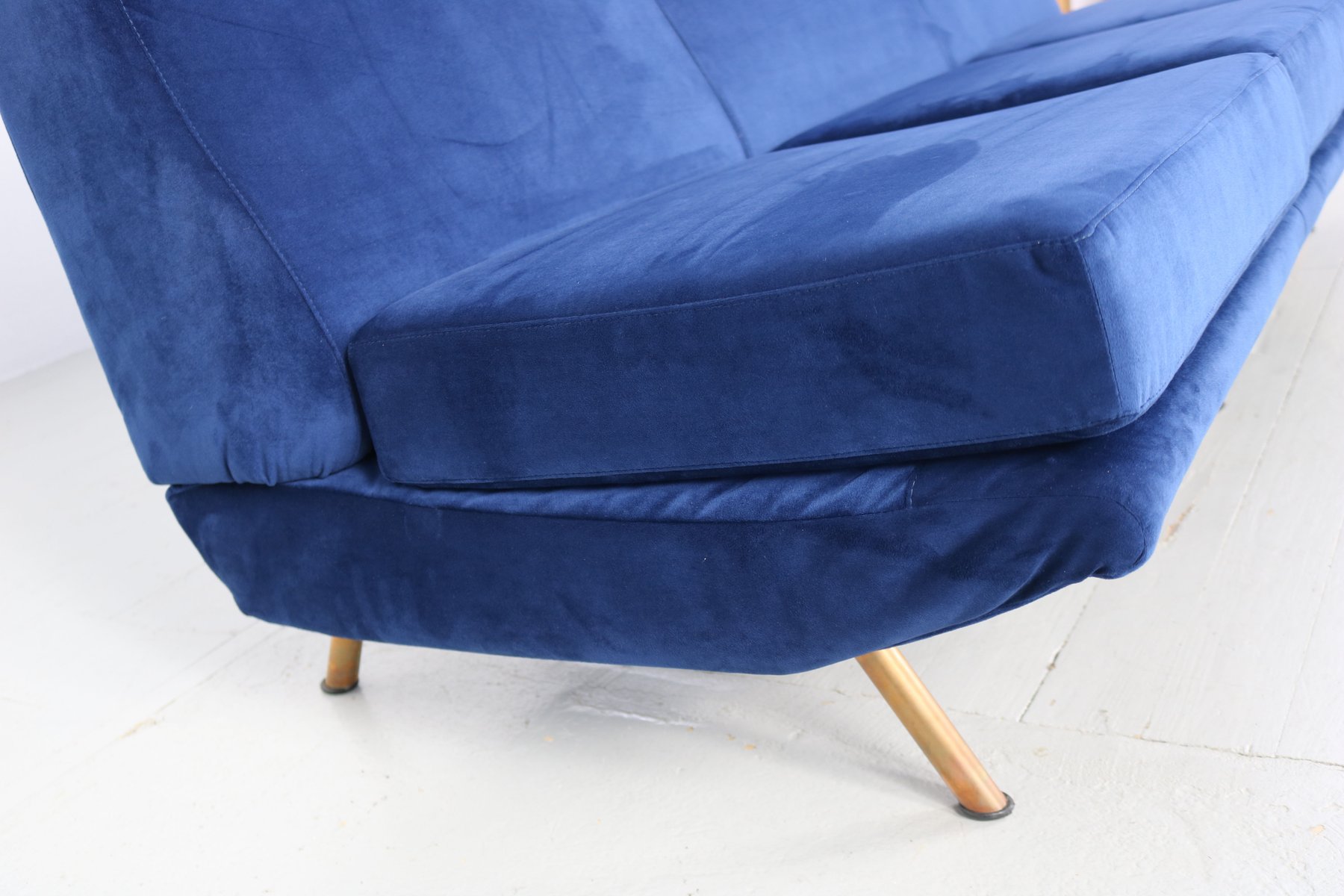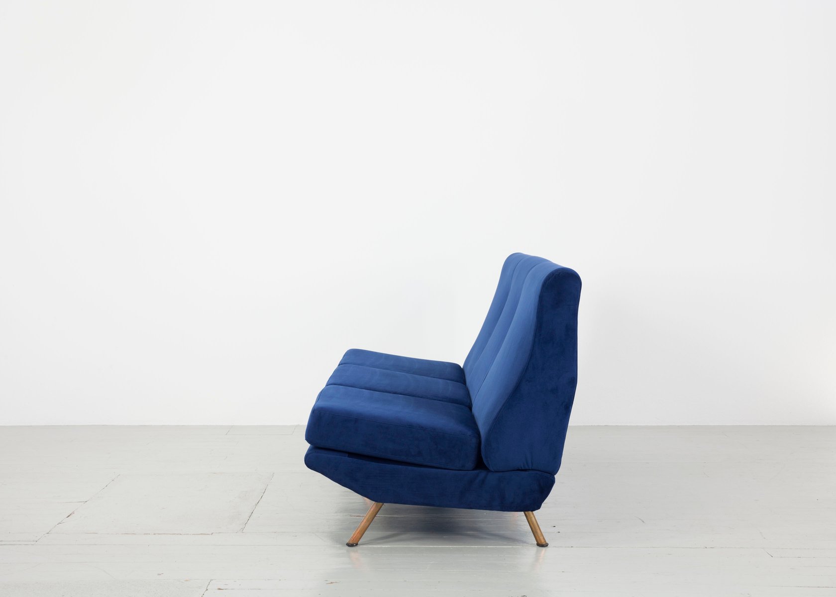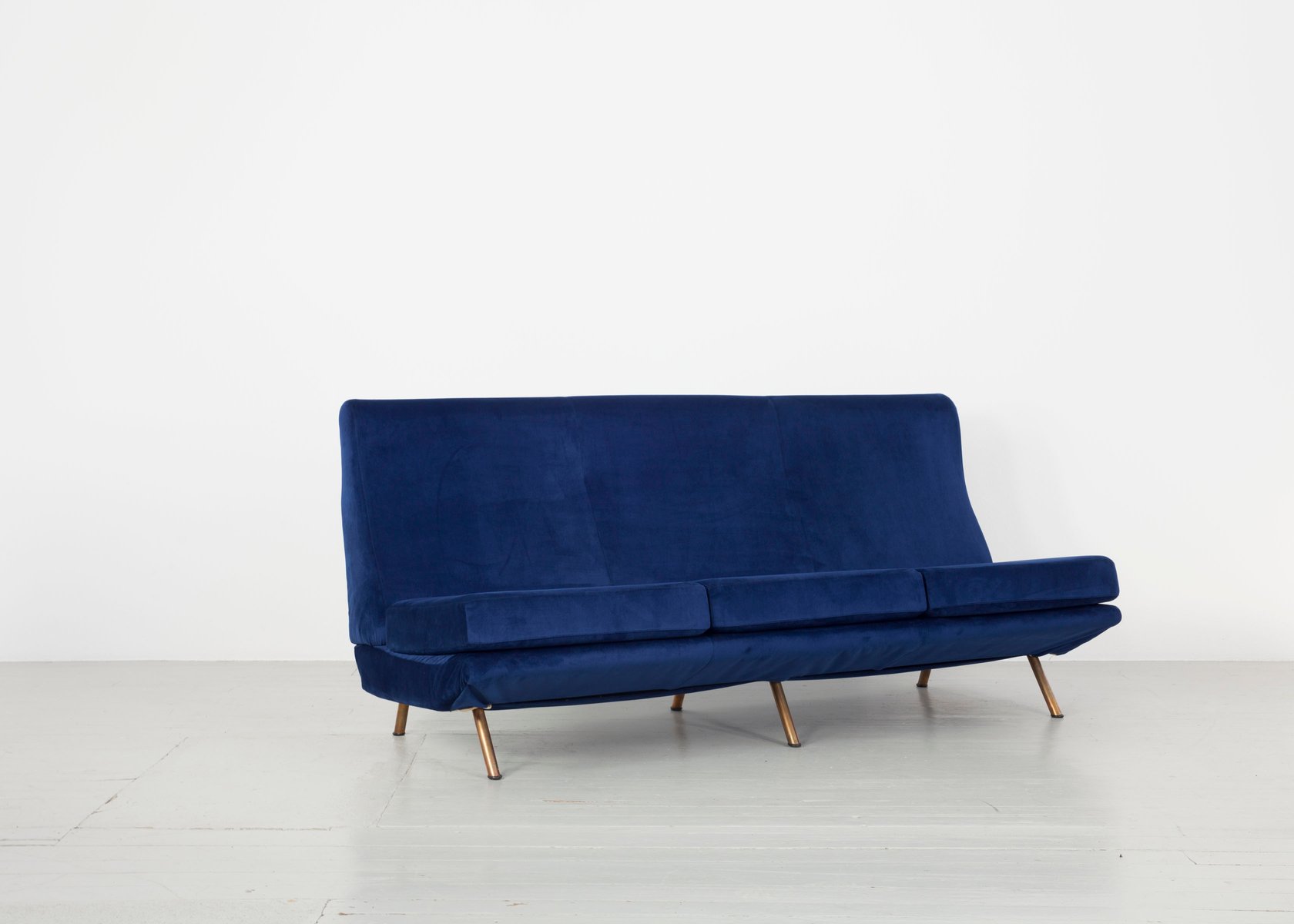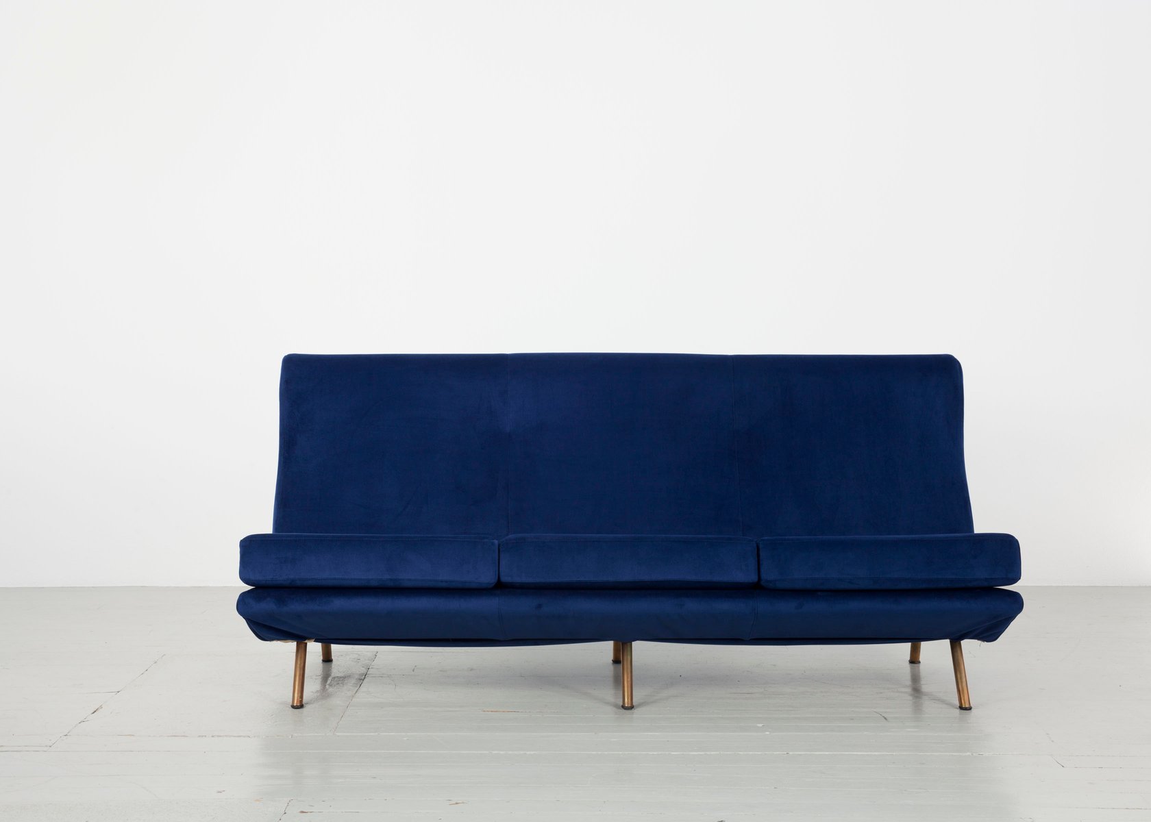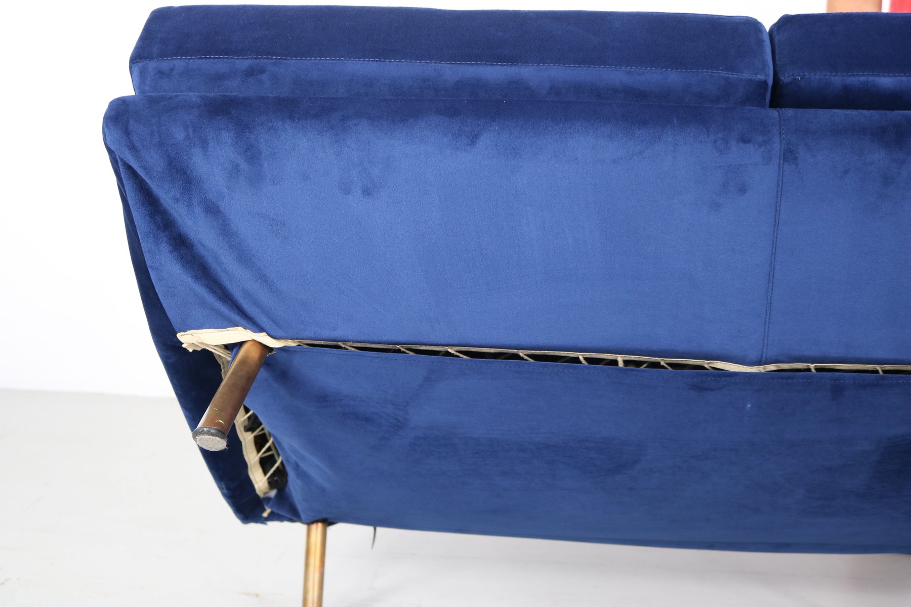 Italian furniture manufacturing company Arflex was originally founded in Milan 1947 by a team of engineers—Carlo Barassi, Renato Teani, Pio Reggiani, and Aldo Bai—from Italian tire company Pirelli. While exploring new technologies in rubber production, they developed a new polyurethane foam and elastic tape that held great potential for modernist furniture design. Italian architect-designer Marco Zanuso (1916-2001) was brought in to create the first collections, guided by the principle that the new materials would inform the aesthetic result.