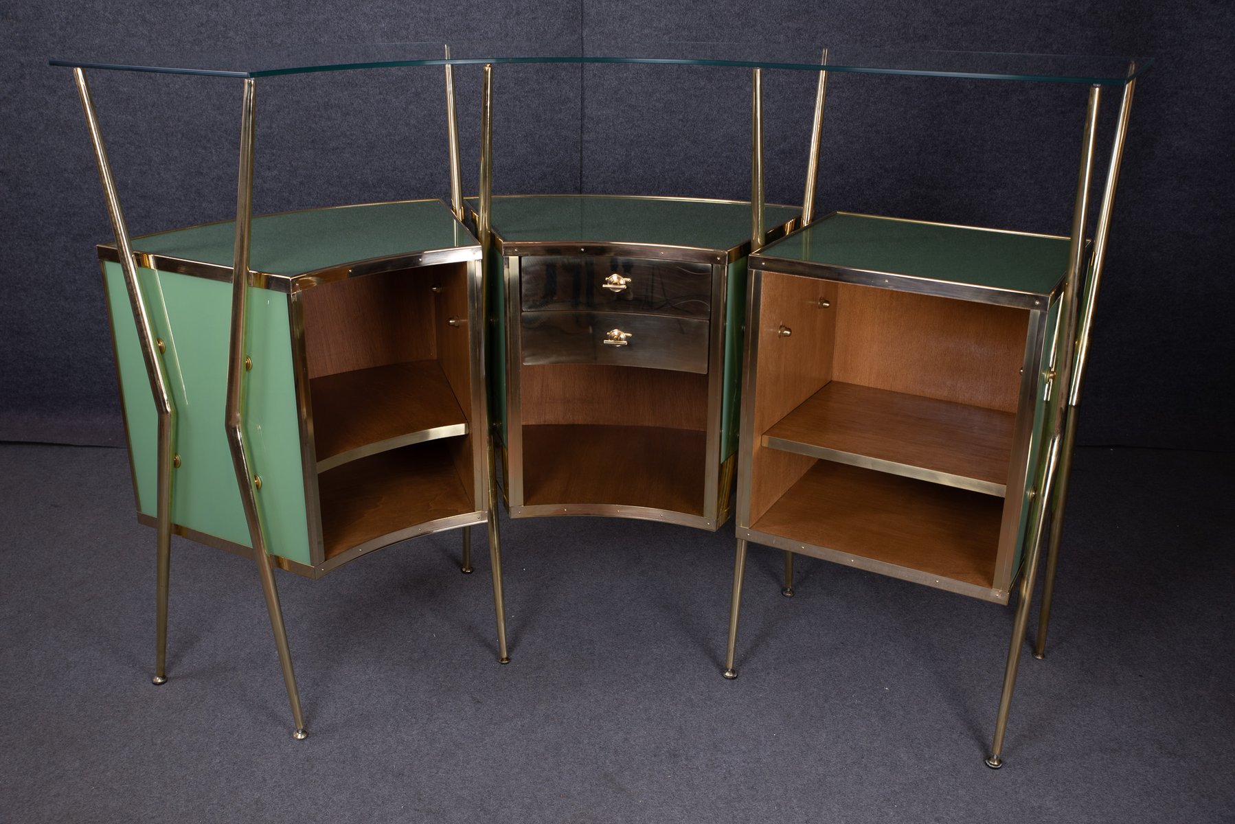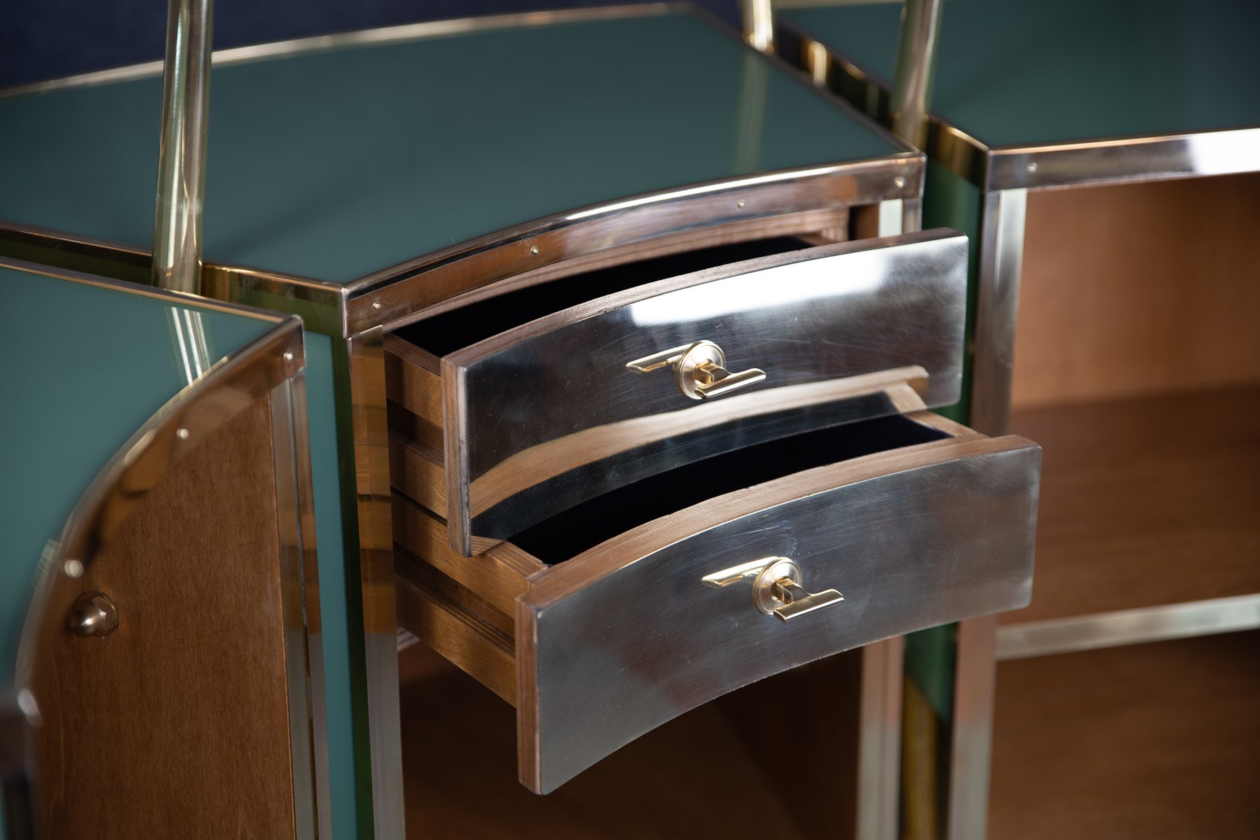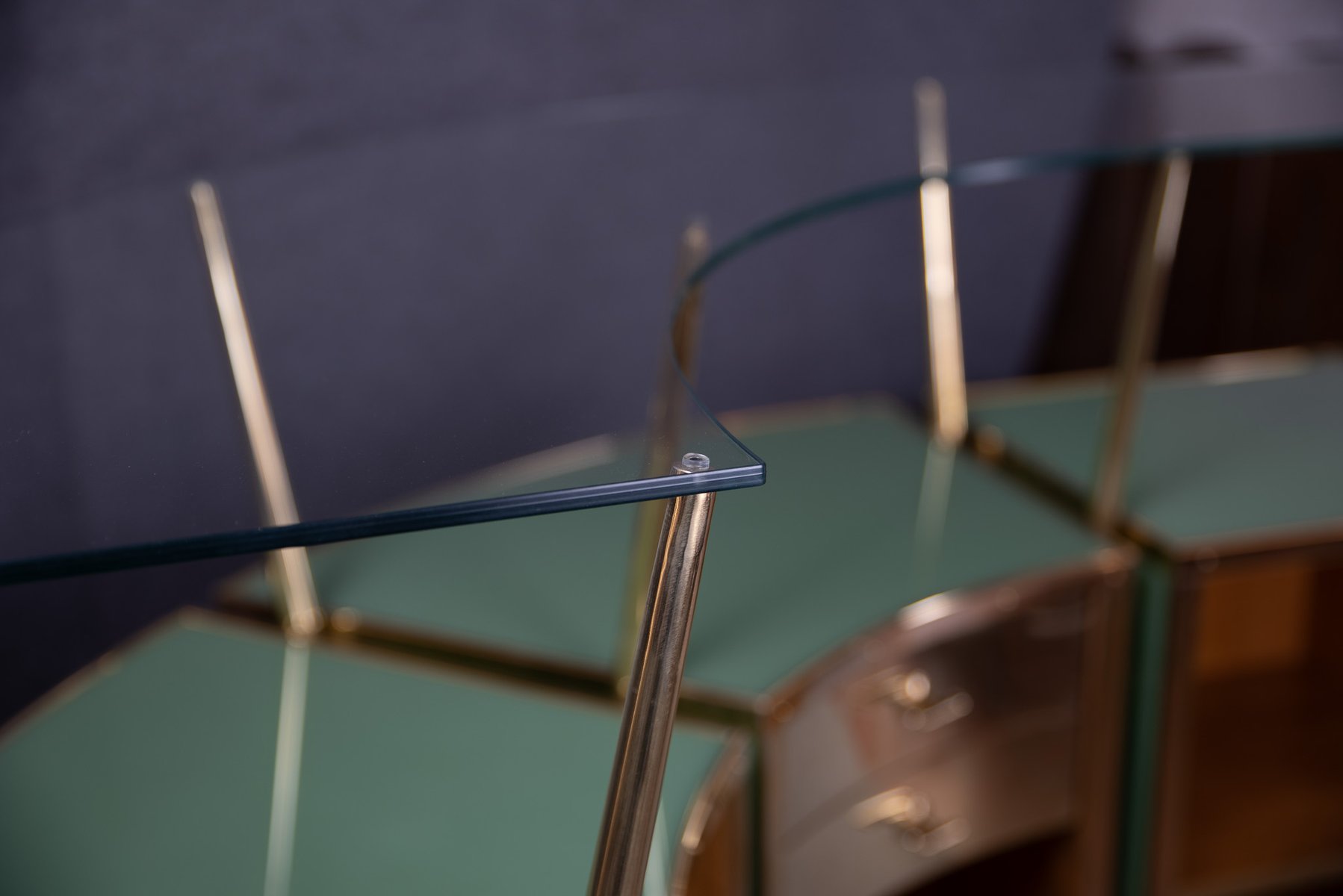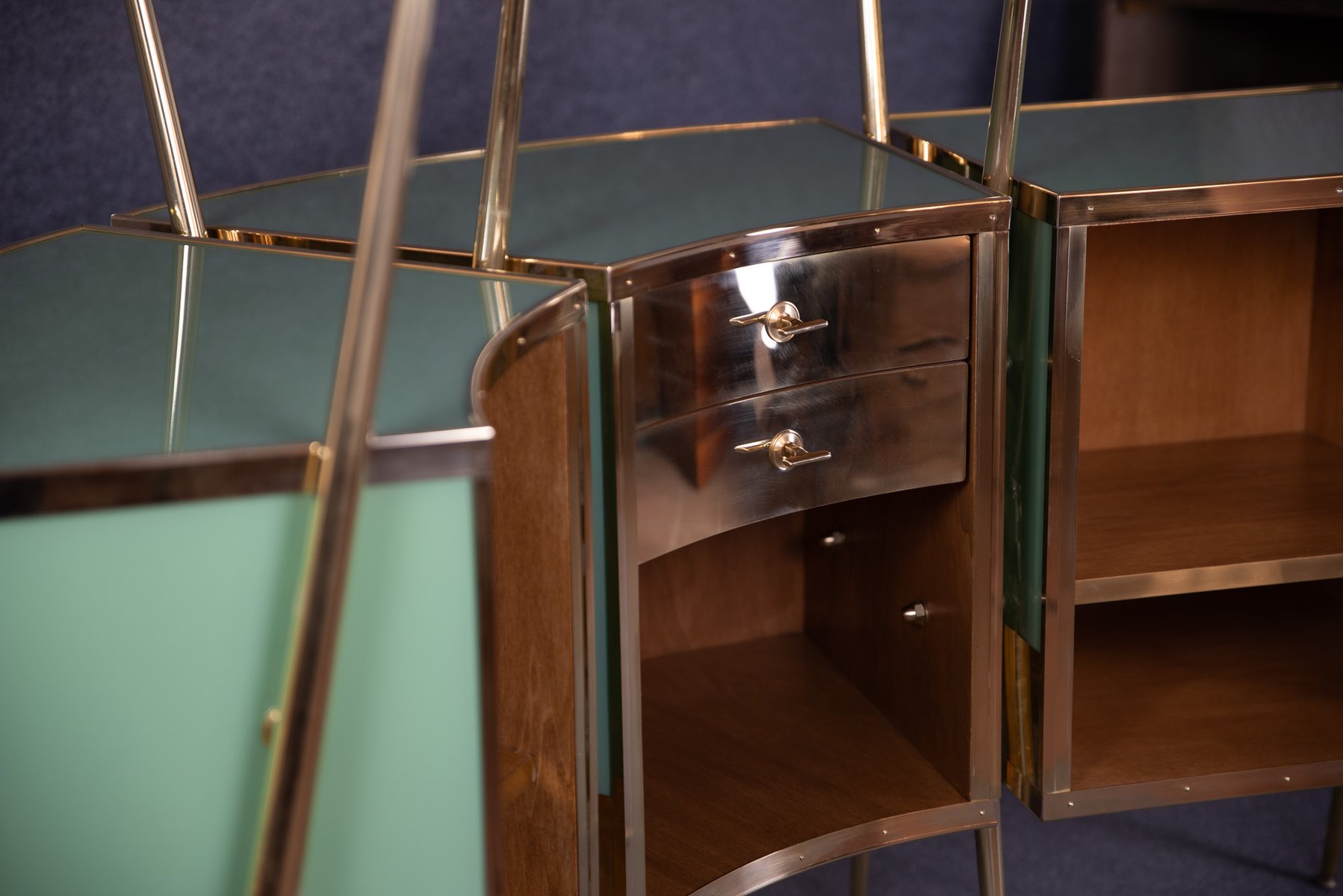 The dry bar designed in the style of Gio Ponti, produced by JustFurnituress, represents a perfect blend of innovative design and high-quality craftsmanship. JustFurnituress is not only the designer but also the manufacturer of this extraordinary piece of furniture, which allows for complete control over every phase of the process, from the initial conception to the final realization. This integrated approach ensures that each dry bar not only meets high aesthetic and functional standards but also reflects the brand's philosophy in terms of sustainability, quality, and artisanal craftsmanship.