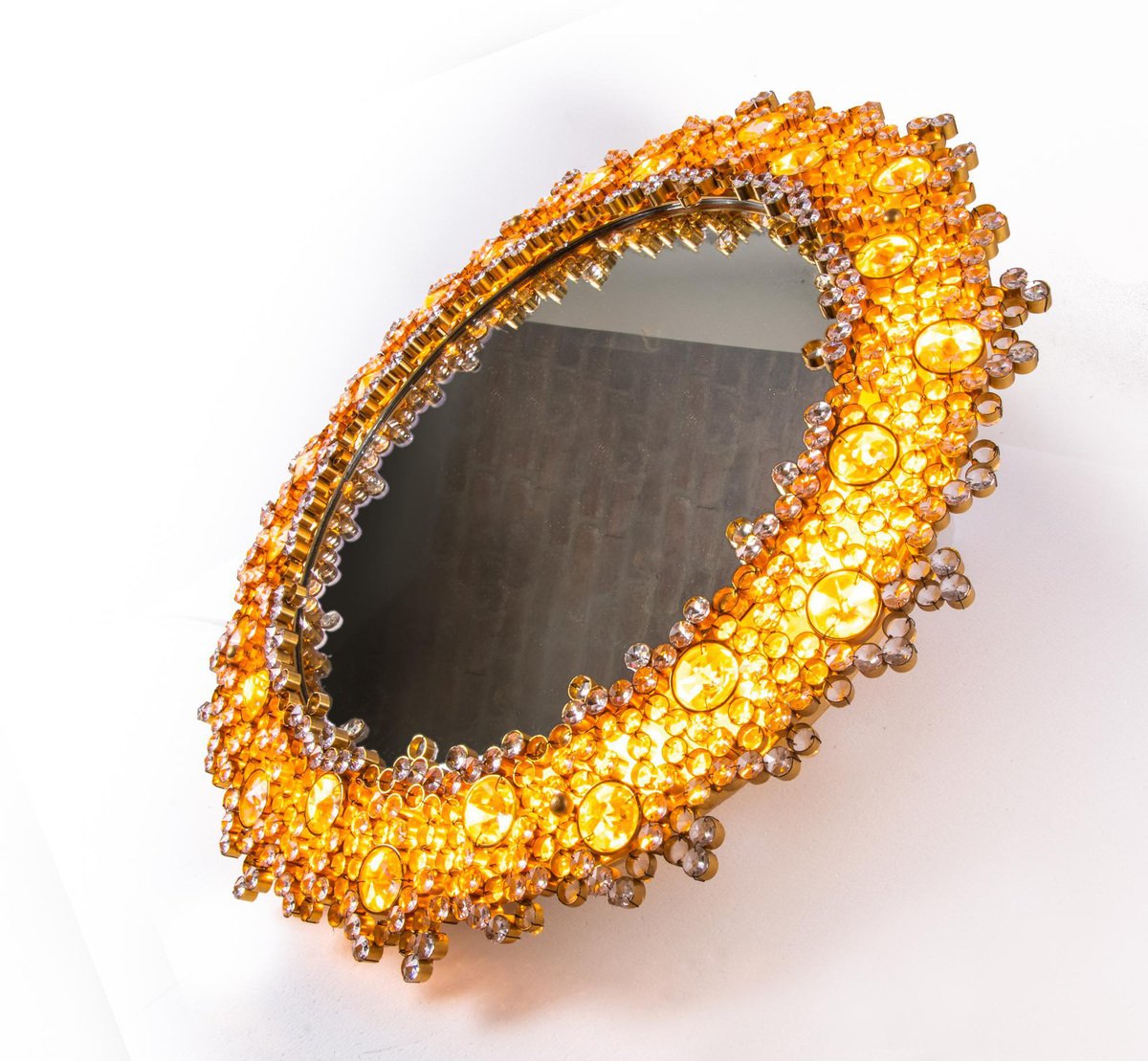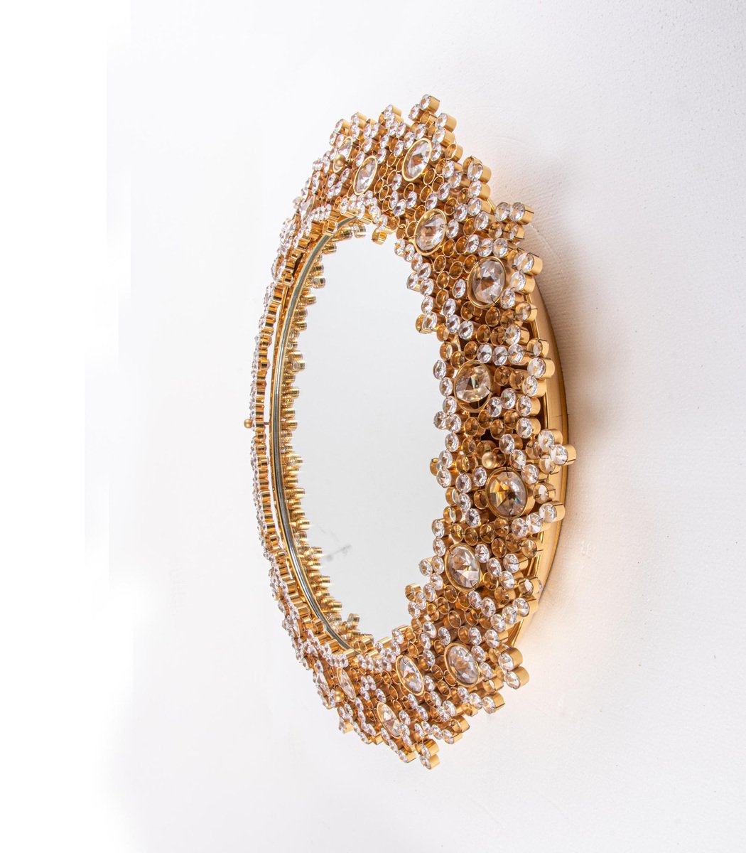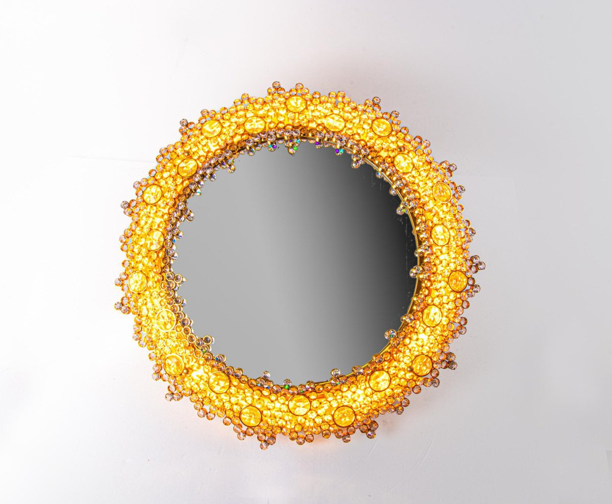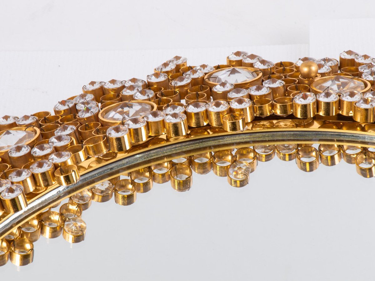 German Gilded Backlit Mirror in Swarovski Crystals & Brass from Palwa, 1960s