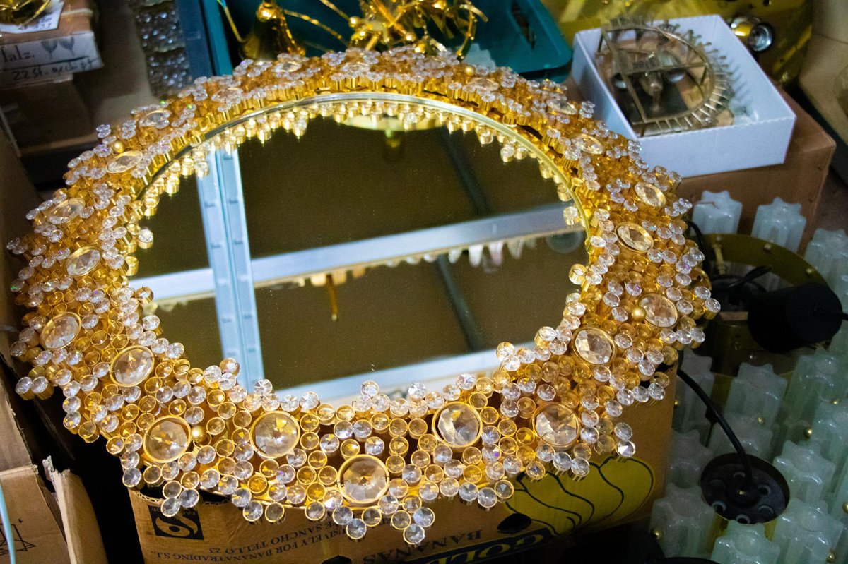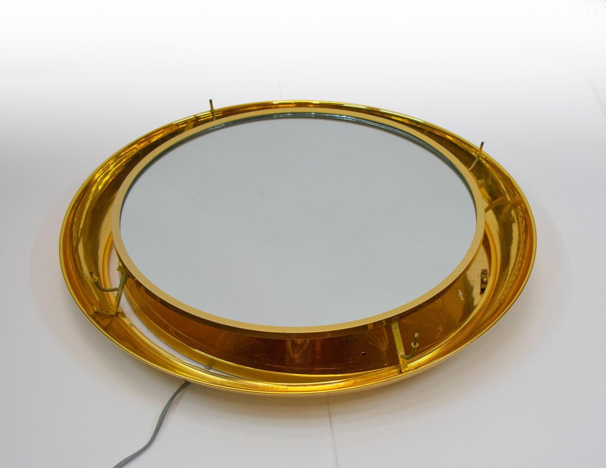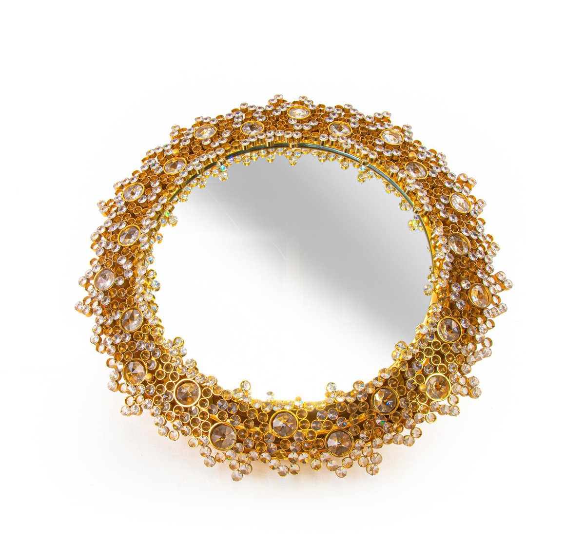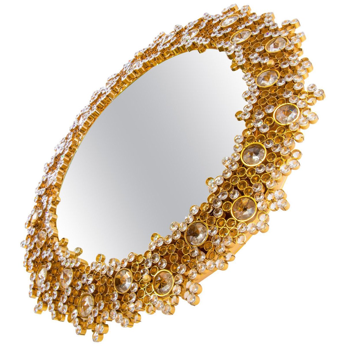 German Gilded Backlit Mirror in Swarovski Crystals & Brass from Palwa, 1960s