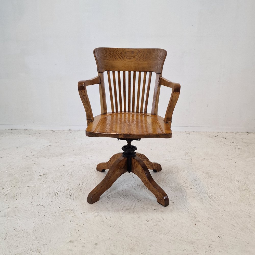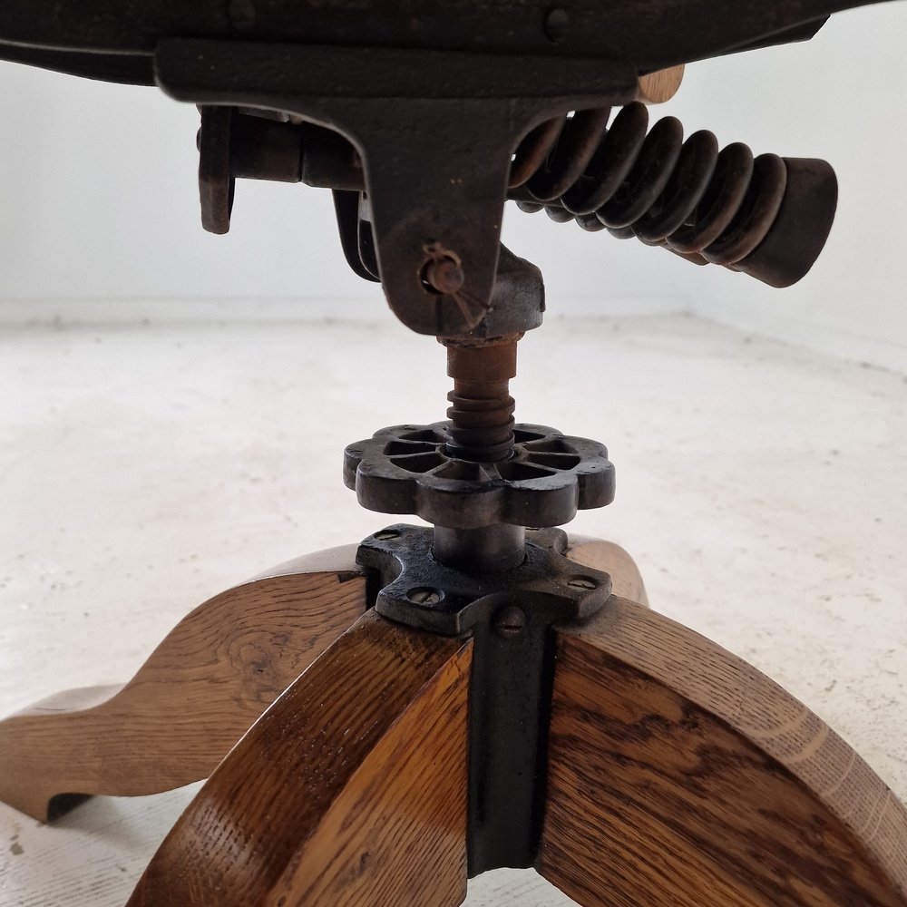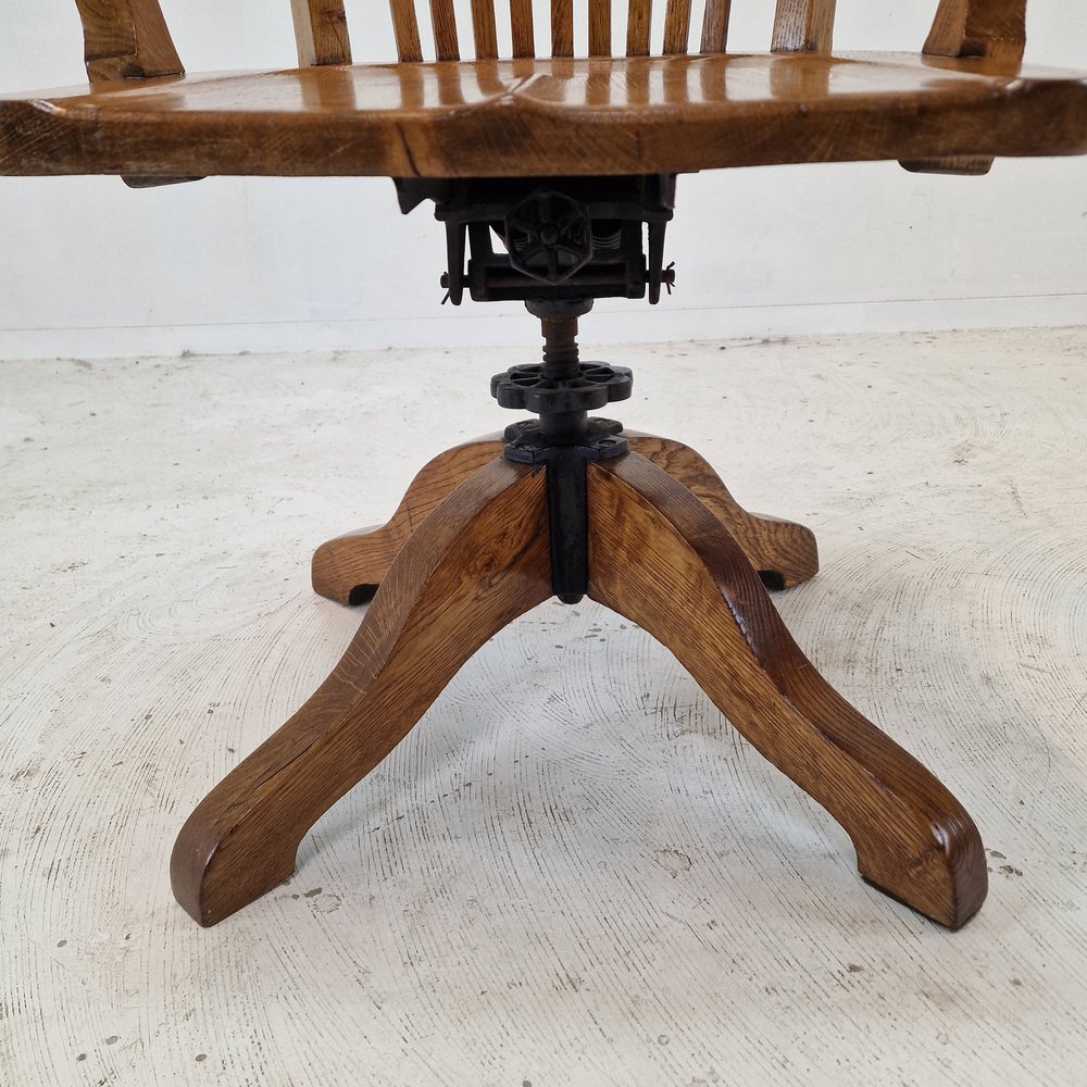 Industrial Oak Swivel Chair, 1900s
