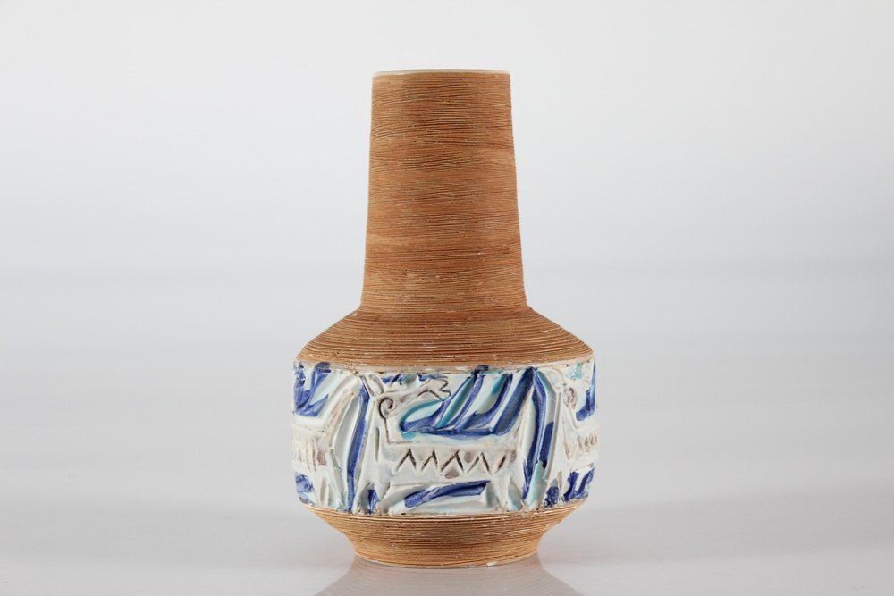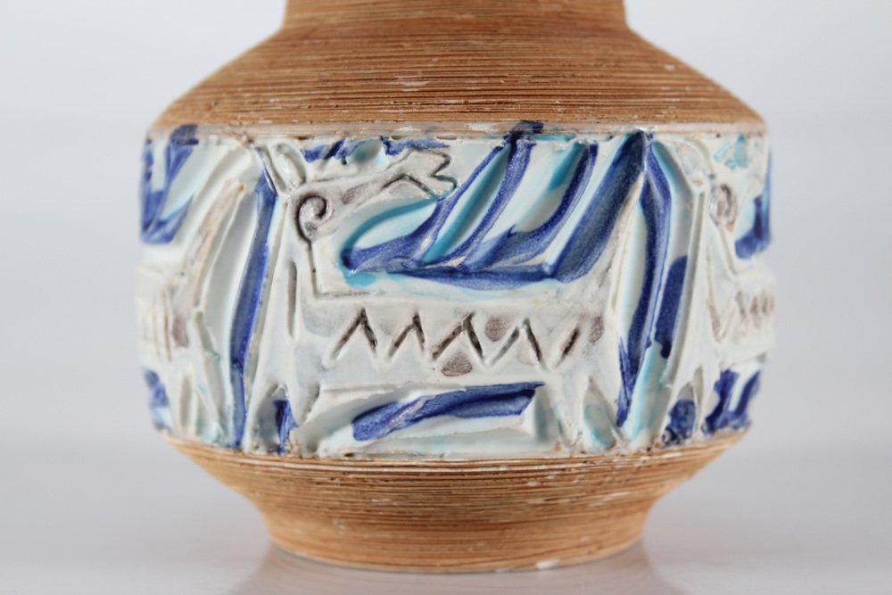 Italian Fratelli Fanciullacci Vase with Embossed Decoration of Fantasy Animals, 1960s