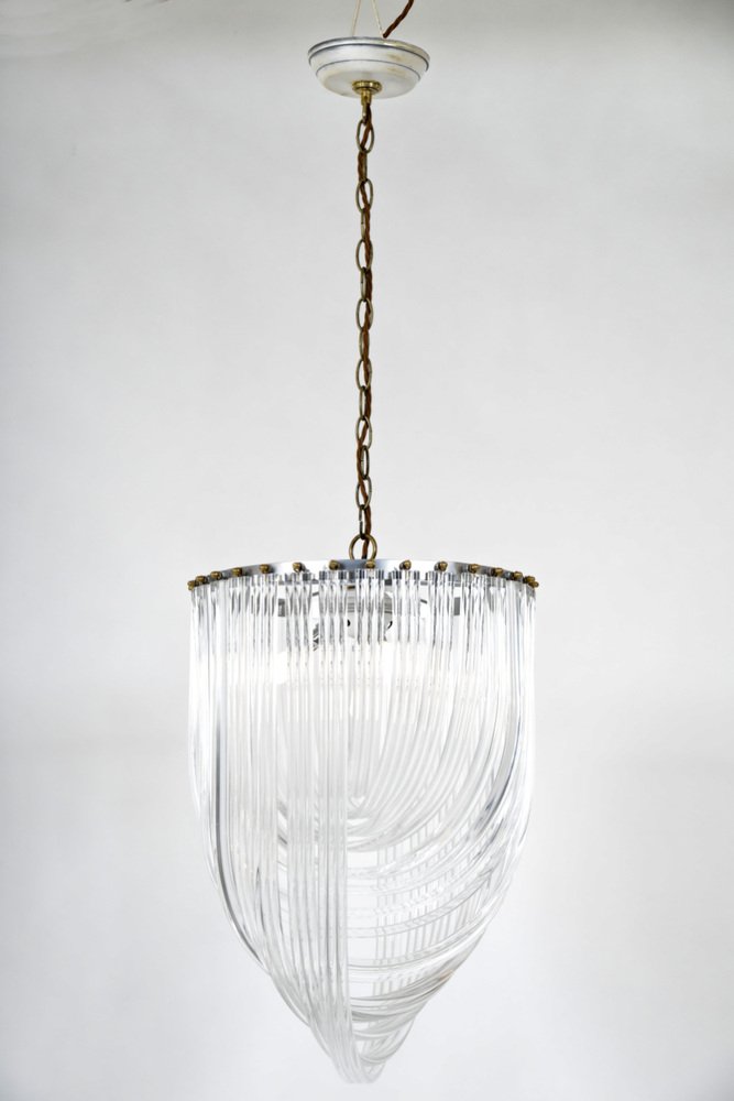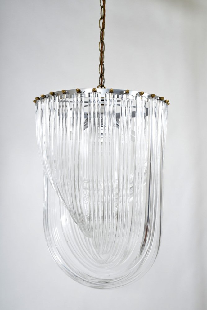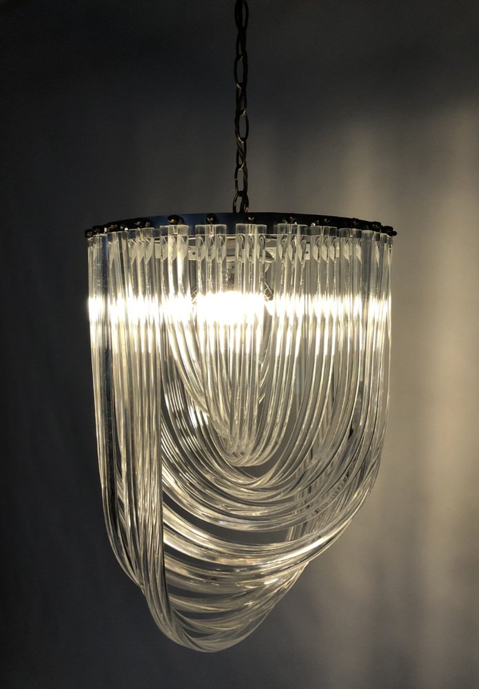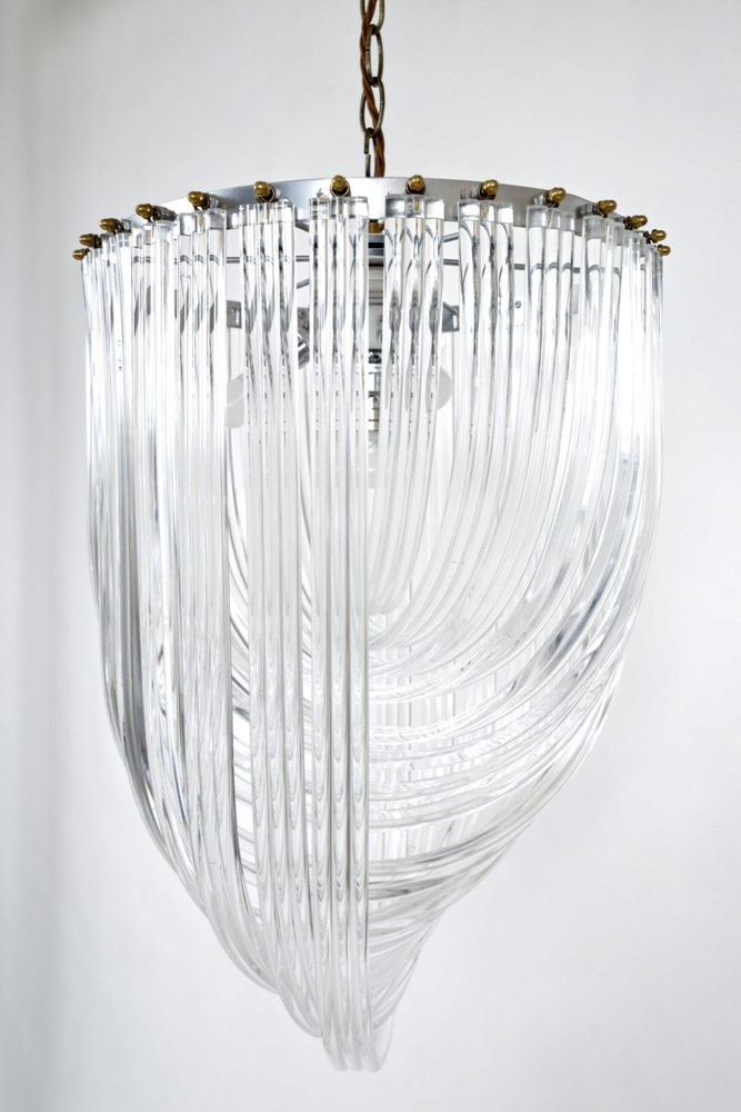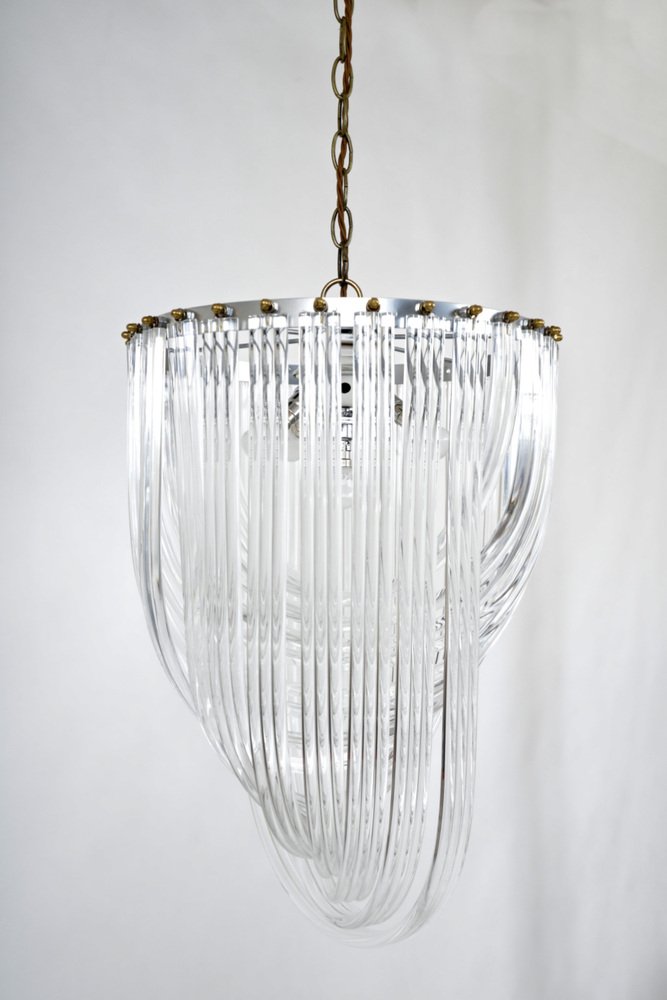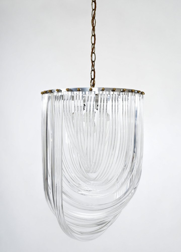 Large American Hollywood Regency Acrylic Glass and Brass Ribbon Chandelier, 1970s
