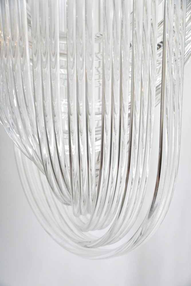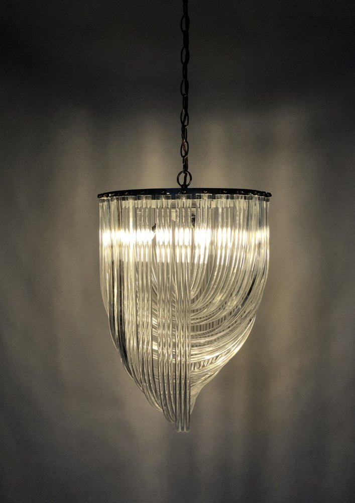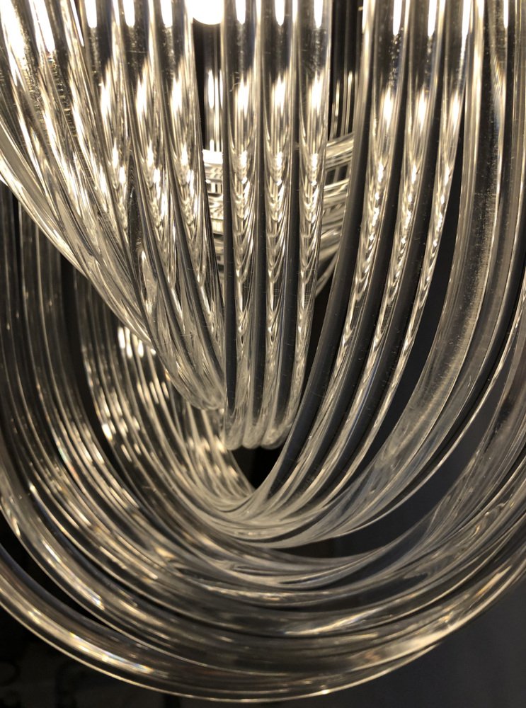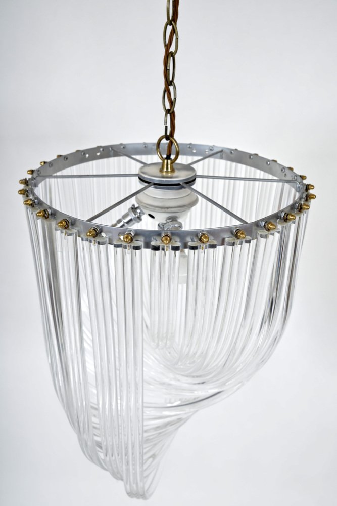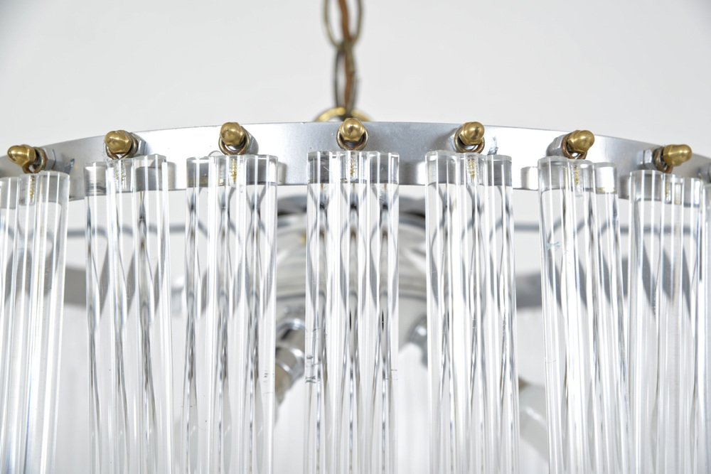 Large American Hollywood Regency Acrylic Glass and Brass Ribbon Chandelier, 1970s