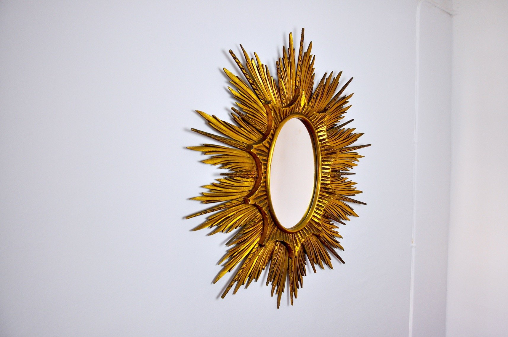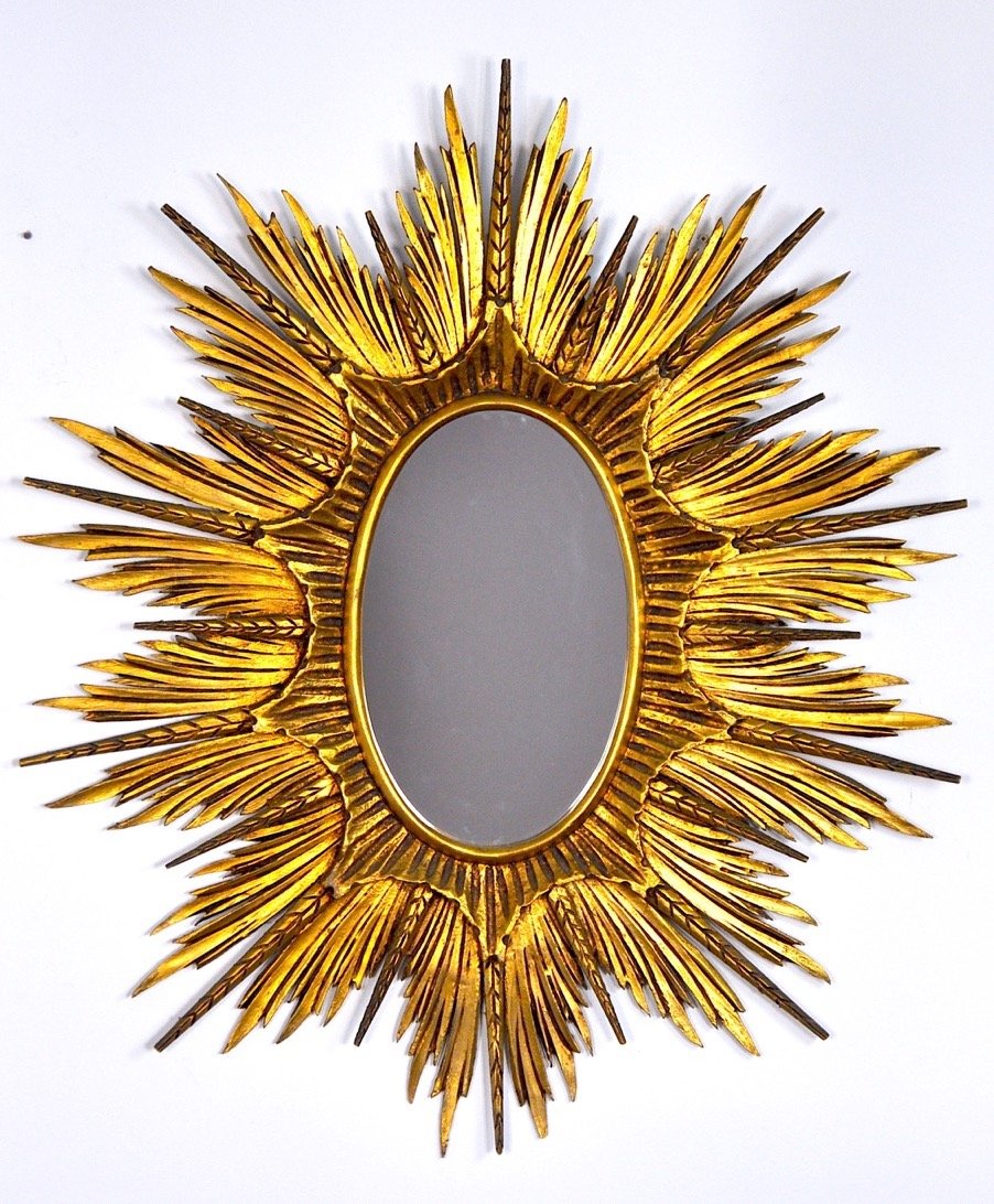 Large Golden Wood Sun Mirror, 1920s