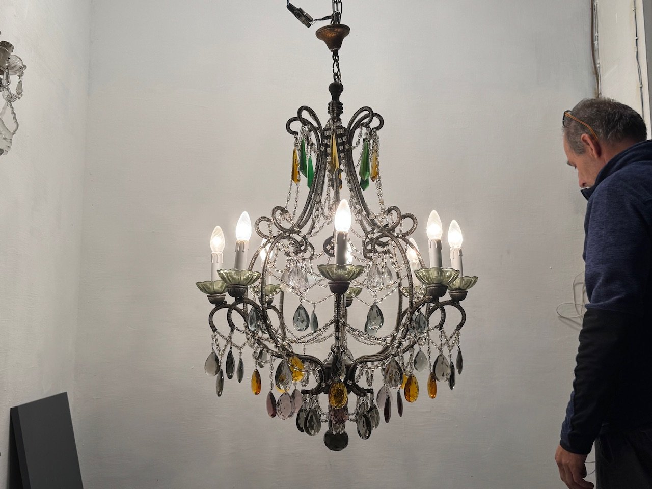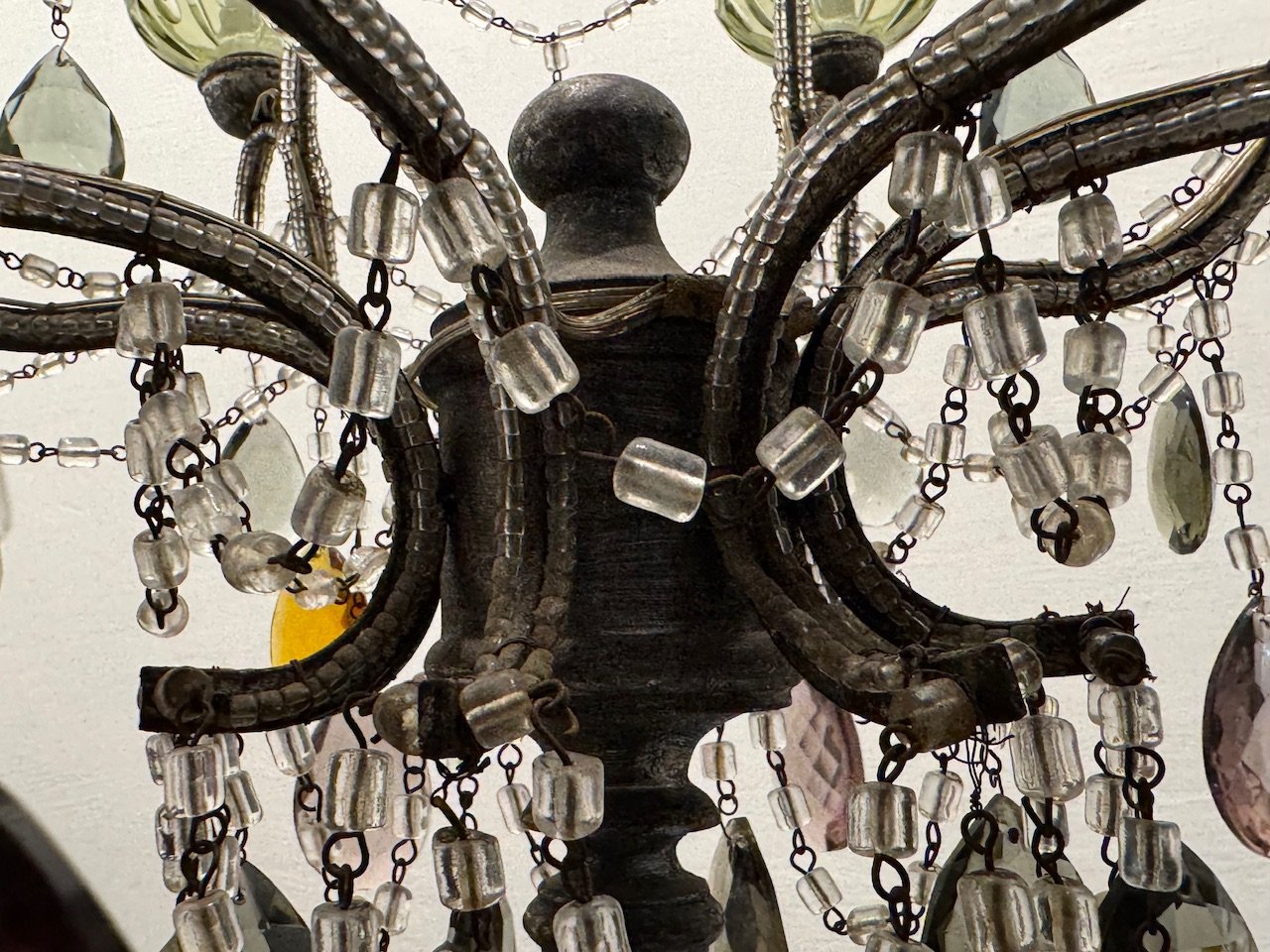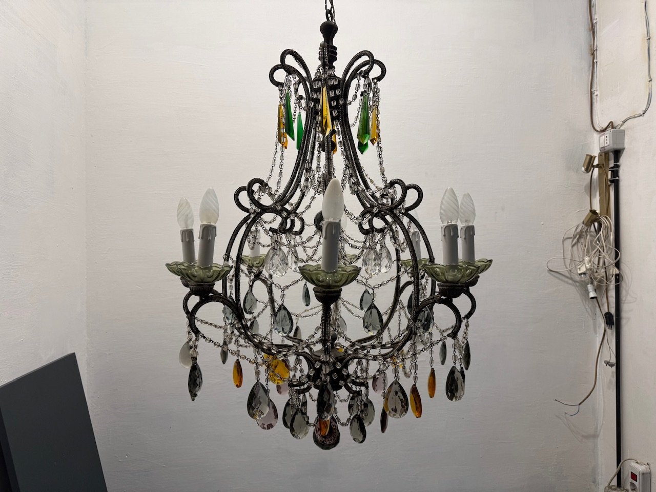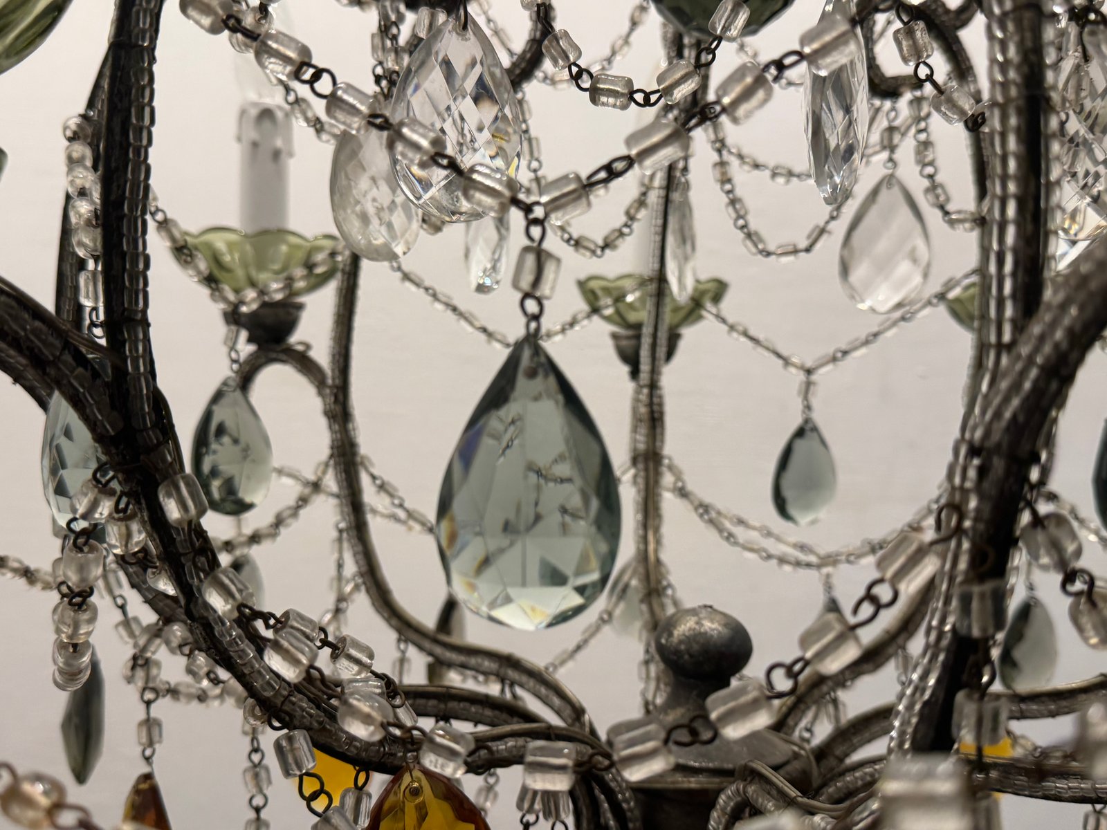Large Macaroni Crystal Multicolored Chandelier, 1950s