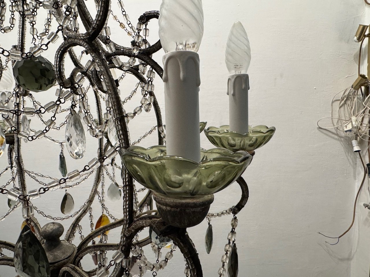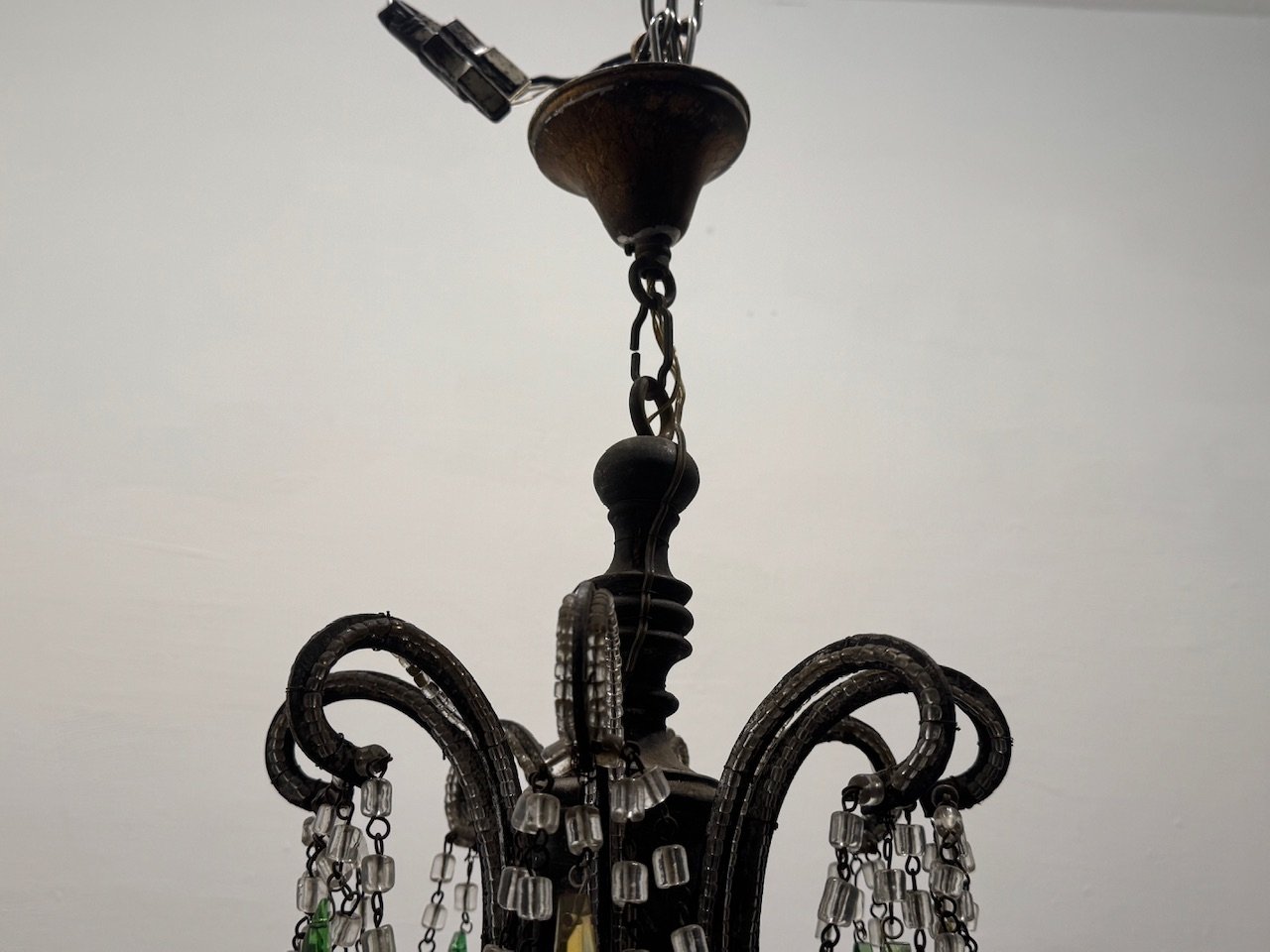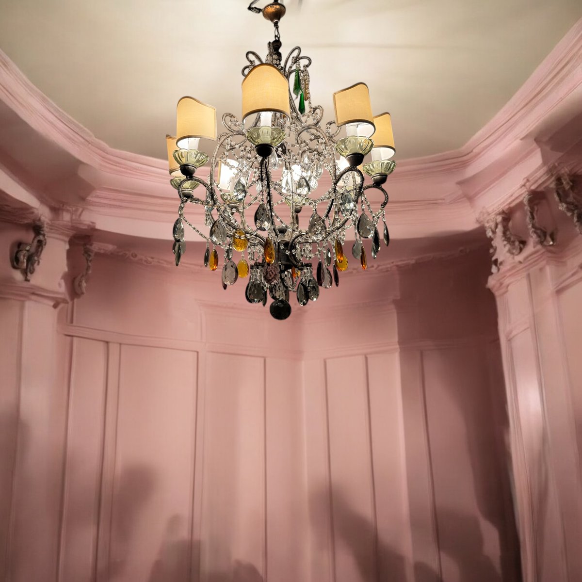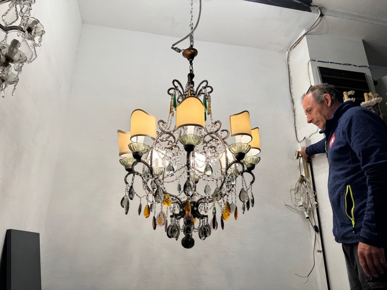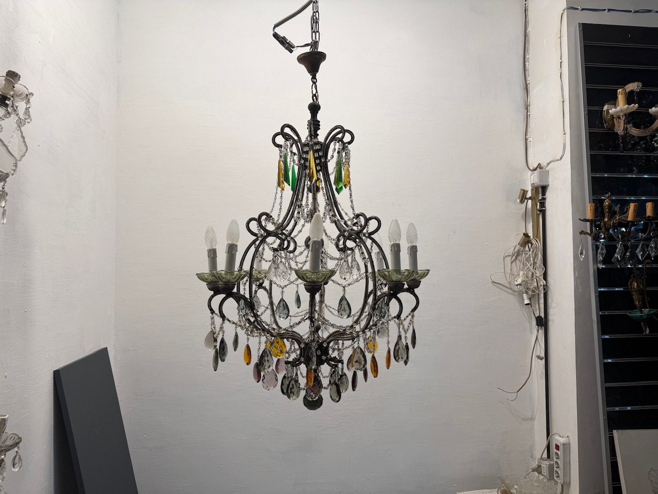 Large Macaroni Crystal Multicolored Chandelier, 1950s