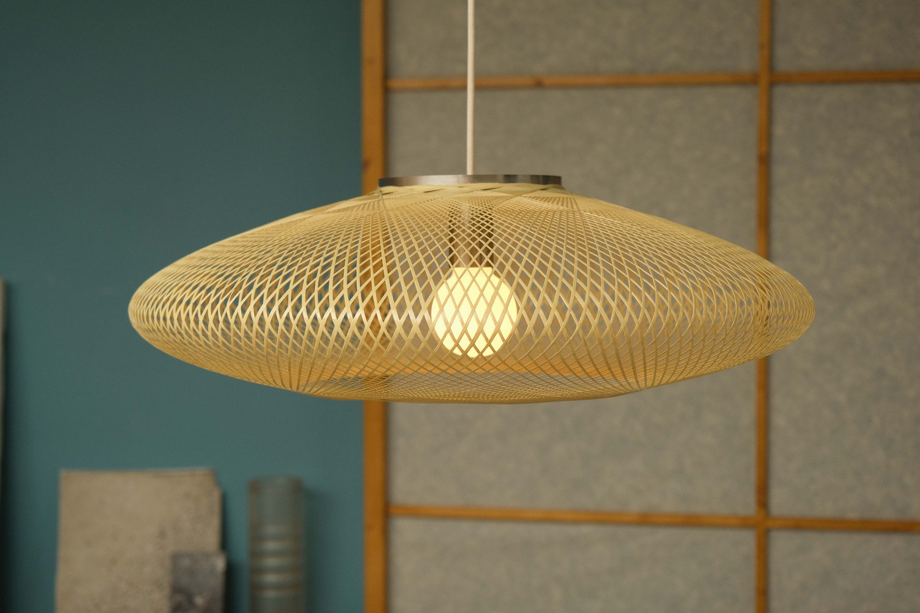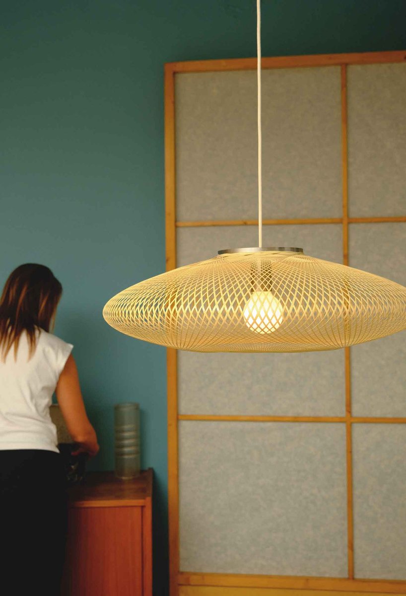 Large Ufo Hazy Yellow Flat Fiber Pattern Lamp by Atelier Robotiq