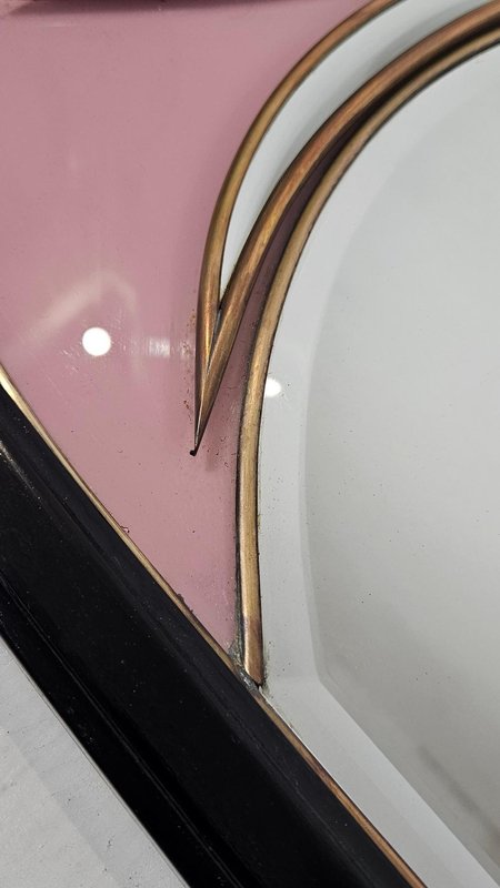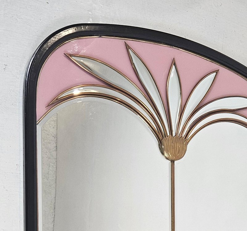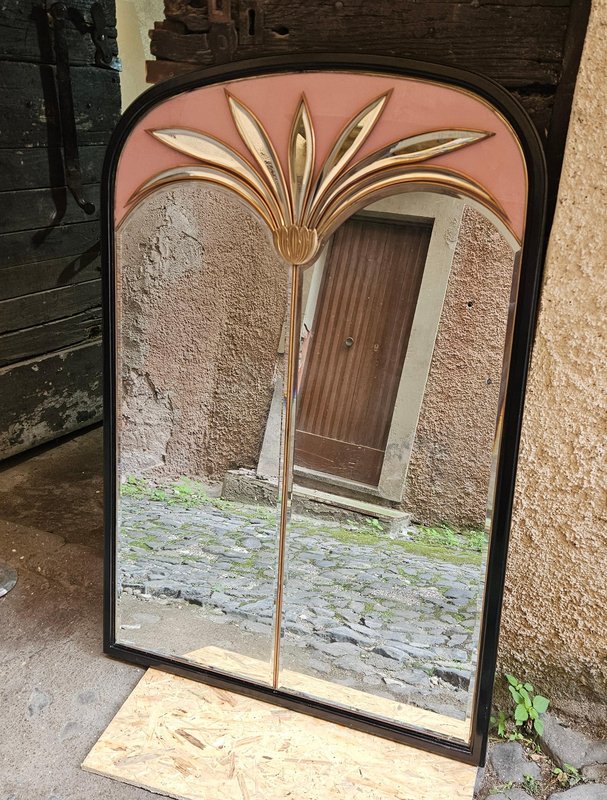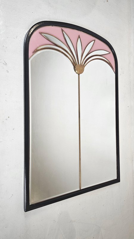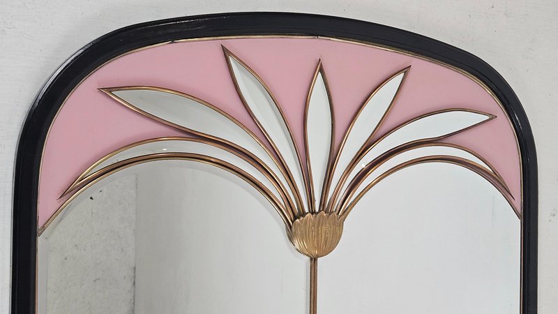 Large Vintage Art Deco Italian Mirror in Pink and Black, 1970s