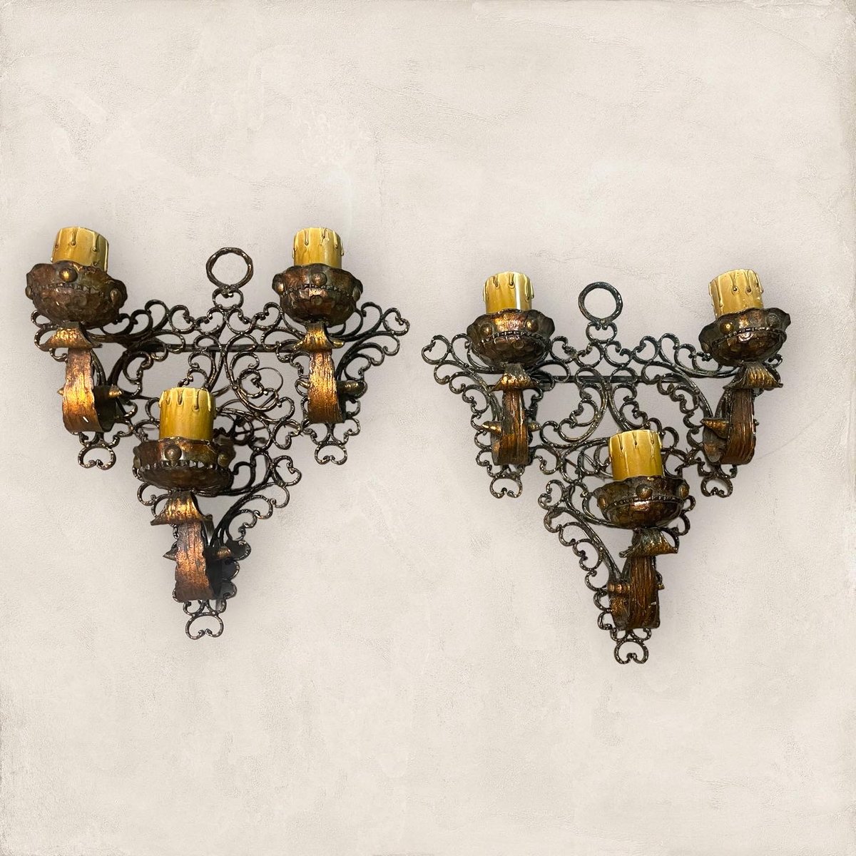 Large Wrought Iron Sconces, 1980s, Set of 2