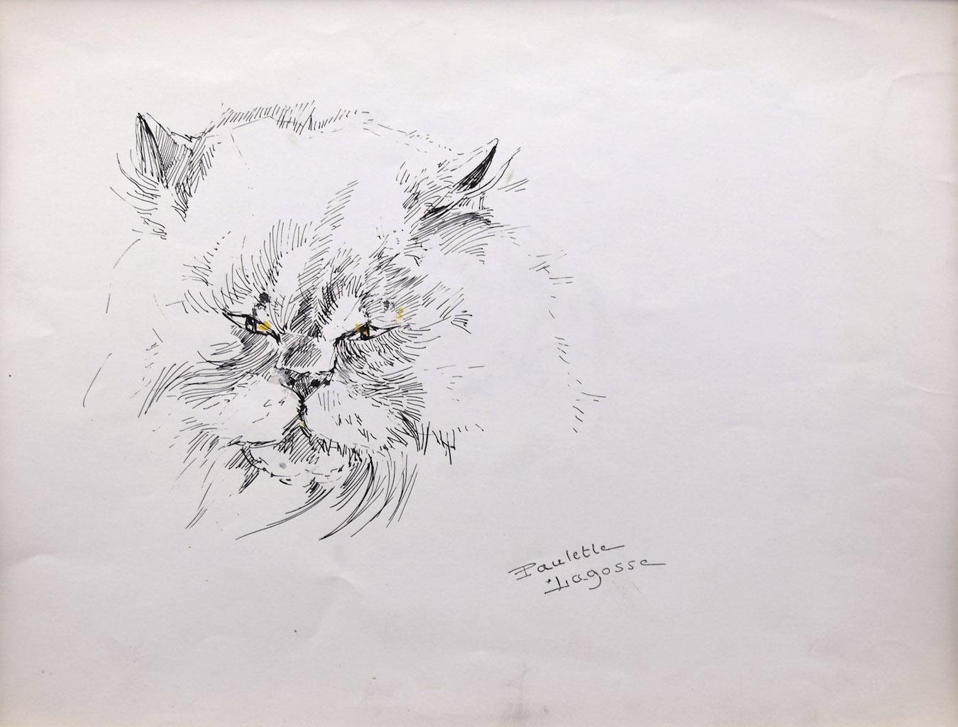 Marie Paulette Lagosse, The Cat, Pen on Paper, 1970s