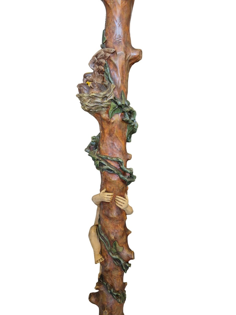 Mid-1800s Carved Wood Floor Lamp with Putti and Birds, 1850