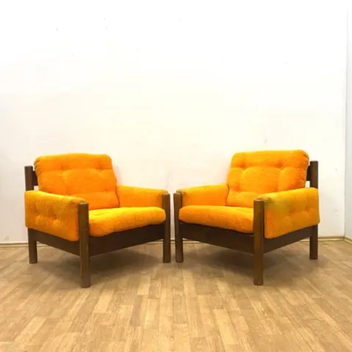 Mid-Century Modern Sofa and Lounge Chairs, 1970s, Set of 3