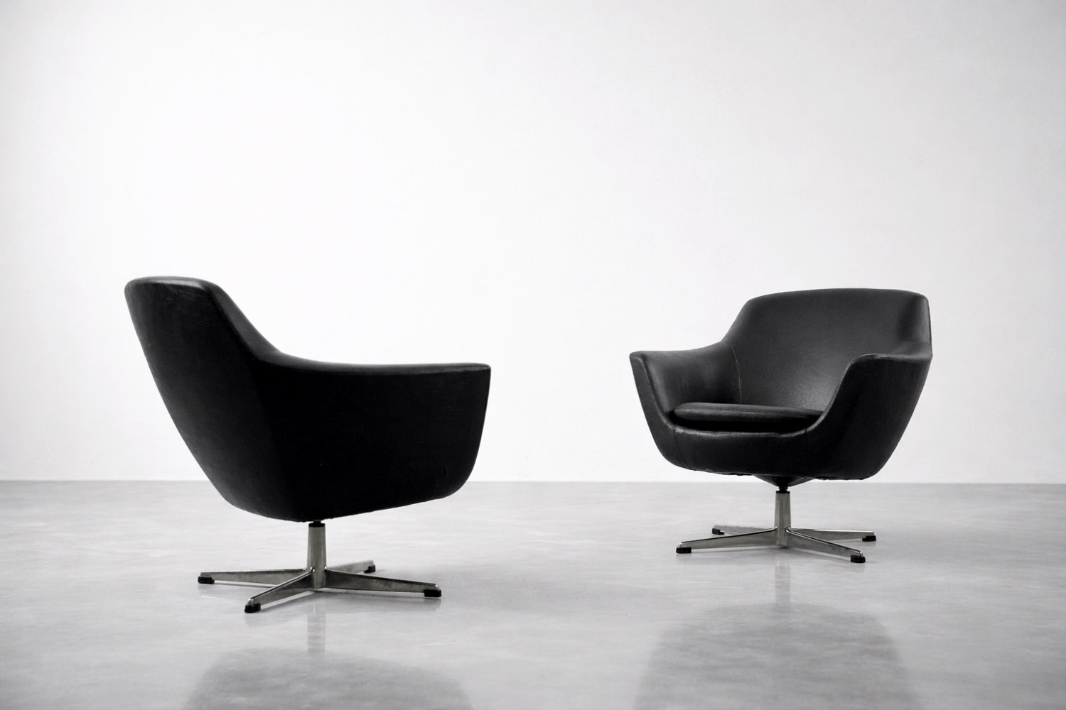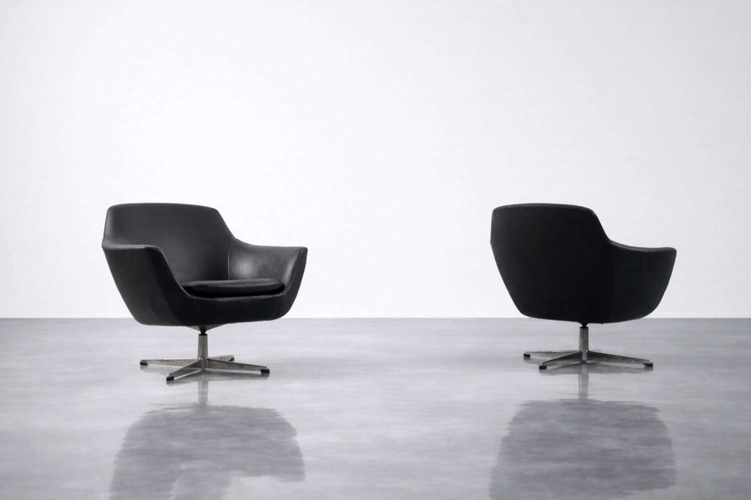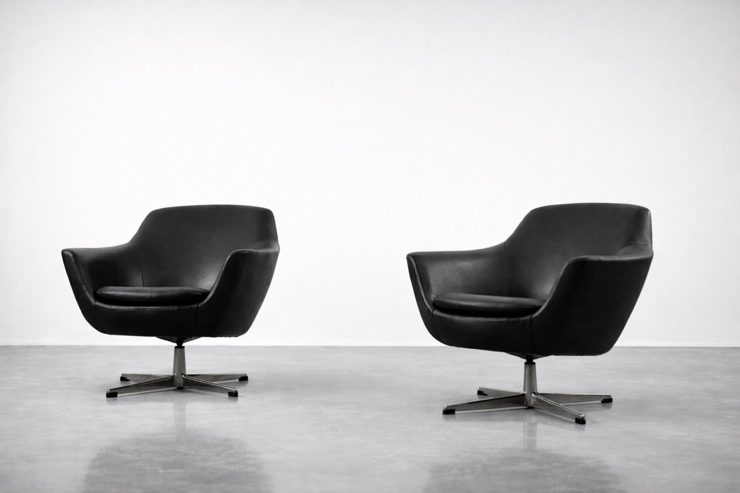 Mid-Century Scandinavian Modern Black Swivel Chairs, 1970s, Set of 2