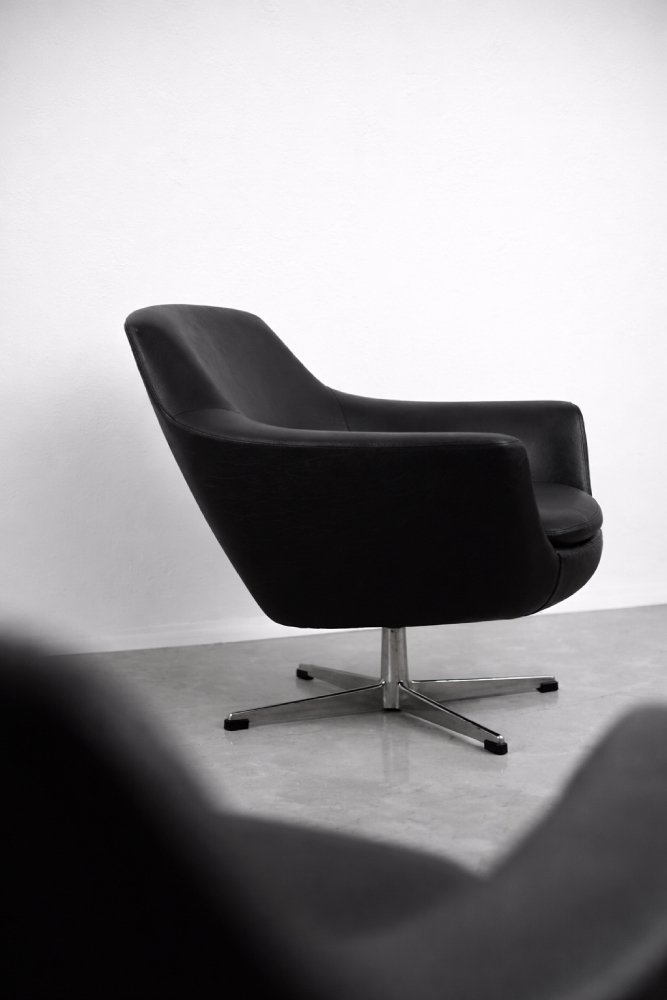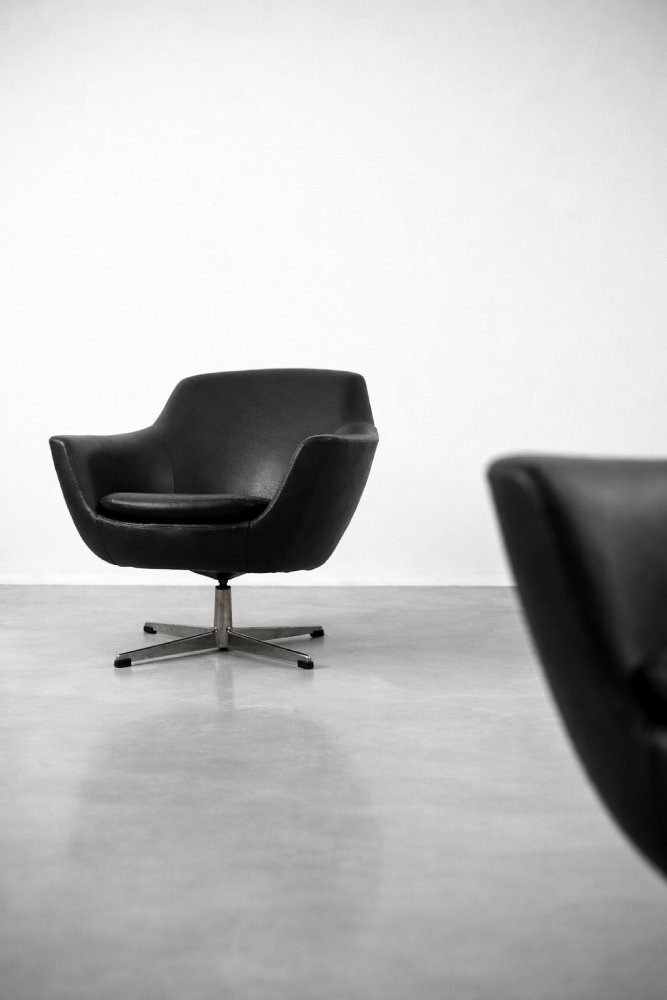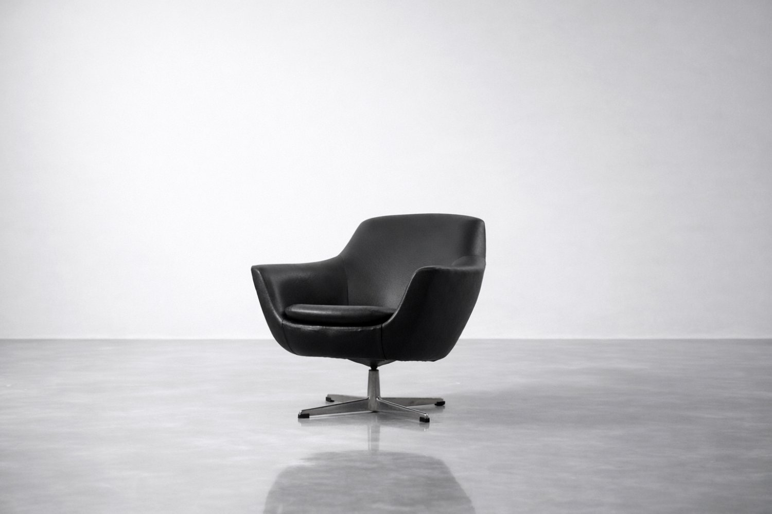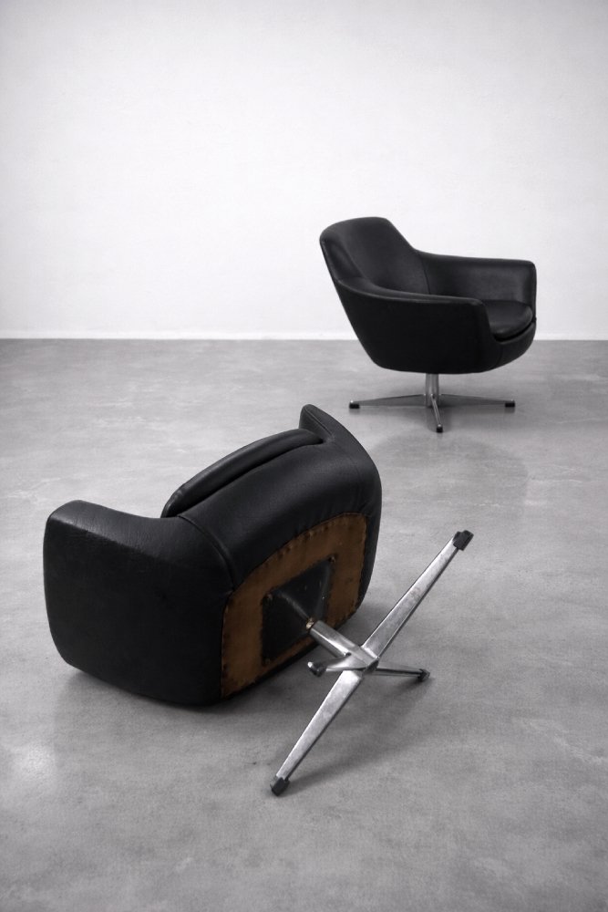 Mid-Century Scandinavian Modern Black Swivel Chairs, 1970s, Set of 2