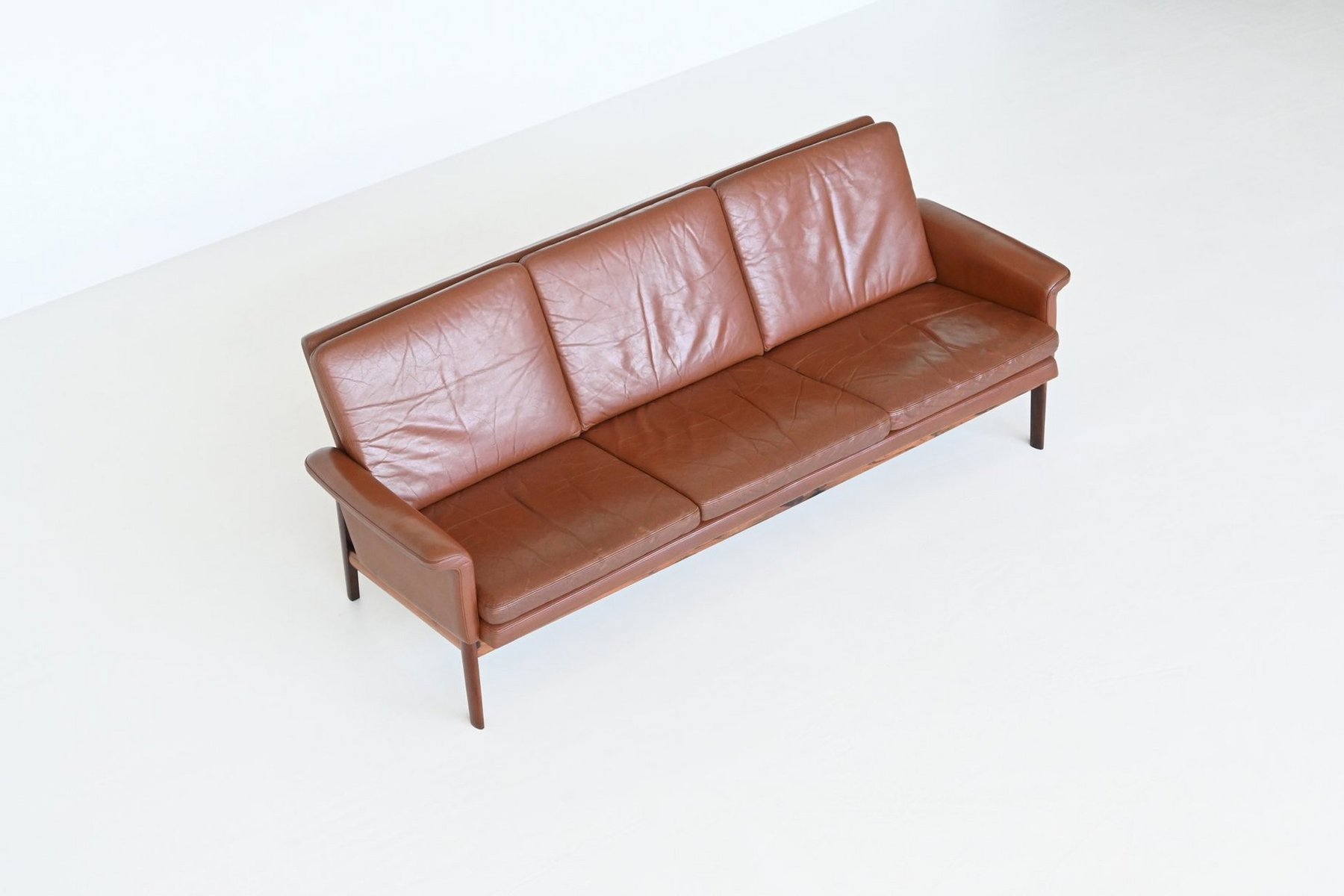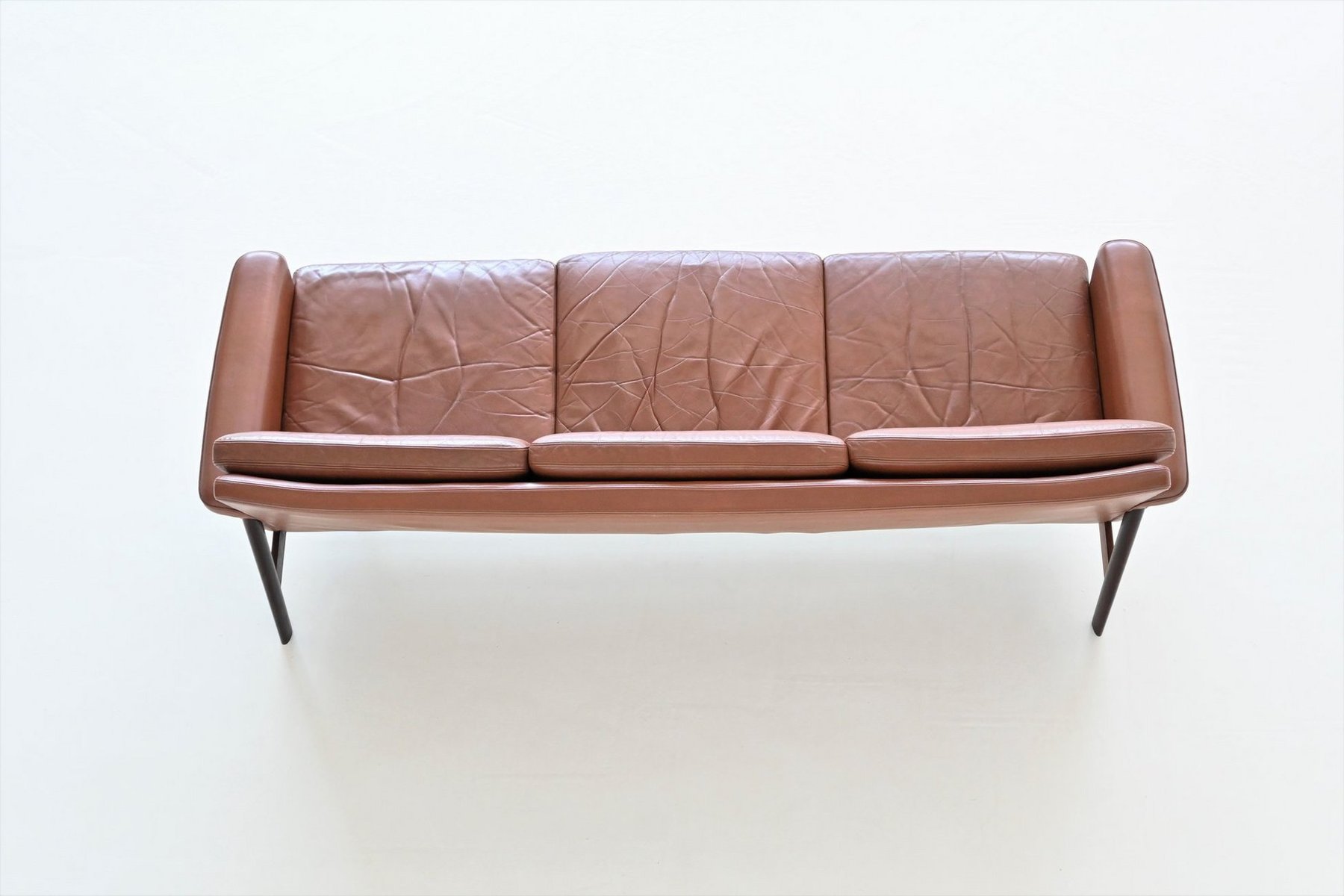 Model Jupiter Sofa in Brown Leather by Finn Juhl for France & Søn, 1960s