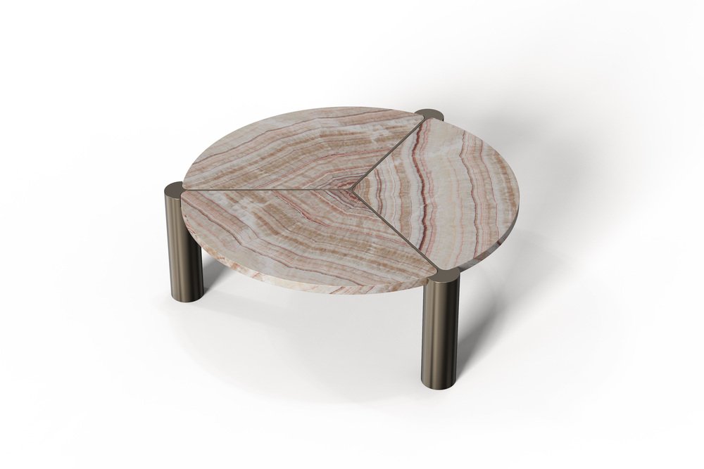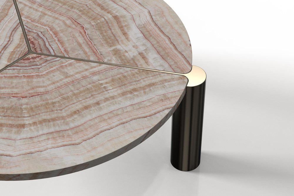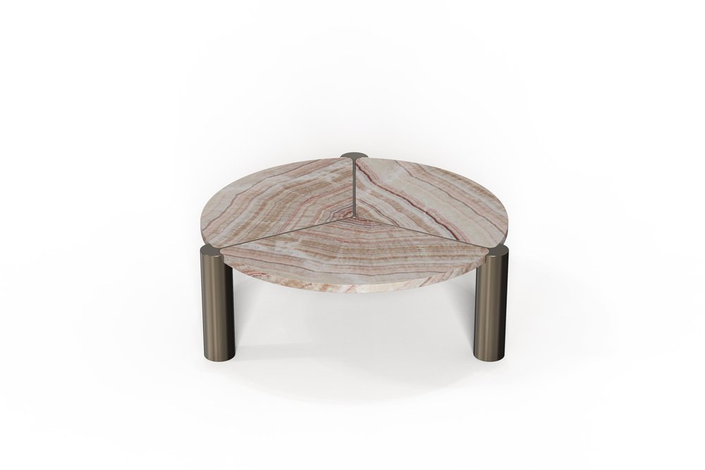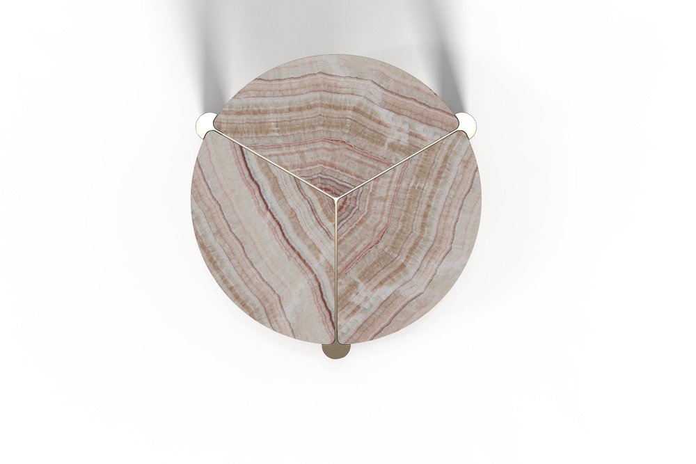 Modern Leaf Center Table in Brioches Onice and Goldish Metal by Javier Gomez