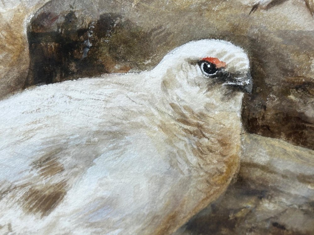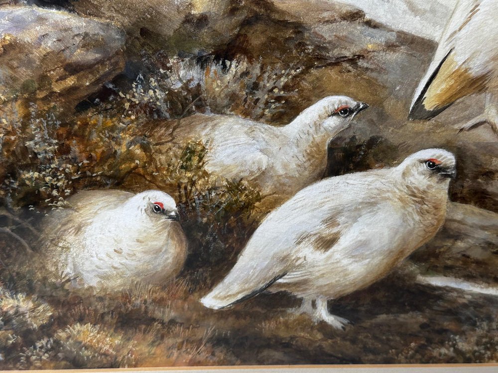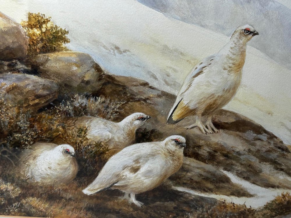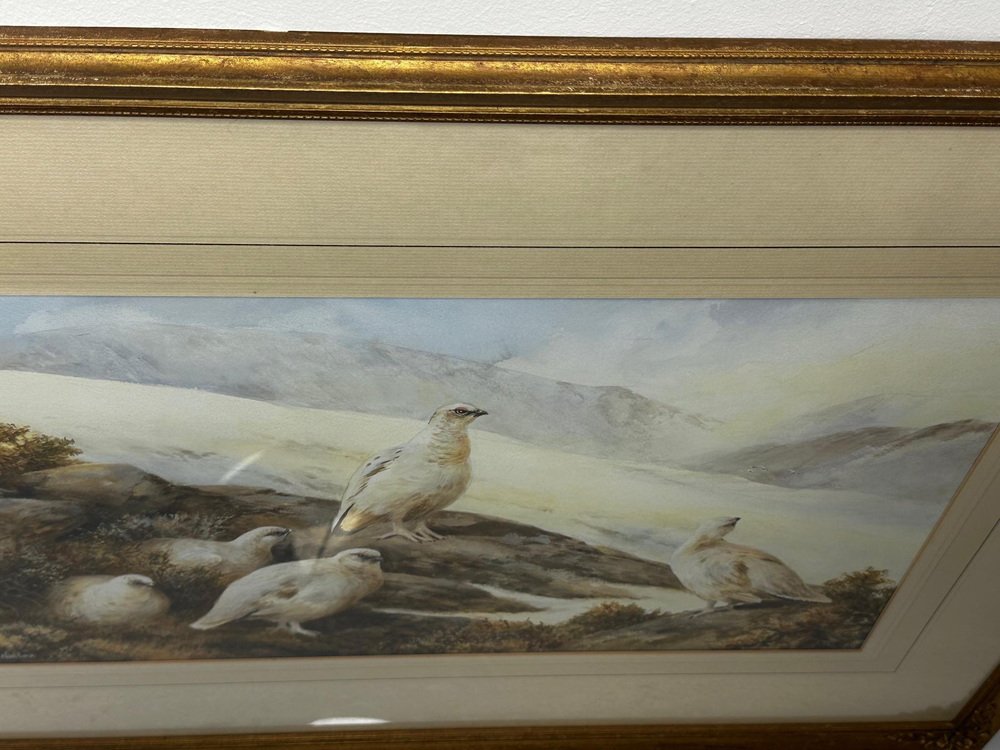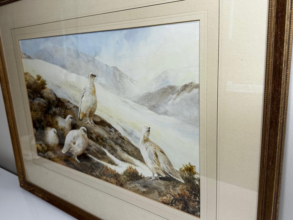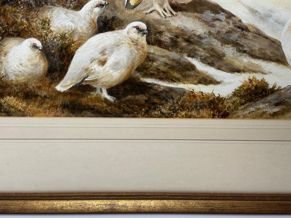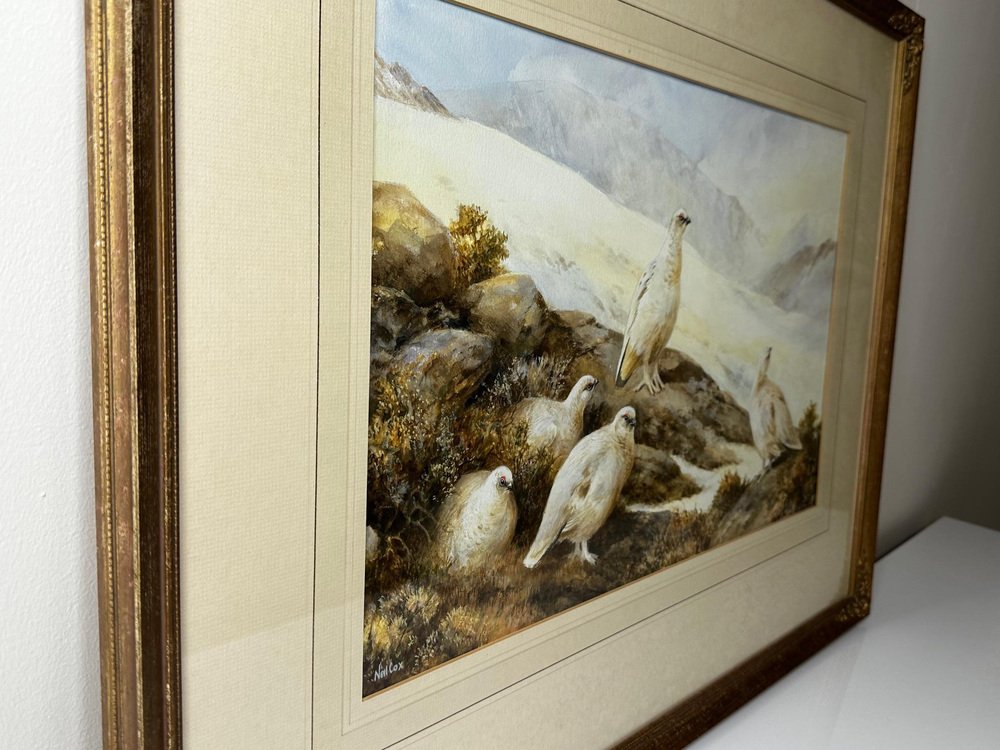 Neil Cox, Highland Moors Wildlife Covey of Ptarmigan Game Birds, Watercolor