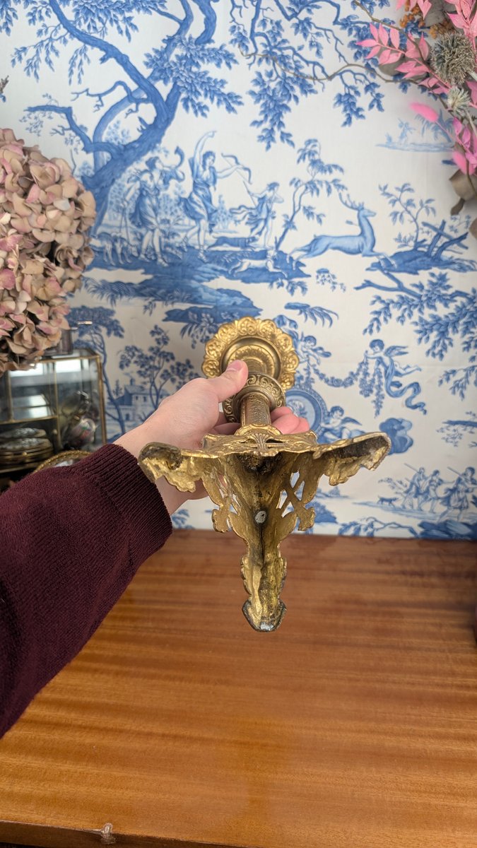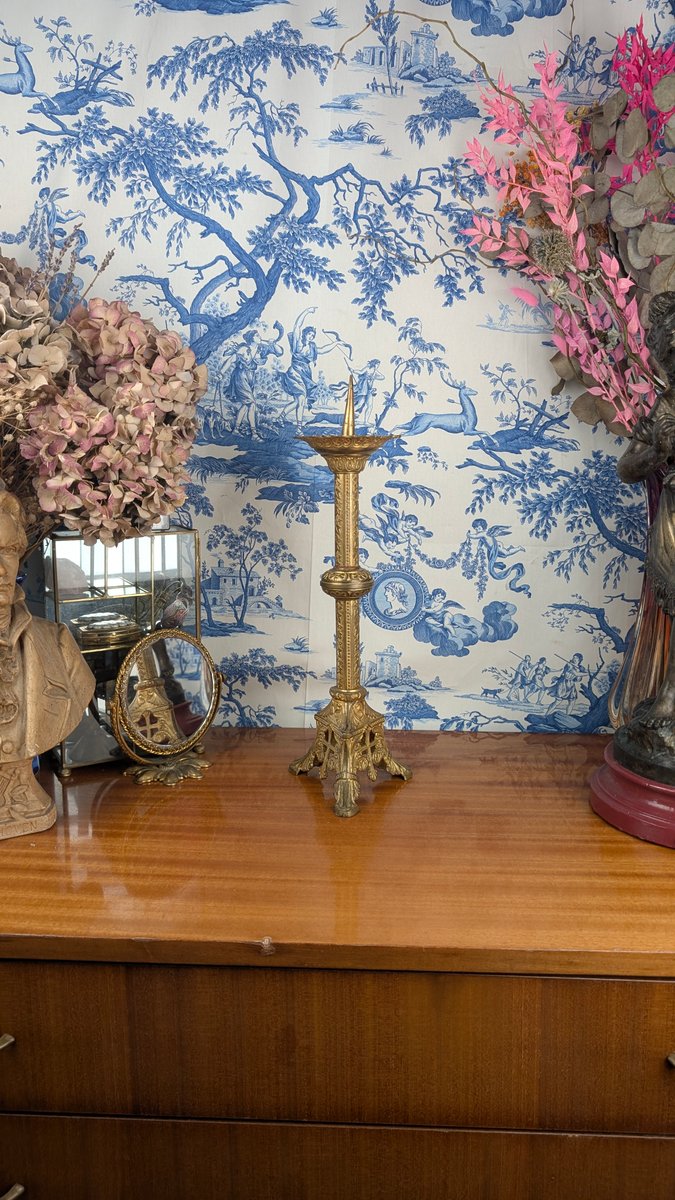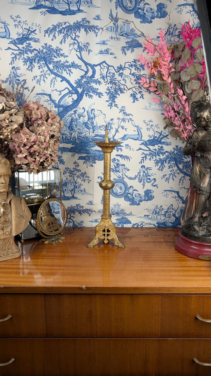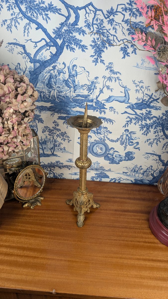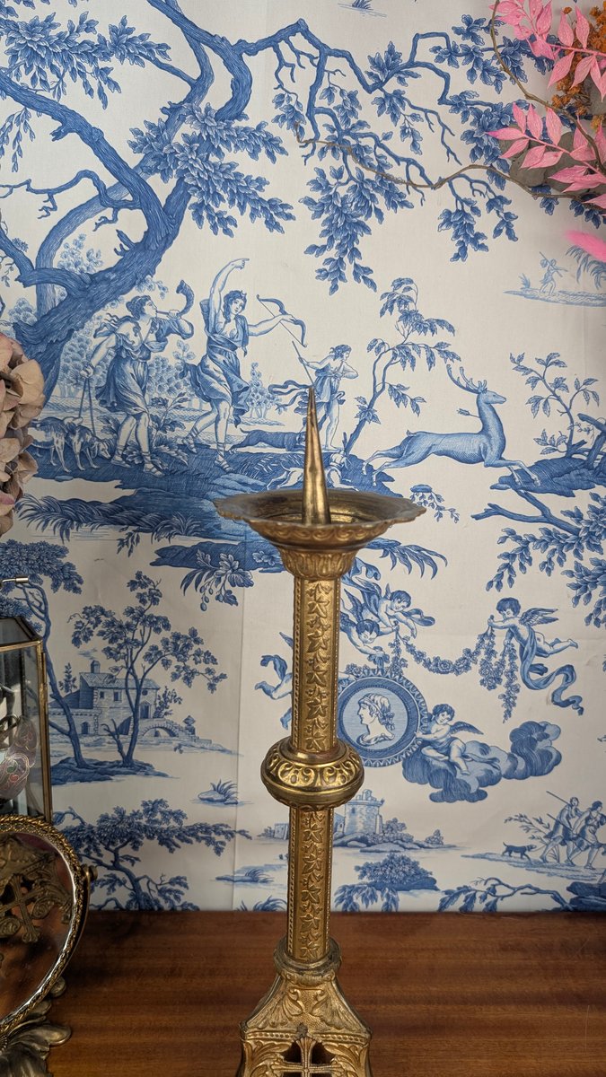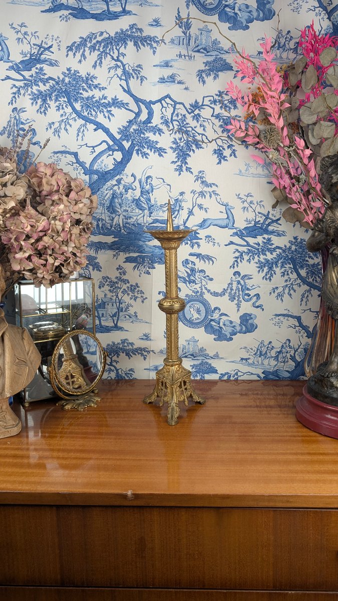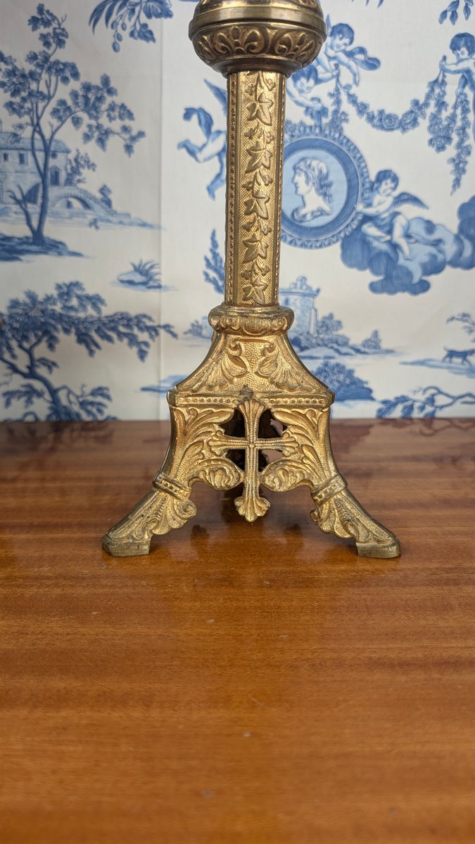 Neo-Gothic Church Candlestick in Polychrome Gilt Bronze, Late 19th Century