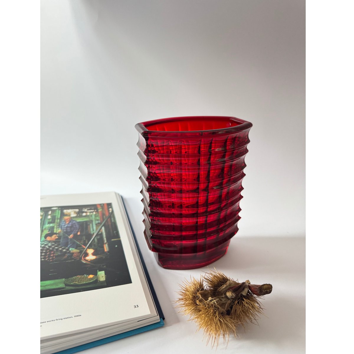 Optical Ruby Red Vase by Jan Sylwester Drost for HSG Ząbkowice, Poland, 1970s