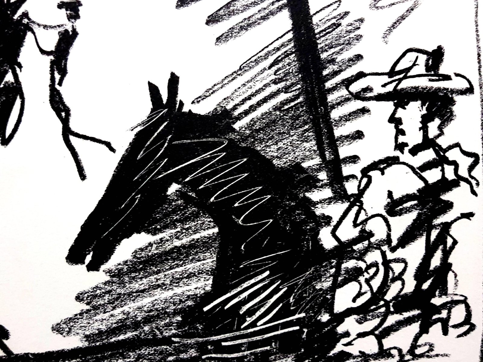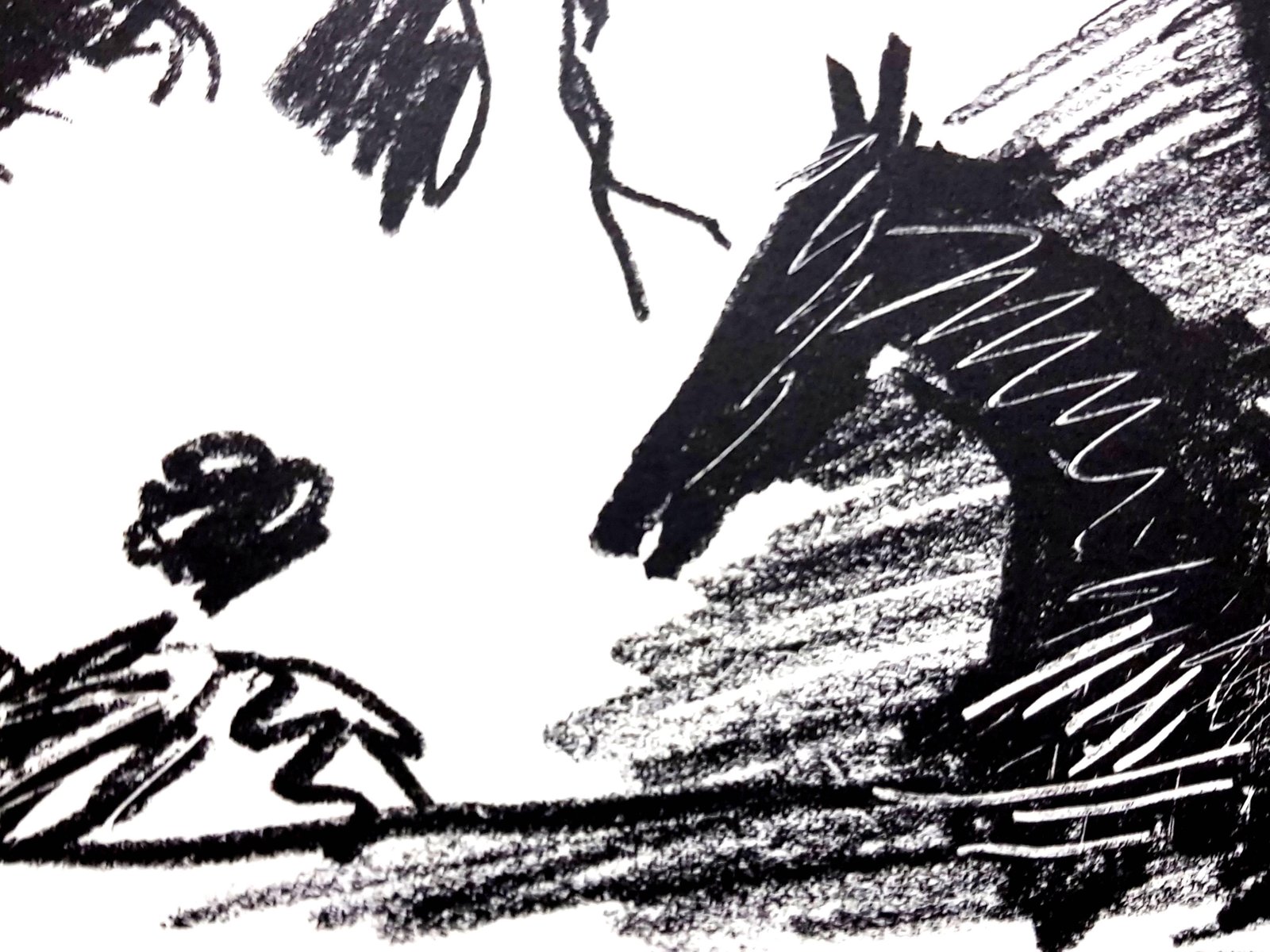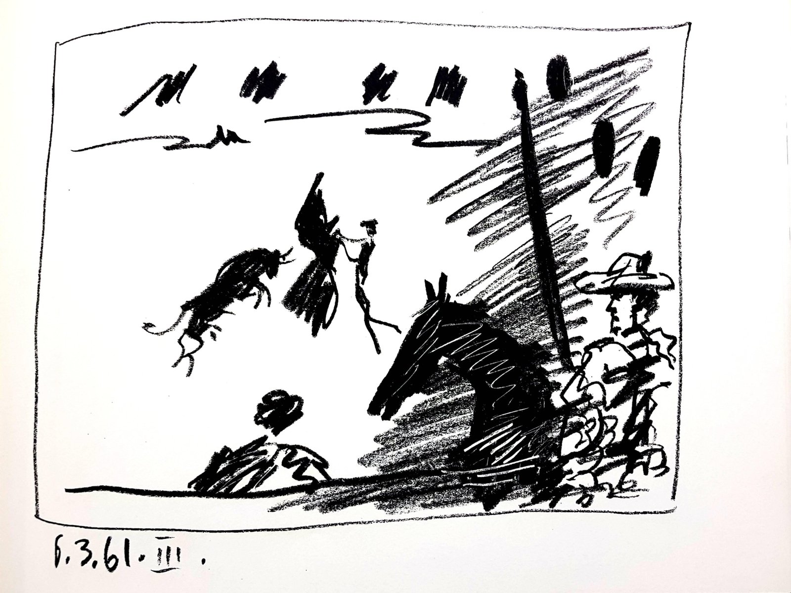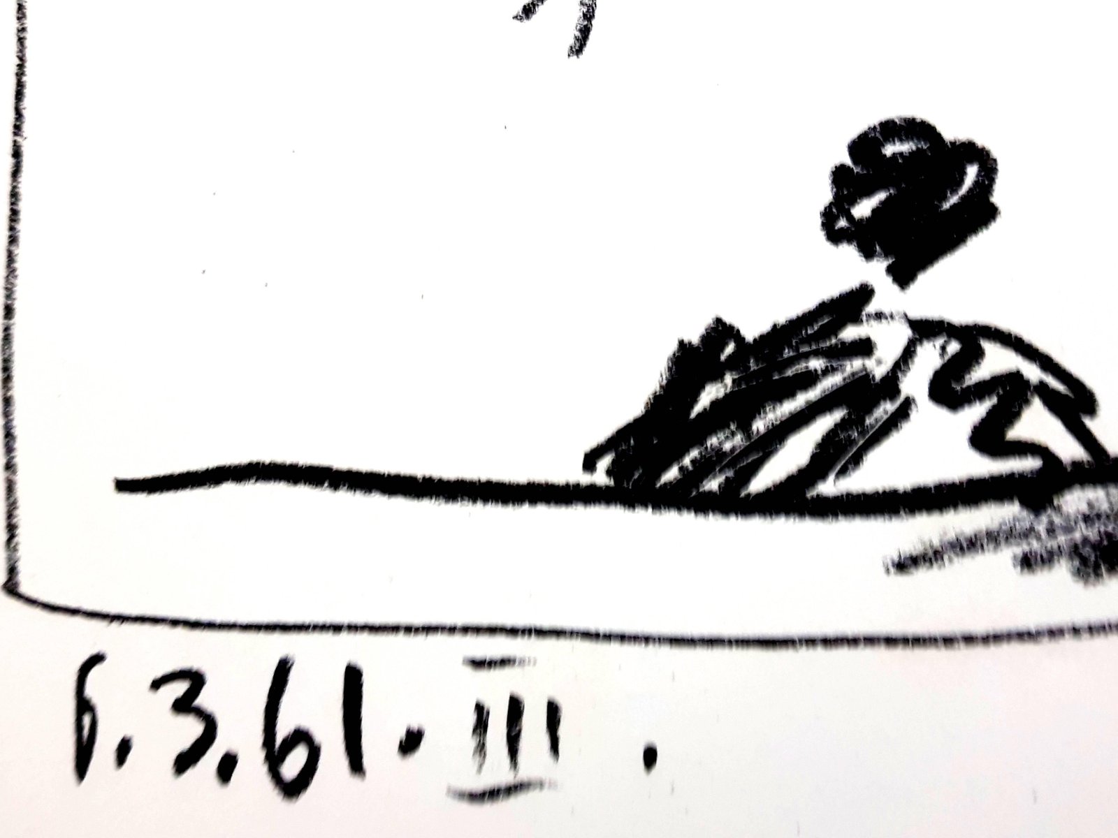 Original Lithograph by Picasso Atelier Mourlot. Paper: Vélin. Dimensions : 9 5/8 x 12 7/16 inches Reference: Bloch 1015 Picasso is not just a man and his work. Picasso is always a legend, indeed almost a myth. In the public view he has long since been the personification of genius in modern art. Picasso is an idol, one of those rare creatures who act as crucibles in which the diverse and often chaotic phenomena of culture are focussed, who seem to body forth the artistic life of their age in one person. The same thing happens in politics, science, sport. And it happens in art. Early life Born in Malaga, Spain, in October of 1881, he was the first child born in the family. His father worked as an artist, and was also a professor at the school of fine arts; he also worked as a curator for the museum in Malaga. Pablo Picasso studied under his father for one year, then went to the Academy of Arts for one year, prior to moving to Paris. In 1901 he went to Paris, which he found as the ideal place to practice new styles, and experiment with a variety of art forms. It was during these initial visits, which he began his work in surrealism and cubism style, which he was the founder of, and created many distinct pieces which were influenced by these art forms. Updates in style During his stay in Paris, Pablo Picasso was constantly updating his style; he did work from the blue period, the rose period, African influenced style, to cubism, surrealism, and realism. Not only did he master these styles, he was a pioneer in each of these movements, and influenced the styles to follow throughout the 20th century, from the initial works he created. In addition to the styles he introduced to the art world, he also worked through the many different styles which appeared, while working in Paris. Not only did he continually improve his style, and the works he created, he is well known because of the fact that he had the ability to create in any style which was prominent during the time. Russian ballet In 1917, Pablo Picasso joined the Russian Ballet, which toured in Rome; during this time he met Olga Khoklova, who was a ballerina; the couple eventually wed in 1918, upon returning to Paris. The couple eventually separated in 1935; Olga came from nobility, and an upper class lifestyle, while Pablo Picasso led a bohemian lifestyle, which conflicted. Although the couple separated, they remained officially married, until Olga's death, in 1954. In addition to works he created of Olga, many of his later pieces also took a centralized focus on his two other love interests, Marie Theresa Walter and Dora Maar. Pablo Picasso remarried Jacqueline Roque in 1961; the couple remained married until his death 12 years later, in 1973. Work as a pacifist Pablo Picasso was a pacifist, and large scale paintings he created, showcased this cry for peace, and change during the time. A 1937 piece he created, after the German bombing of Guernica, was one such influential piece of the time. Not only did this become his most famous piece of art work, but the piece which showed the brutality of war, and death, also made him a prominent political figure of the time. To sell his work, and the message he believed in, art, politics, and eccentricity, were among his main selling points. Conflicting with social views Many things Pablo Picasso did during the 1950s, conflicted with the general public. Viciousness towards his children, exaggerated virility towards women, and joining the Communist party, were some of the many scandals which he was involved in during his lifetime. Although most of the things he did were viewed negatively by a minority of the general public, admirers of Pablo Picasso turned a blind eye, and still accepted him as a prominent figure in their society. Following the end of WWII, Pablo Picasso turned back towards his classic style of work, and he created the ''Dove of Peace.'' Even though he became a member of the Communist party, and supported Stalin and his political views and rule, Pablo Picasso could do no wrong. In the eyes of his admirers and supporters, he was still a prominent figure, and one which they would follow, regardless of what wrongs he did. He was not only an influence because of the works he created, but he was also an influential figure in the political realm. Influence outside of art Although Pablo Picasso is mainly known for his influence to the art world, he was an extremely prominent figure during his time, and to the 20th century in general. He spread his influences to the art world, but also to many aspects of the cultural realm of life as well. He played several roles in film, where he always portrayed himself; he also followed a bohemian lifestyle, and seemed to take liberties as he chose, even during the later stages of his life. He even died in style, while hosting a dinner party in his home. Collection of work Pablo Picasso is recognized as the world's most prolific painter. His career spanned over a 78 year period, in which he created: 13,500 paintings, 100,000 prints and engravings, and 34,000 illustrations which were used in books. He also produced 300 sculptures and ceramic pieces during this expansive career. It is also estimated that over 350 pieces which he created during his career, have been stolen; this is a figure that is far higher than any other artist throughout history. Sale of his works Pablo Picasso has also sold more pieces, and his works have brought in higher profit margins, than any other artist of his time. His pieces rank among the most expensive art works to be created; with a price tag of $104 million, Garson a la Pipe, was sold in 2004. Although he had a conflicting lifestyle, Pablo Picasso was admired by many, and was one of the most influential figures of his time. Not only during his life, but also after his death, he is still one of the most well known artists, and political figures, of his time. With thousands of pieces to his name, and art works which have bee