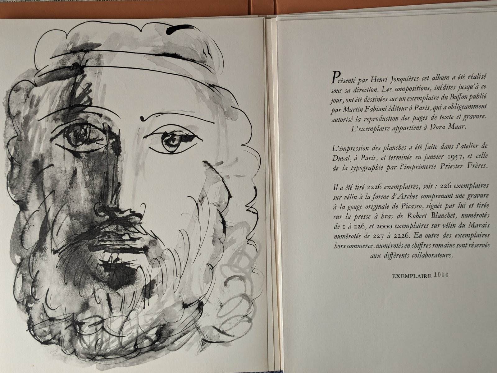 Plate 39 after the drawing by Pablo Picasso from his famous limited numbered edition: " 40 dessins de Picasso en marge du Buffon", 1 of 2,000 proofs on Marais velin paper.