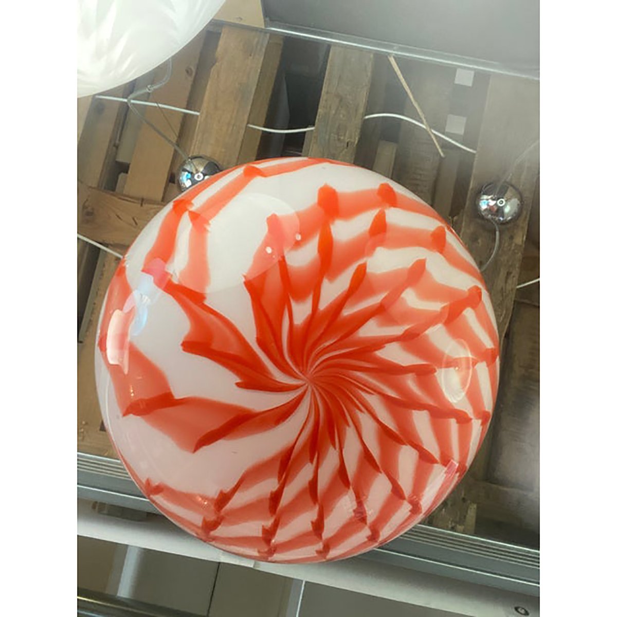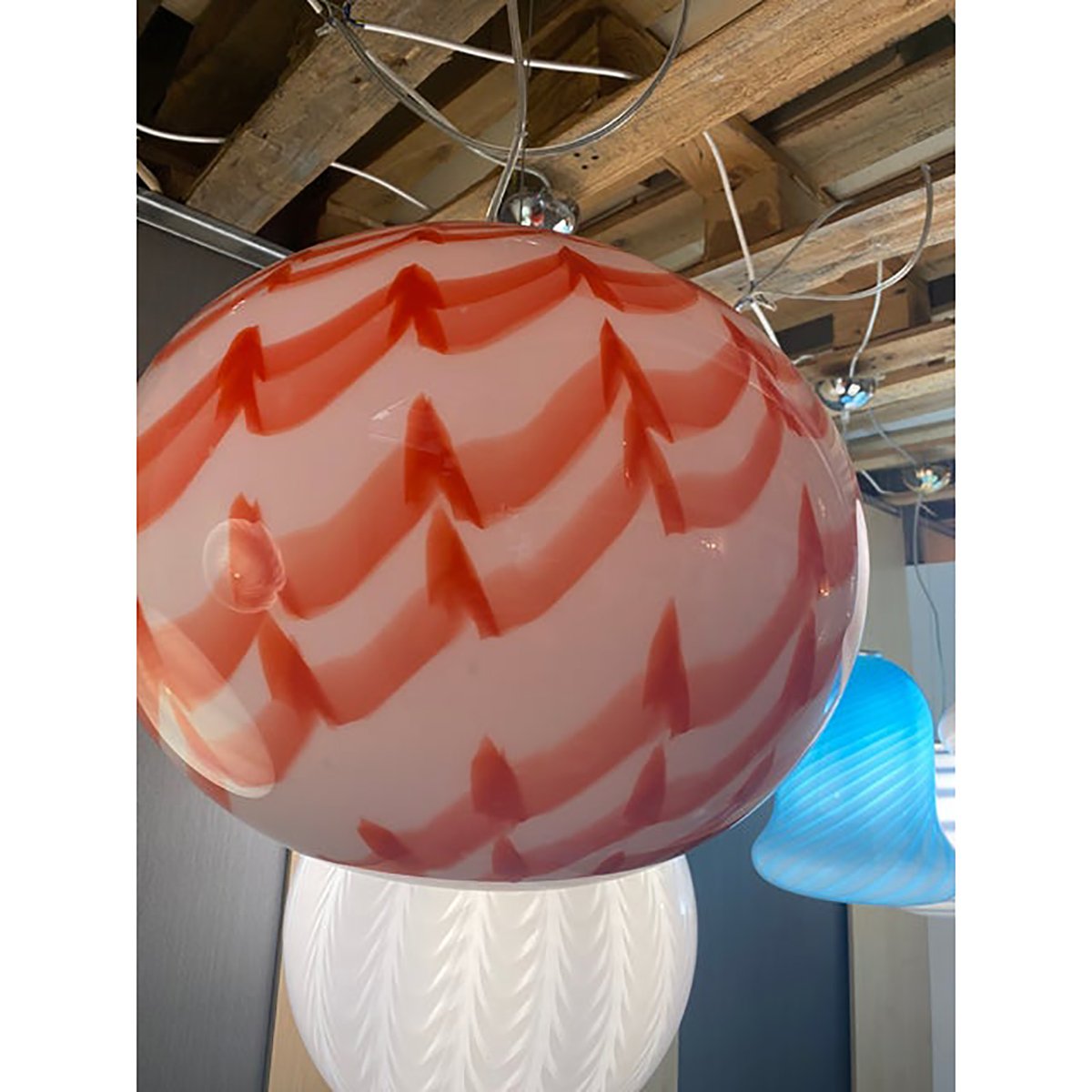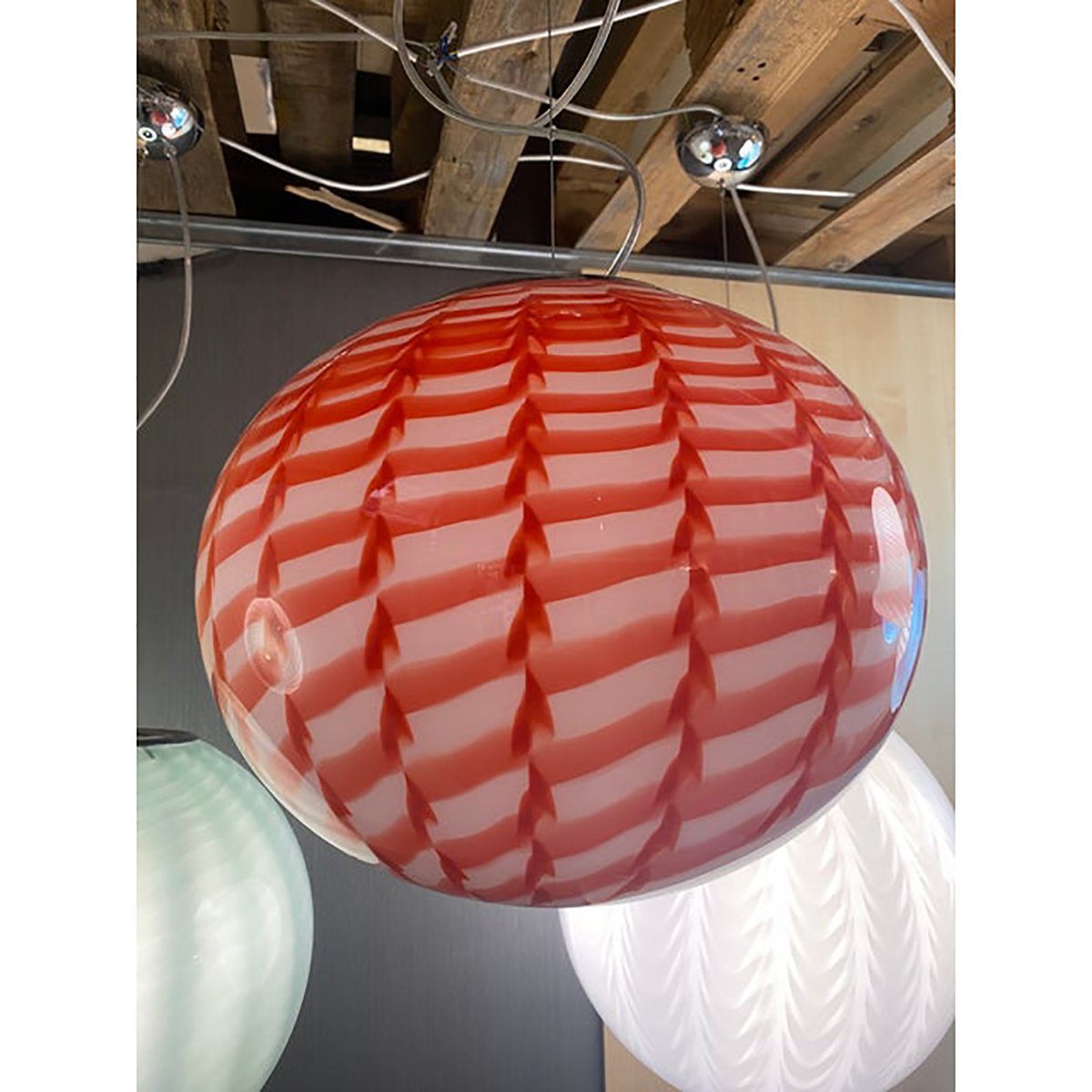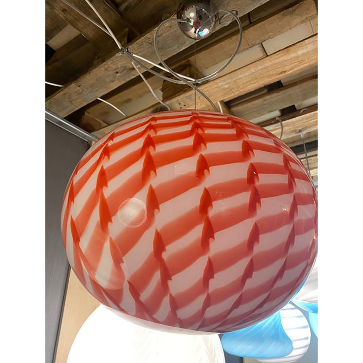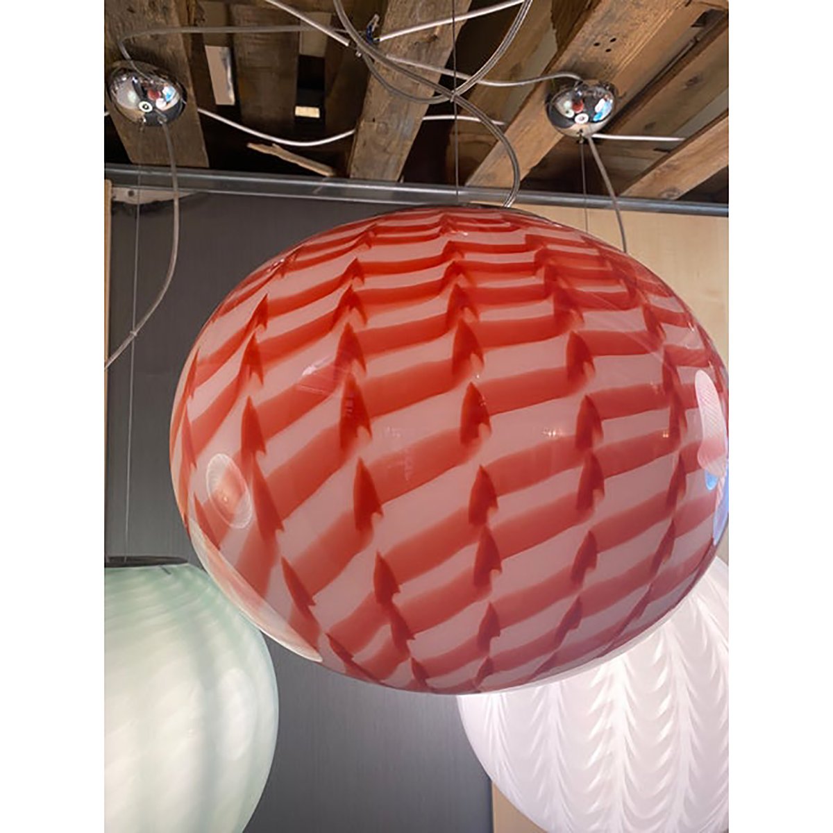 Red and White Sphere Pendant in Murano Style Glass by Simoeng