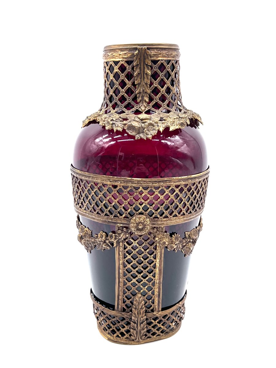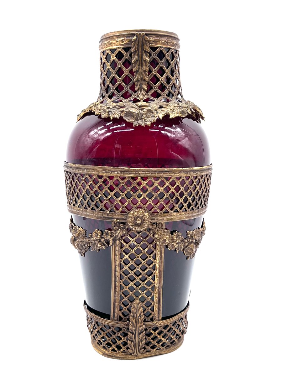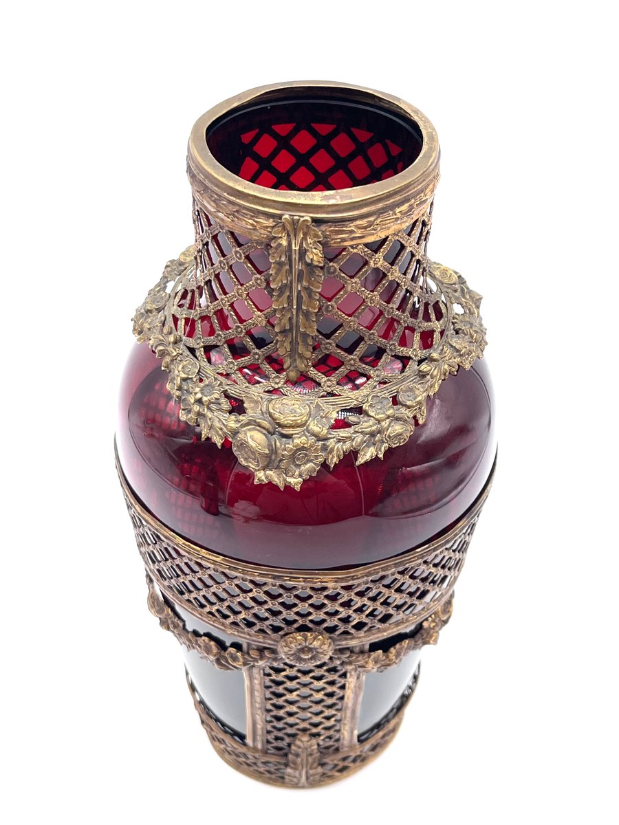 Ruby Glass Vase with Removable Ormolu Mount, France, 1900s