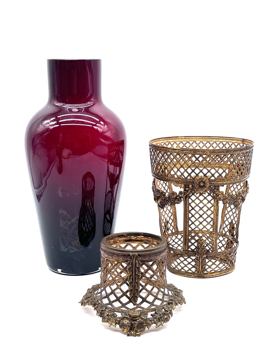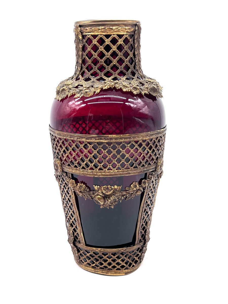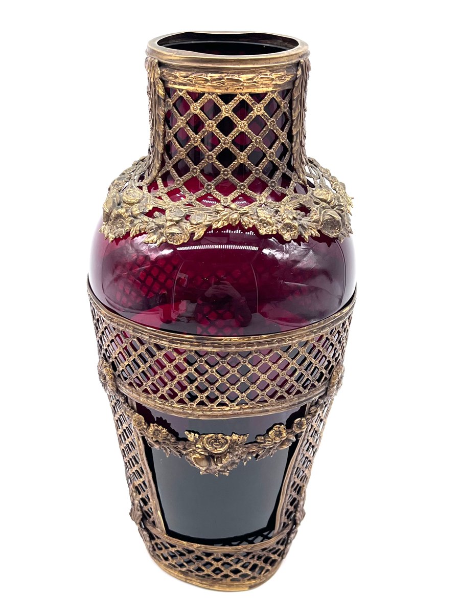 Ruby Glass Vase with Removable Ormolu Mount, France, 1900s