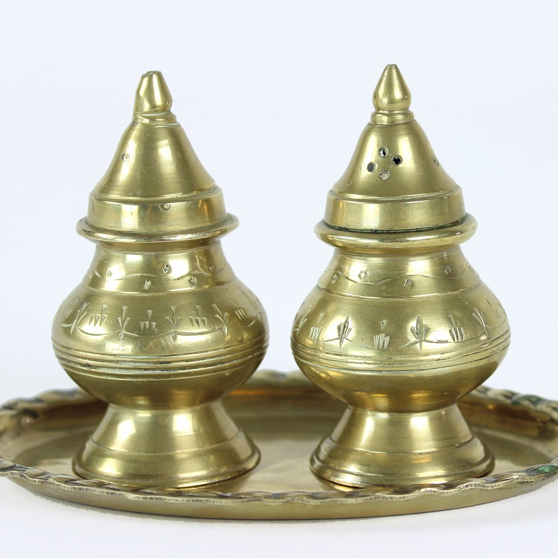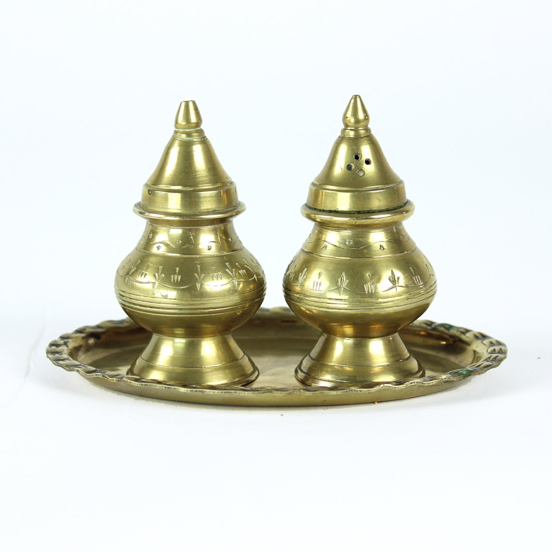 Salt & Pepper Shaker in Brass, 1970s, Set of 3