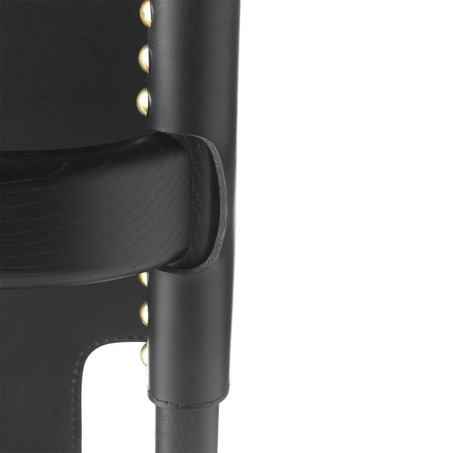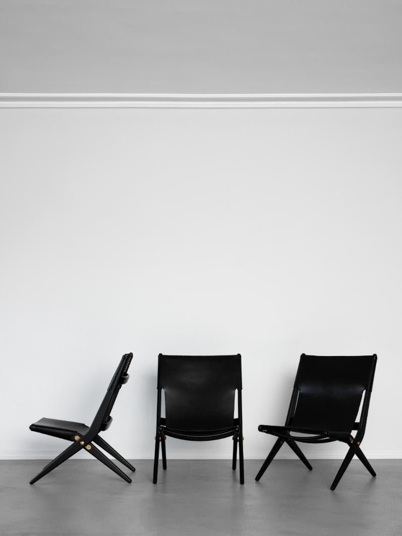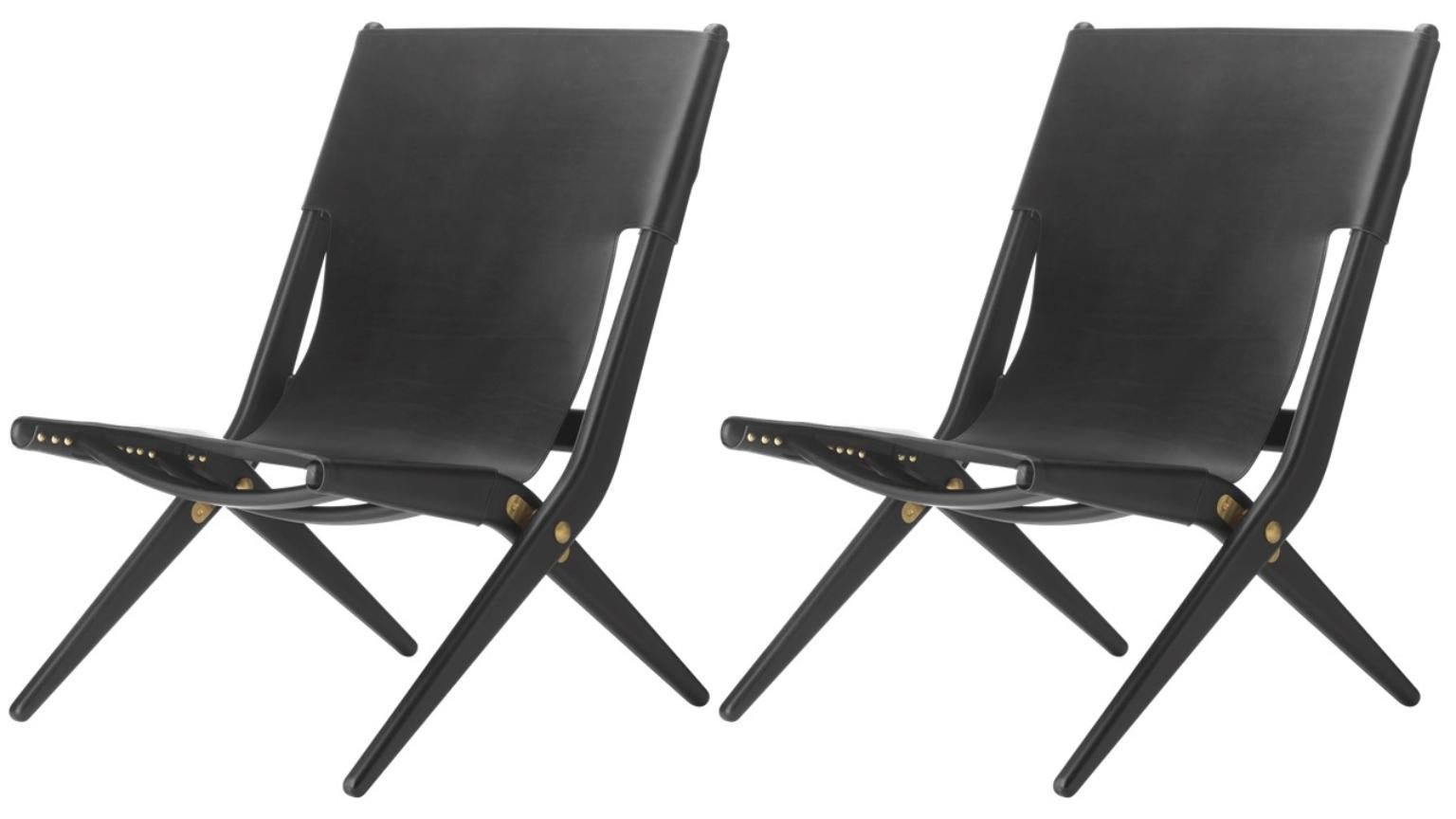 Set of Black Stained Oak and Black Leather Saxe Chairs by Lassen