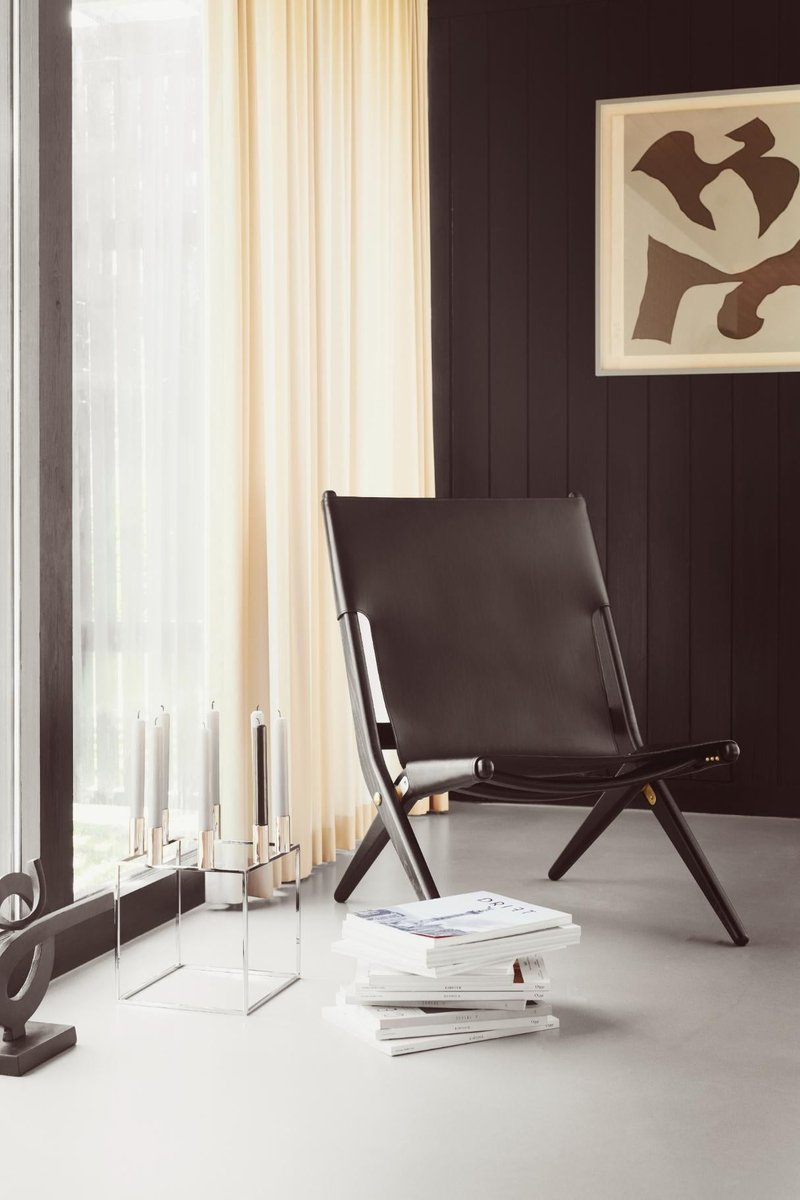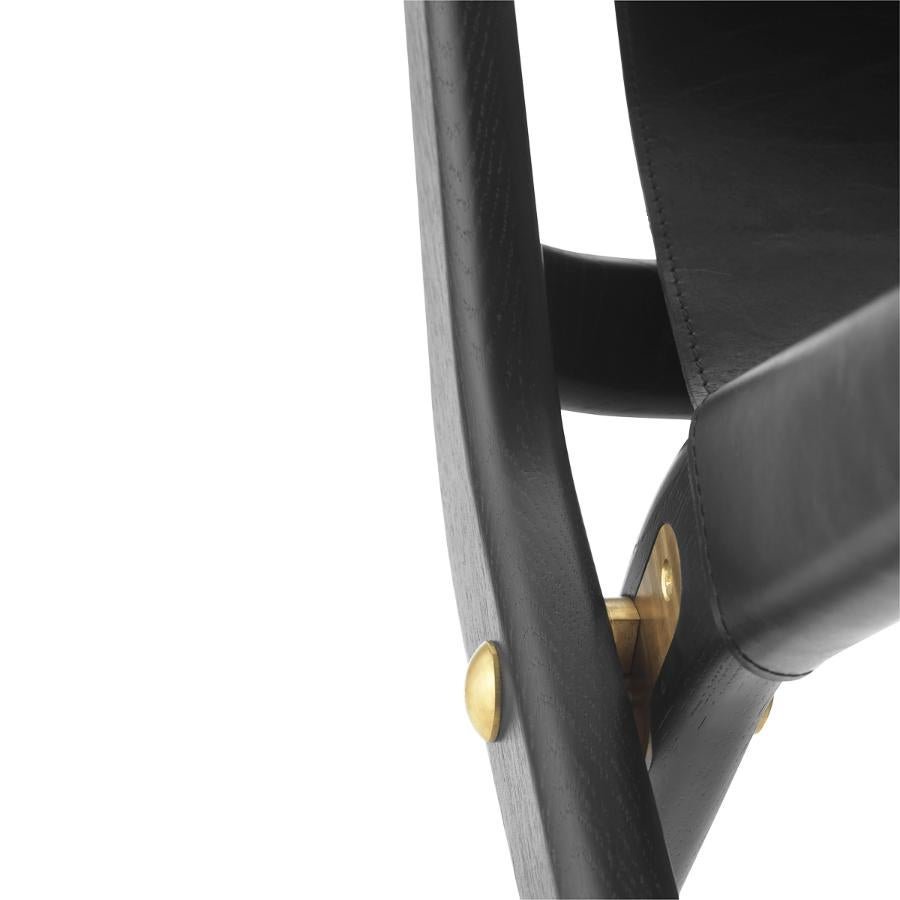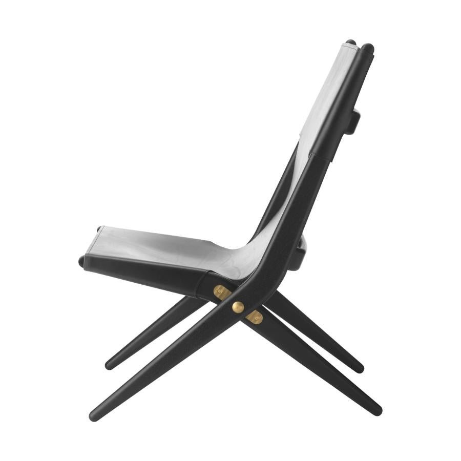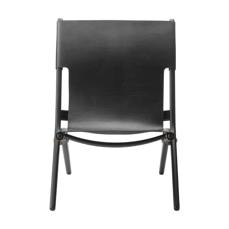 Set of Black Stained Oak and Black Leather Saxe Chairs by Lassen