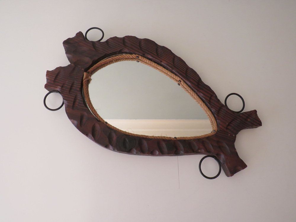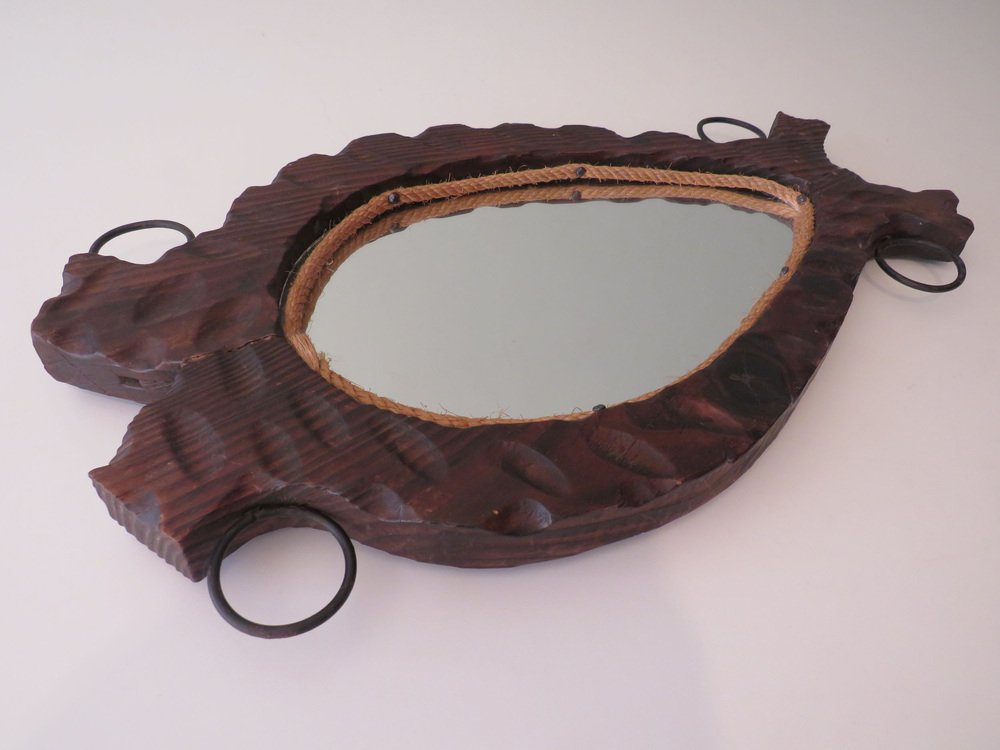 Spanish Brutalist Mirror with Dark Wood Frame, 1960s