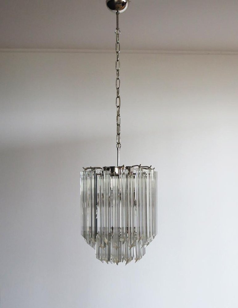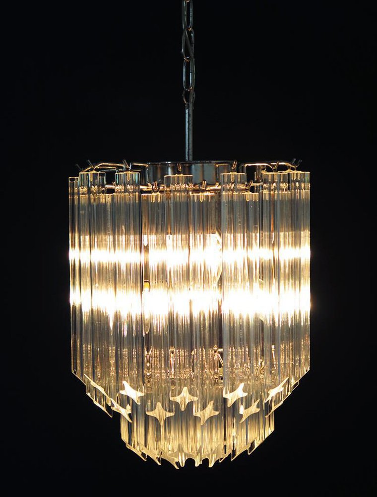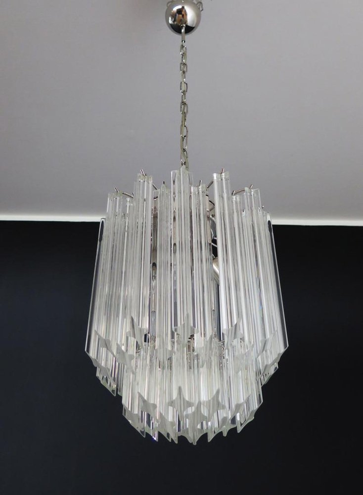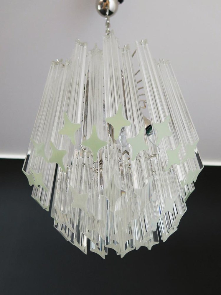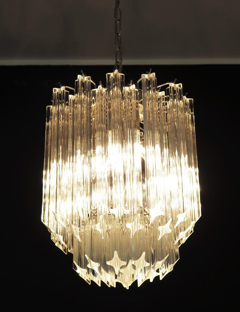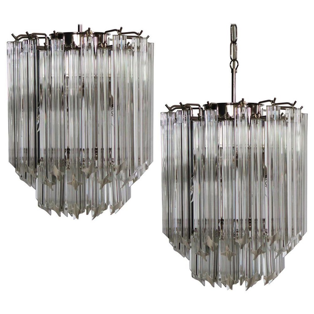Transparent Prism Triedri Murano Chandeliers in Venini Style, 1990, Set of 2