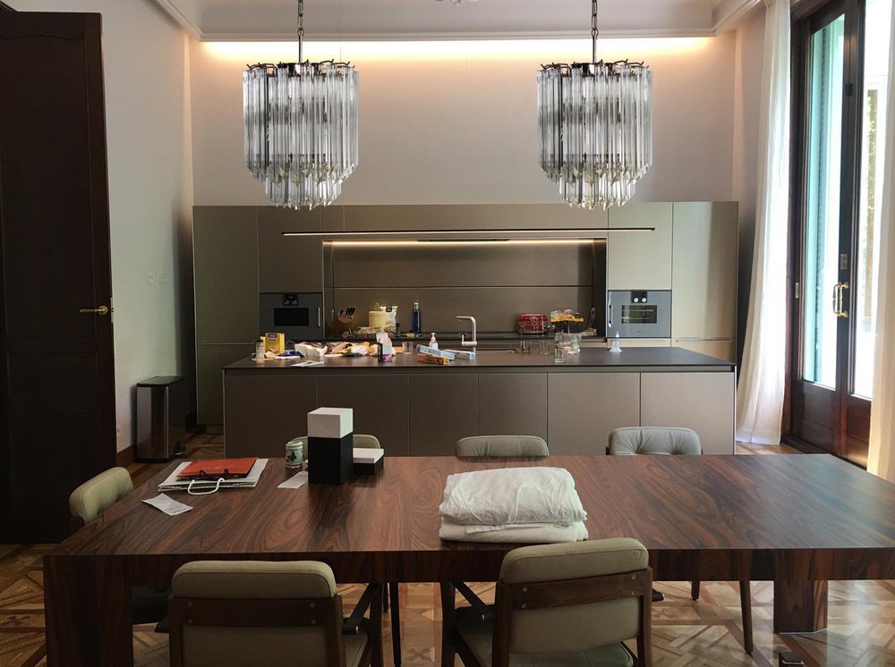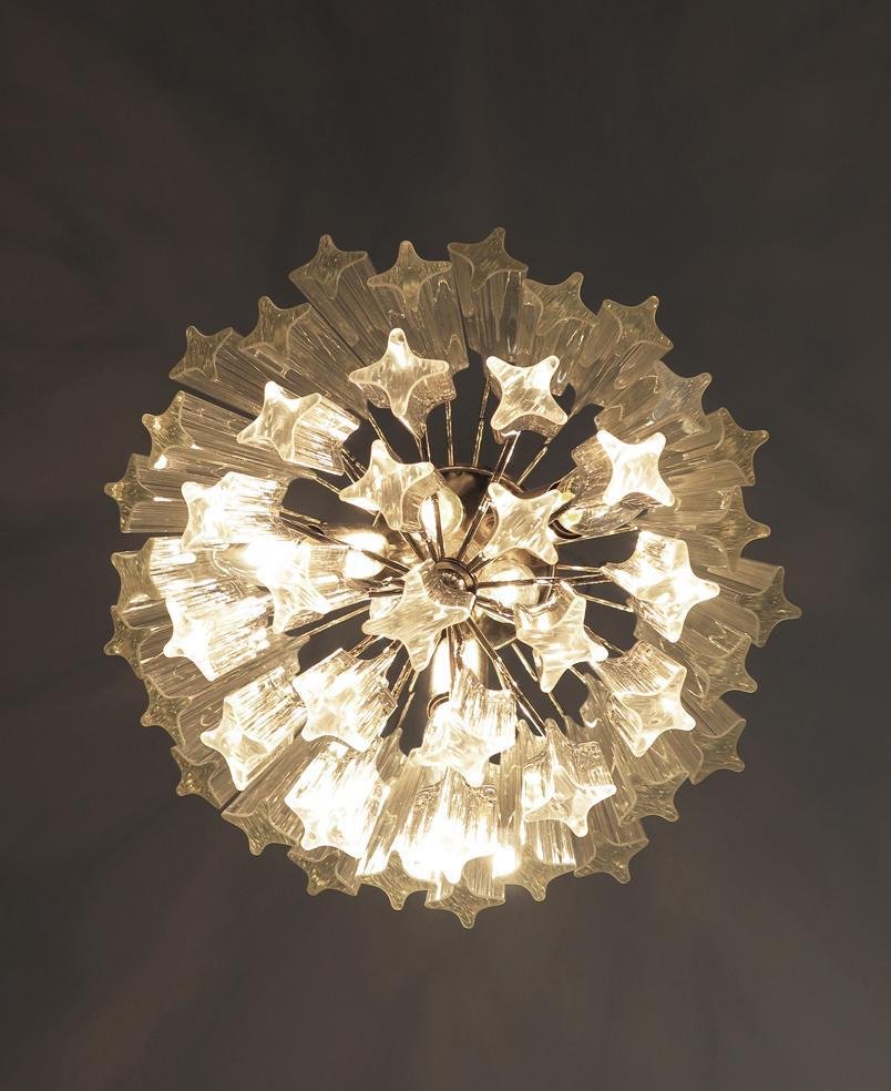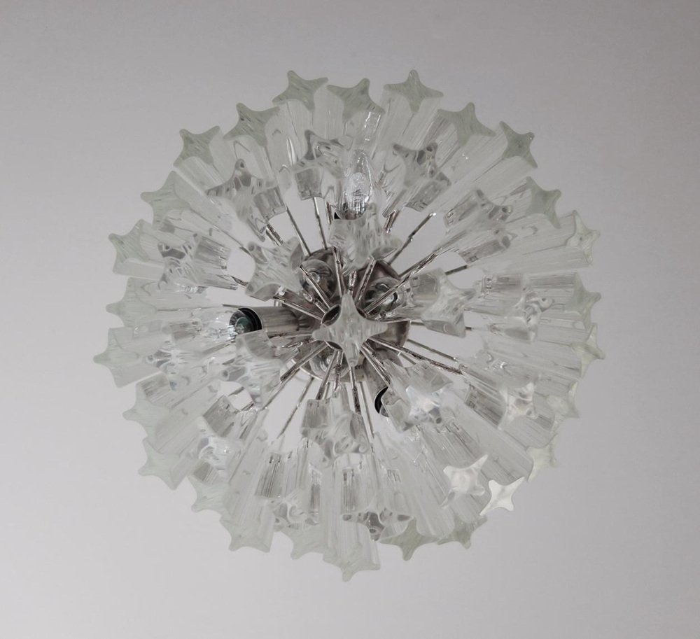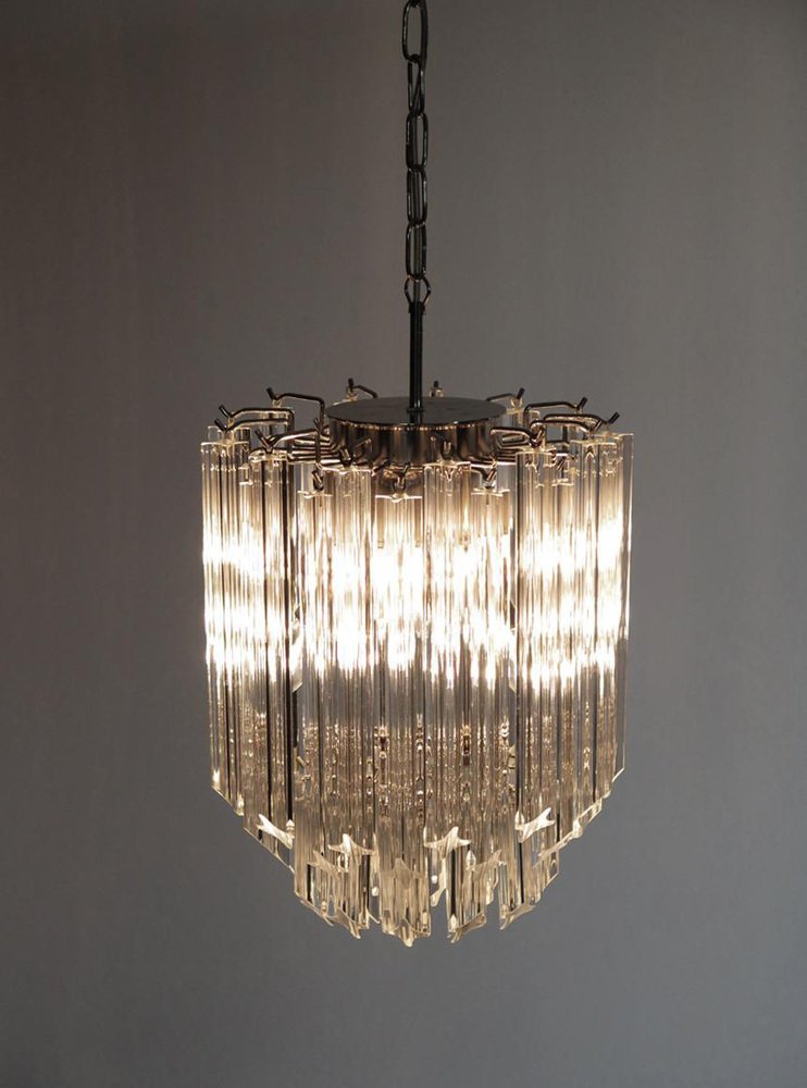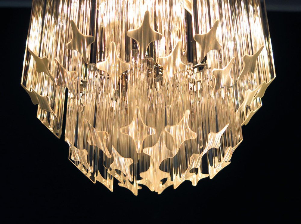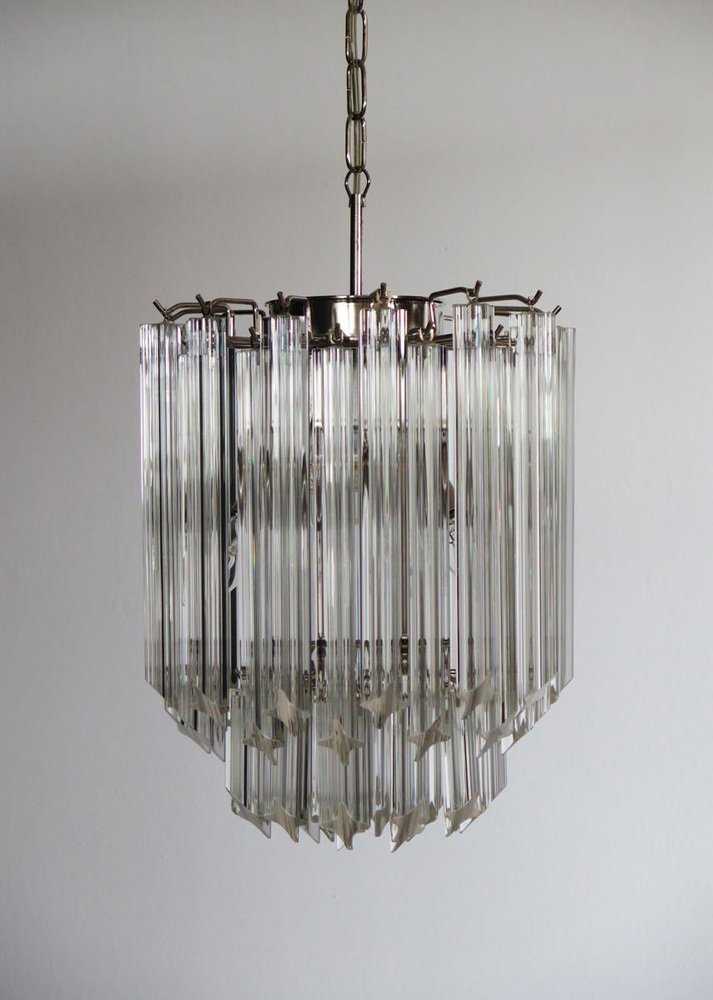 Transparent Prism Triedri Murano Chandeliers in Venini Style, 1990, Set of 2